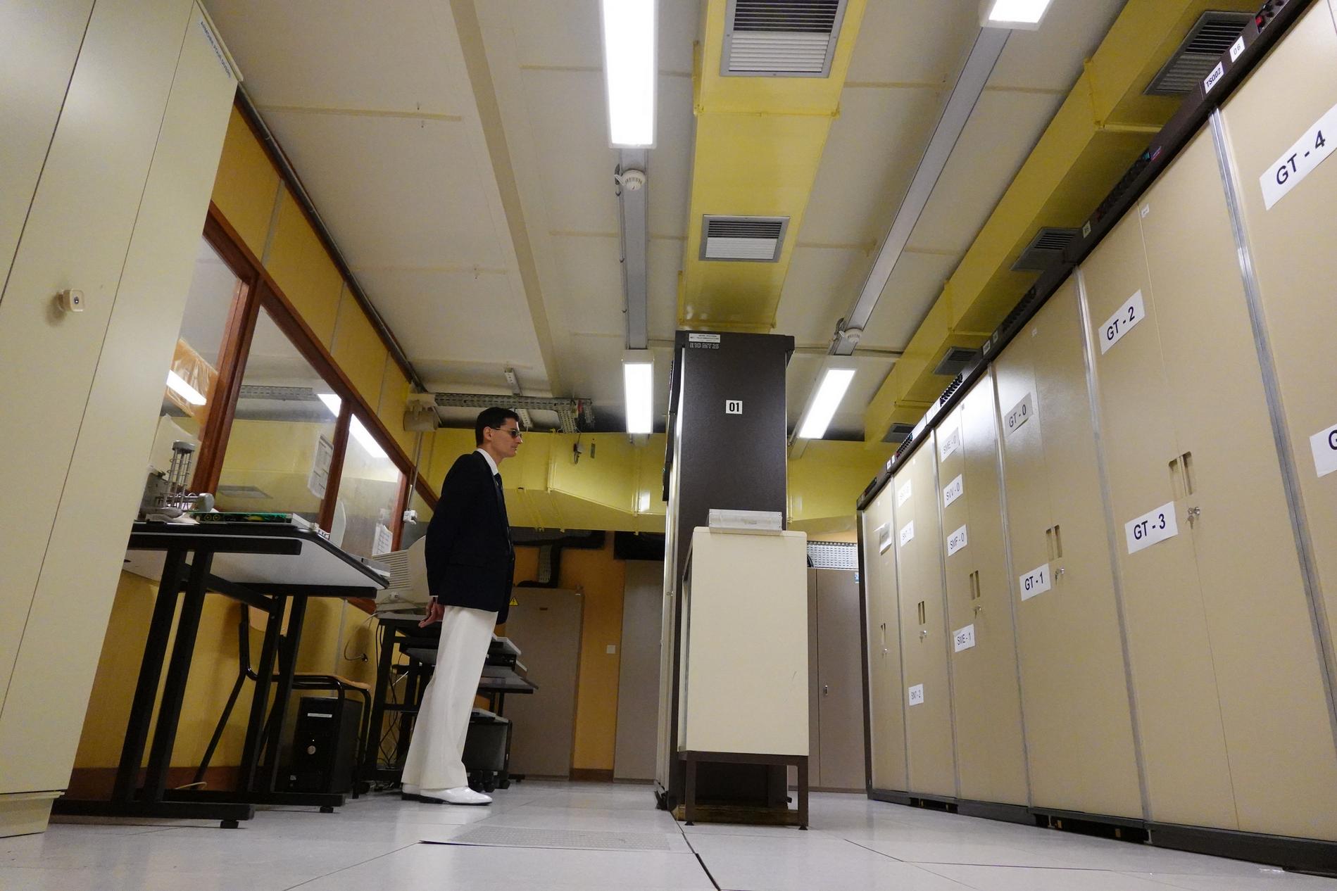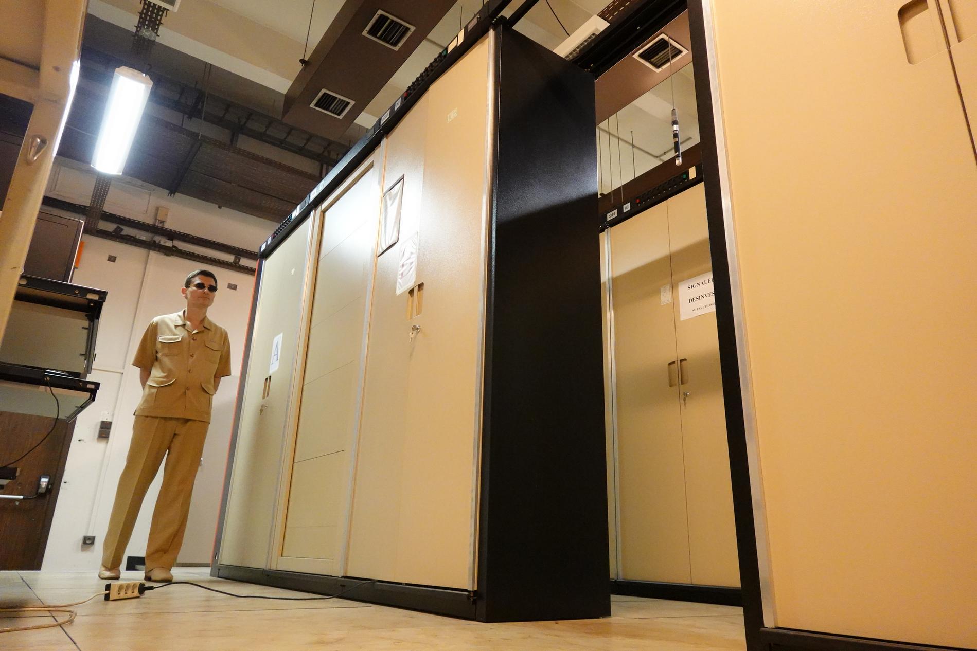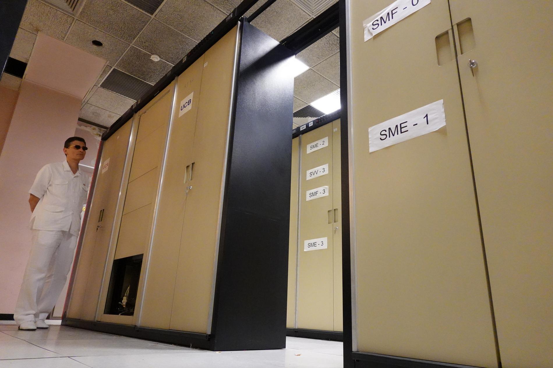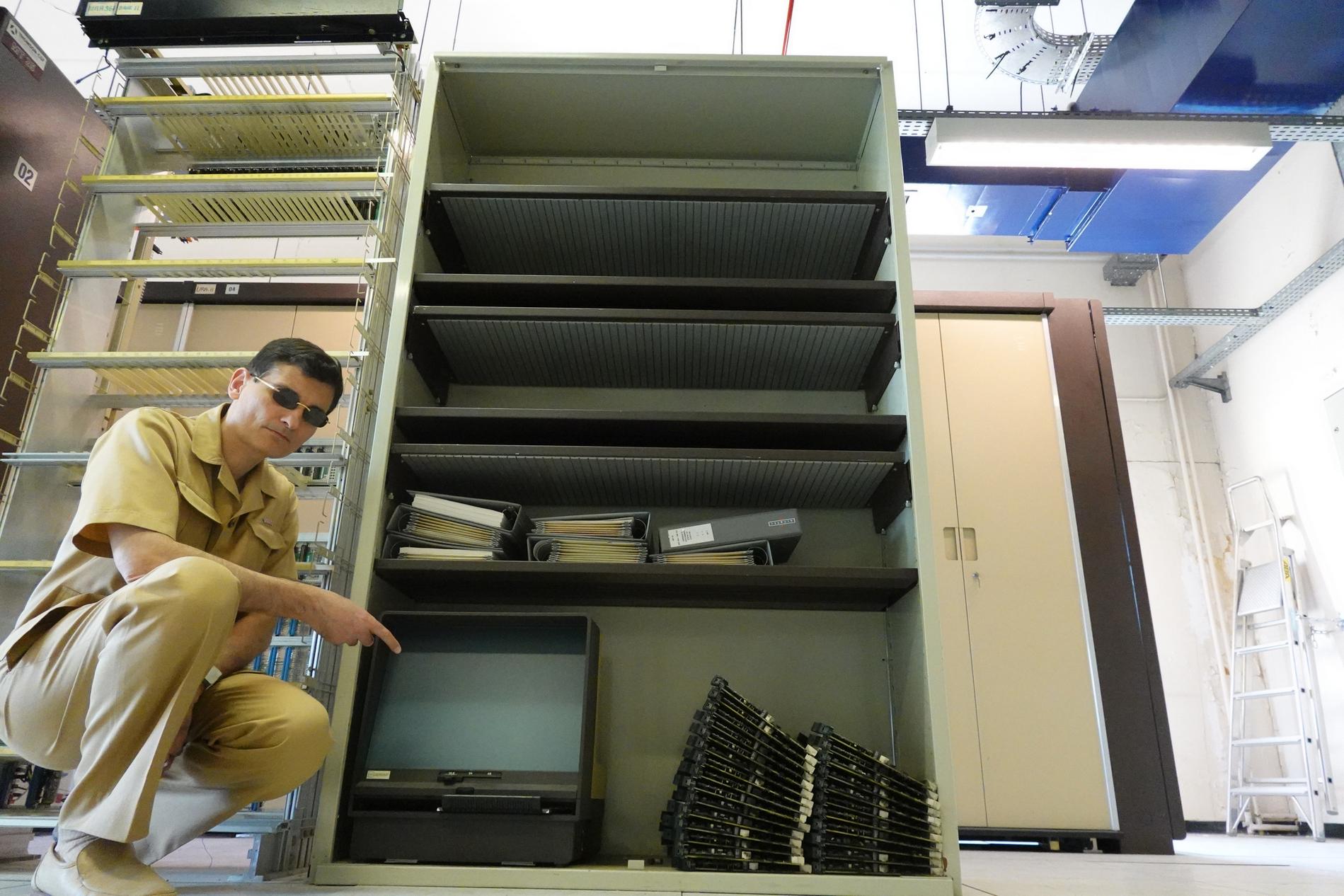• à droite : 2 baies de Traducteurs TR1 et TR2 et 1 baie de Dérouleur de Bandes Magnétiques.