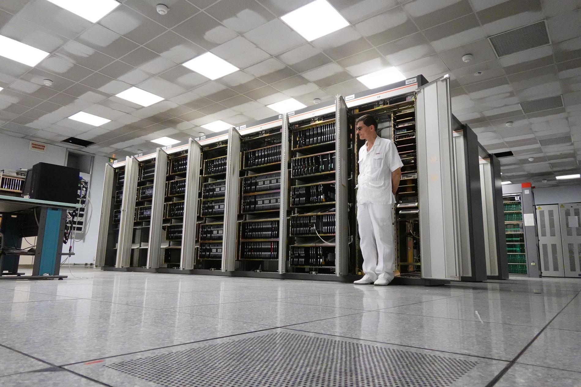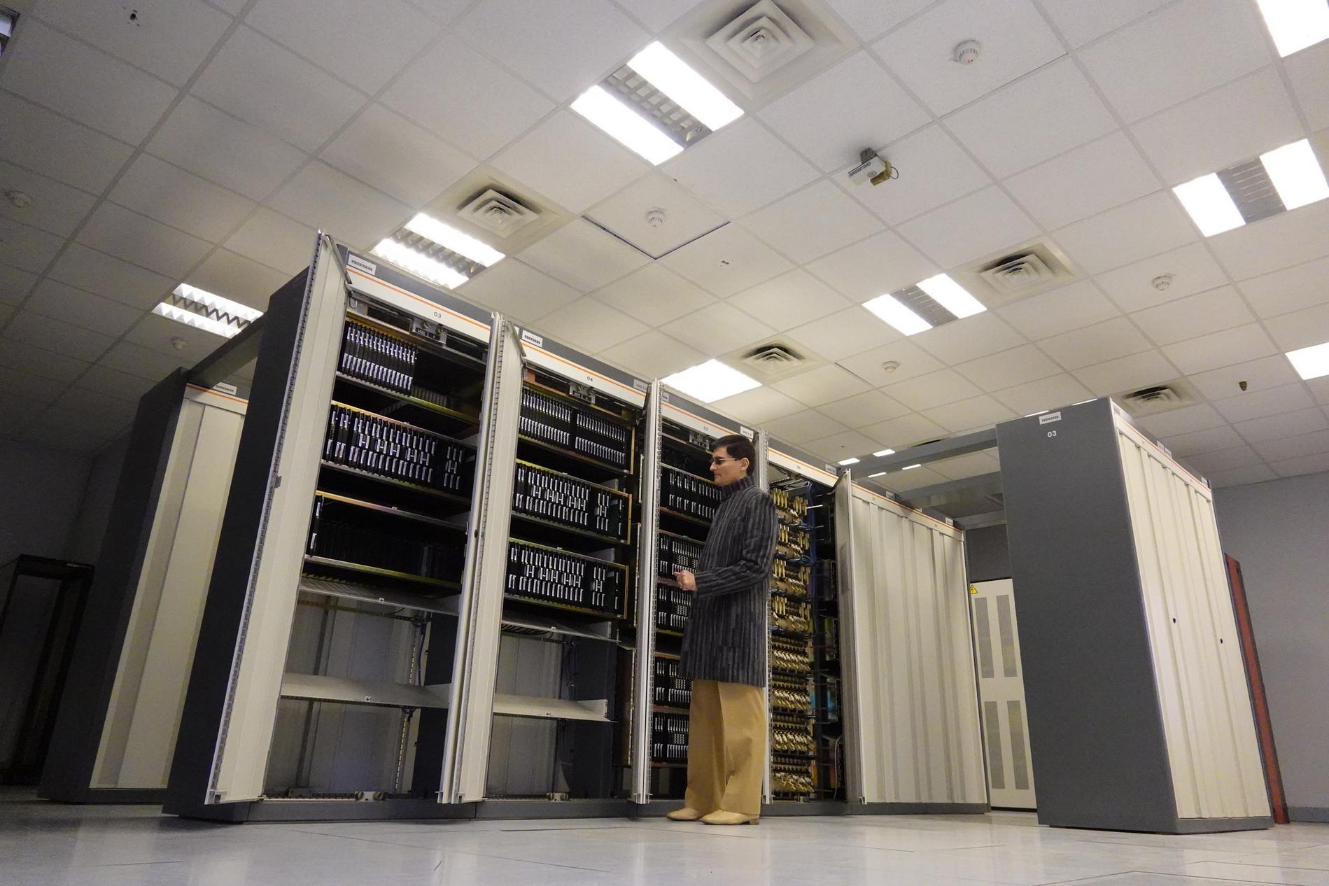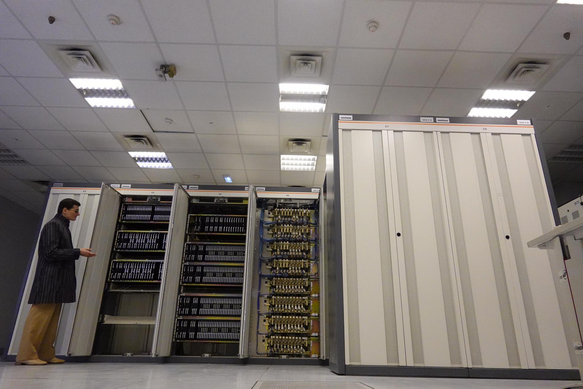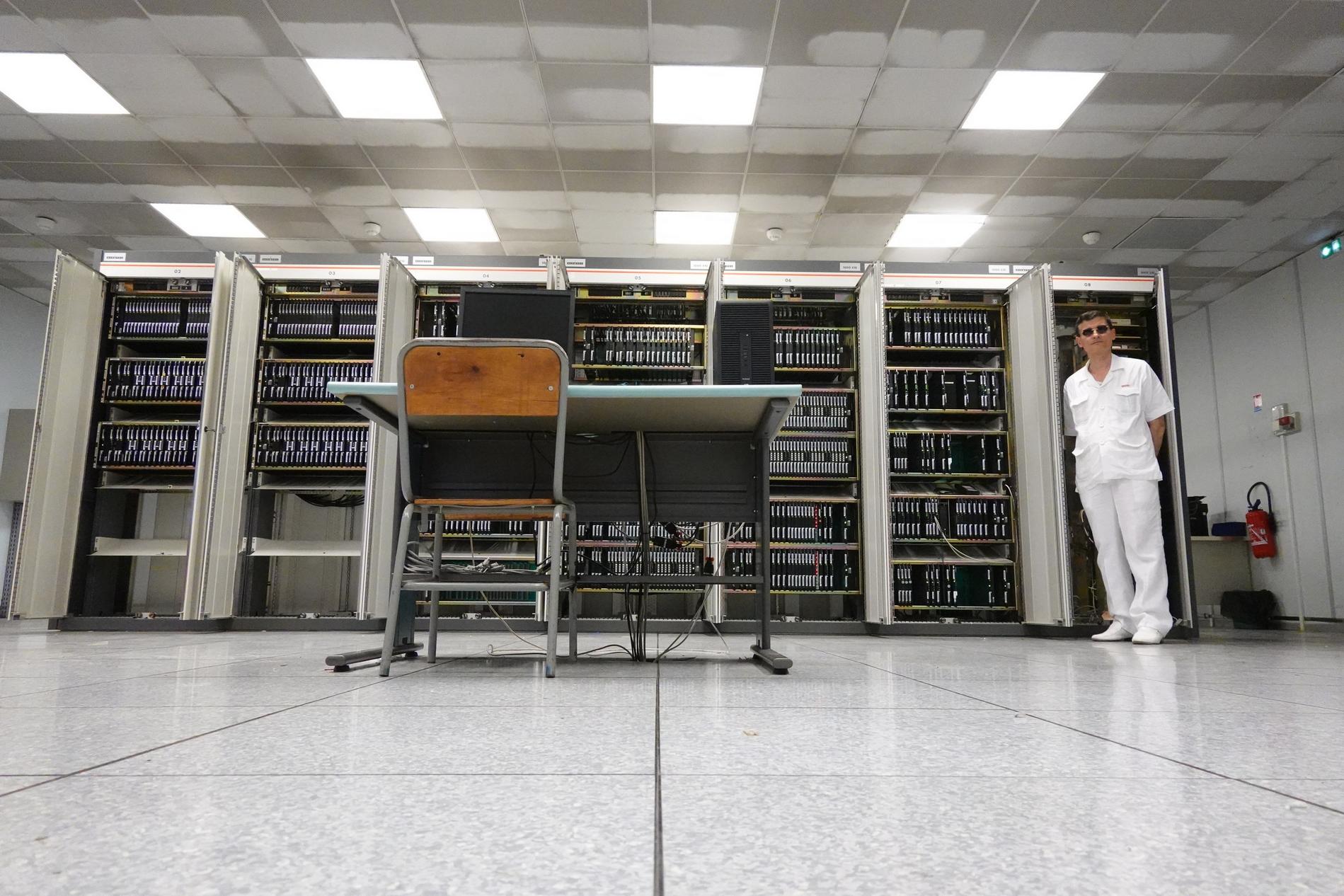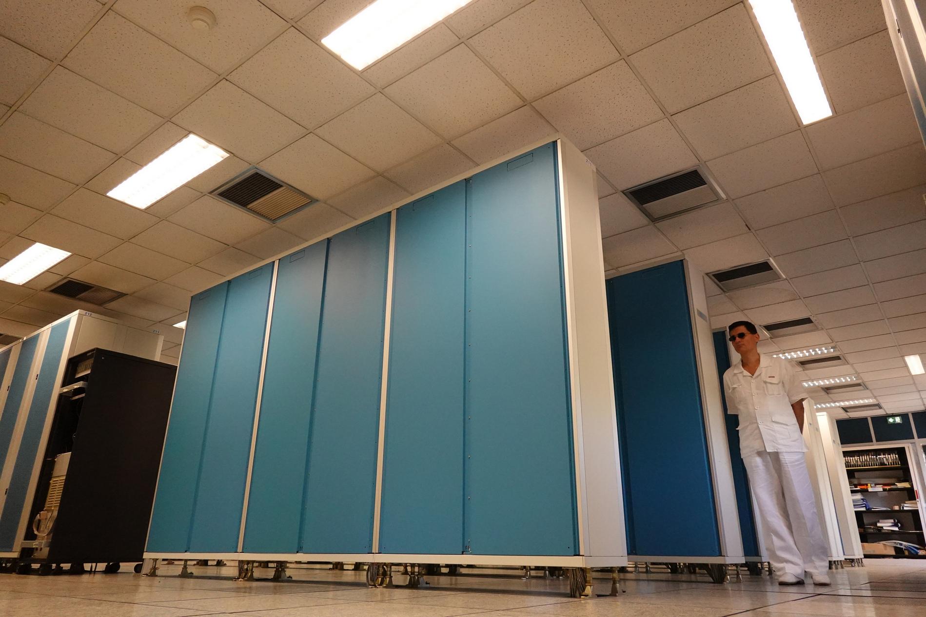 Ci-dessus : vue comparative AXE 10 - Calculateur A (APZ212-20) / humain de taille moyenne. Commutateur CHARLEBOURG 4 ET2 (CB34).