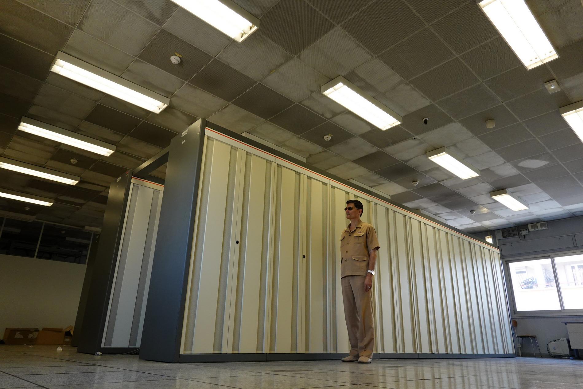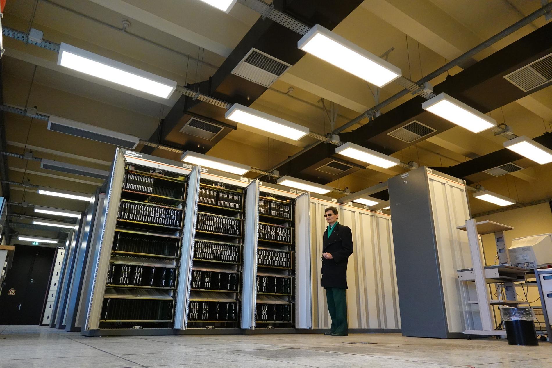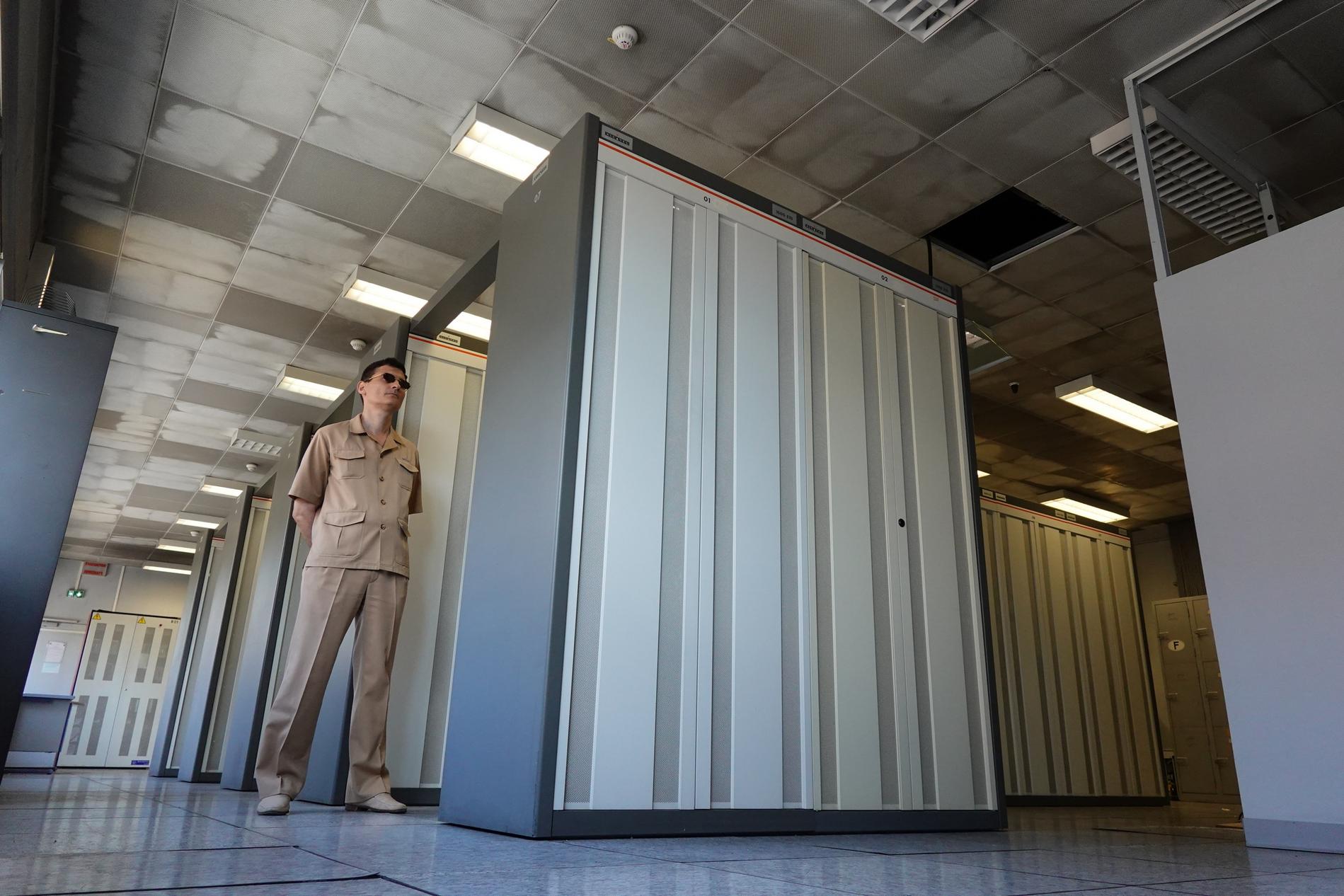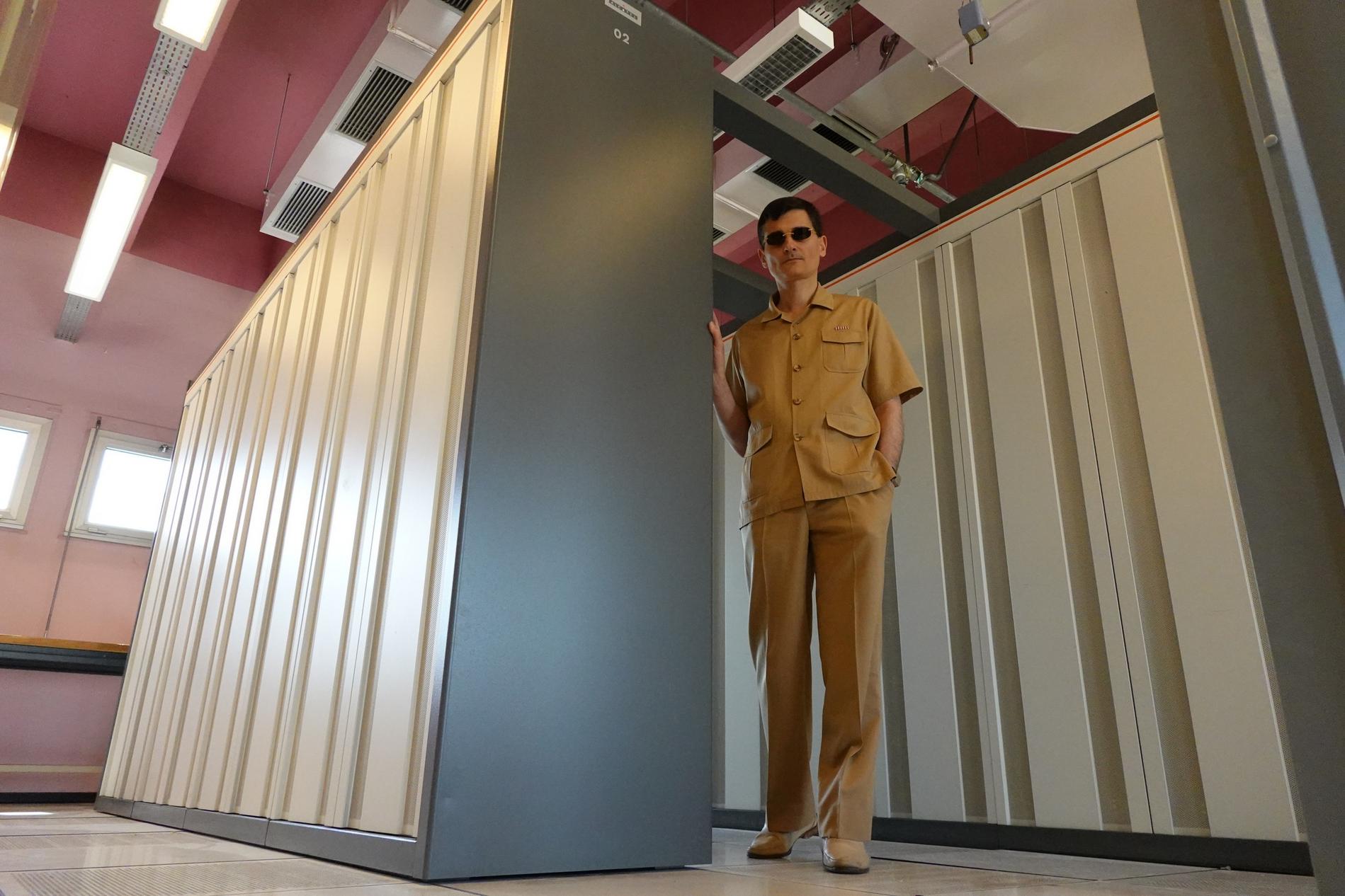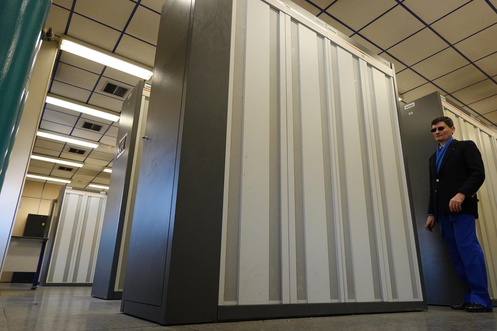 Ci-dessus : vue comparative AXE 10 - Calculateur A (APZ212-20) / humain de taille moyenne. Commutateur CHARLEBOURG 4 ET2 (CB34).