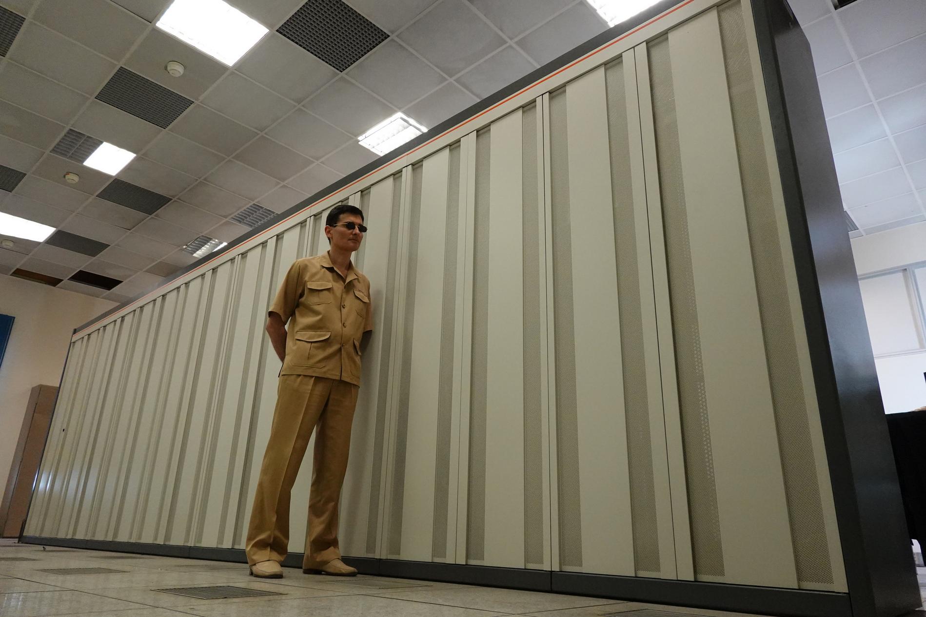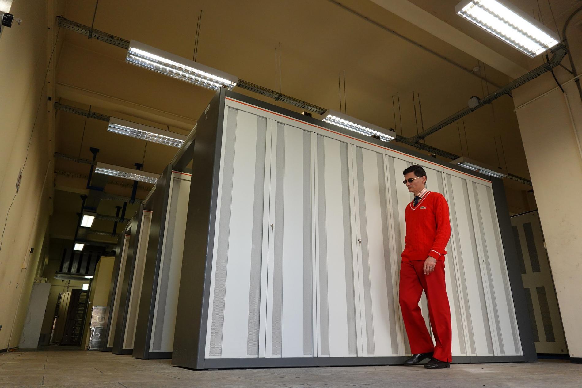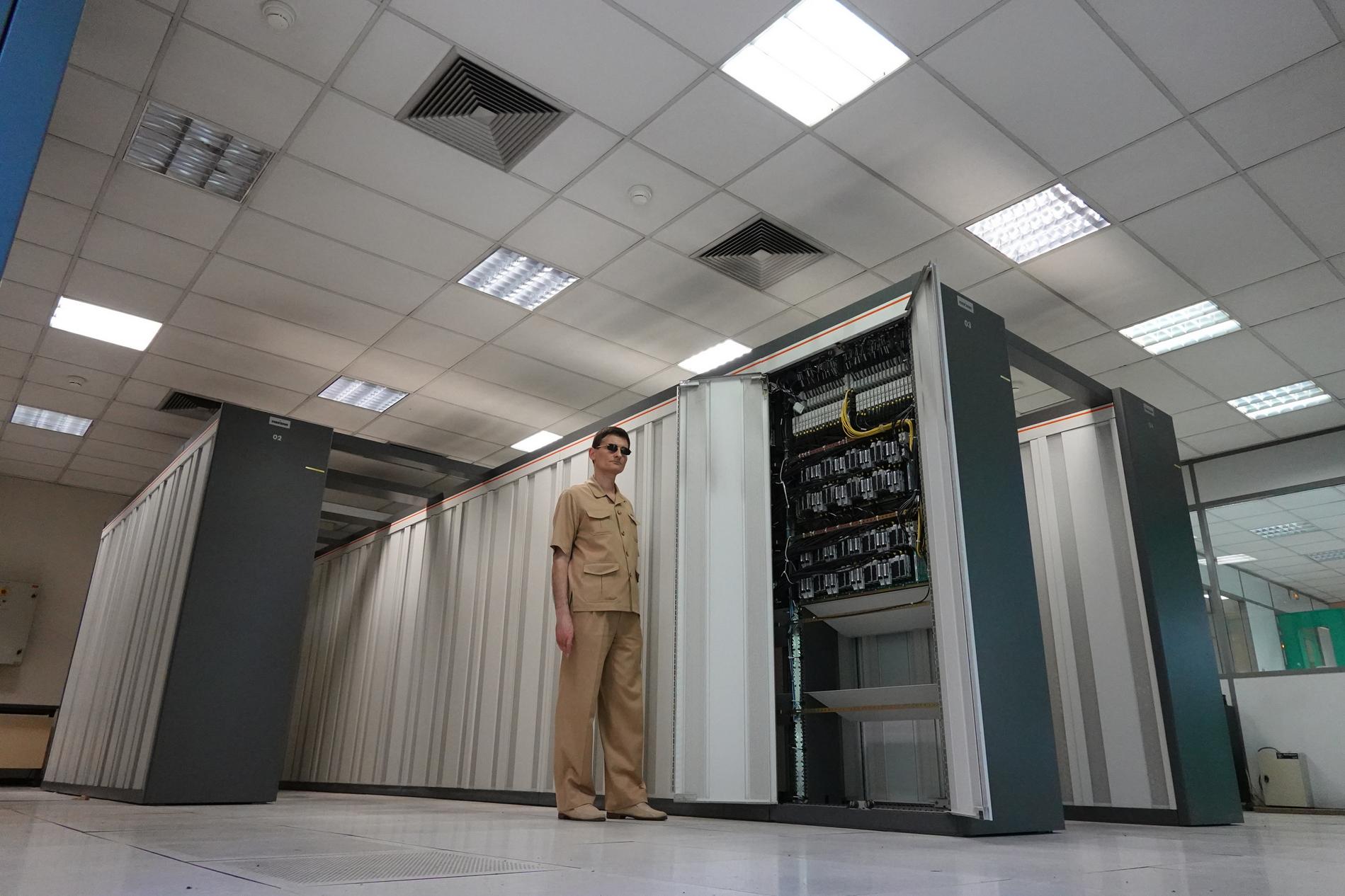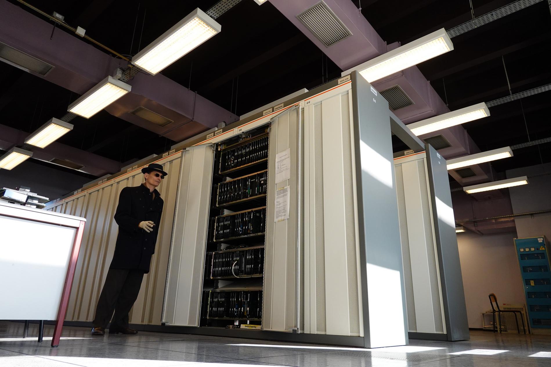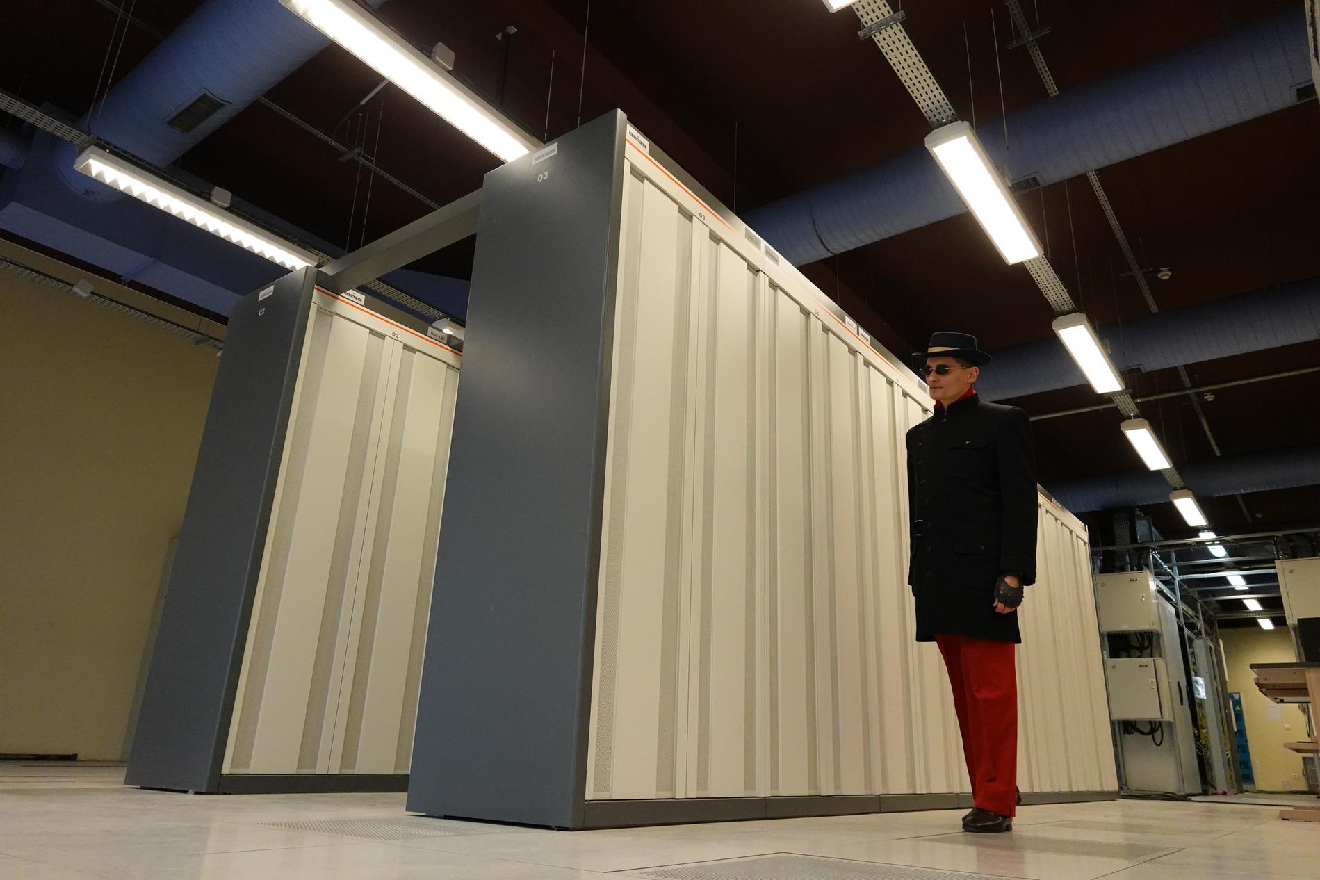 Ci-dessus : vue comparative AXE 10 - Calculateur A (APZ212-20) / humain de taille moyenne. Commutateur CHARLEBOURG 4 ET2 (CB34).