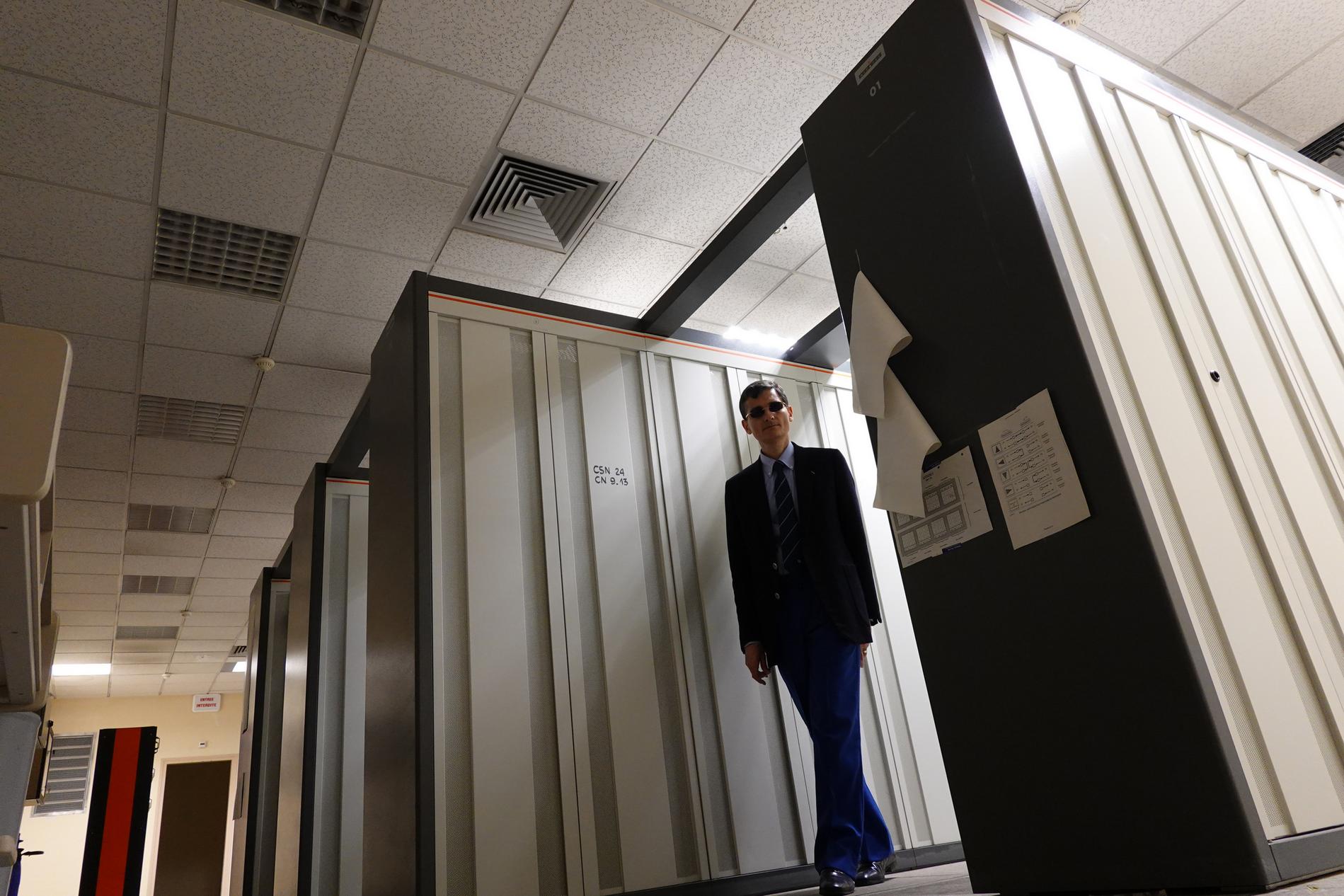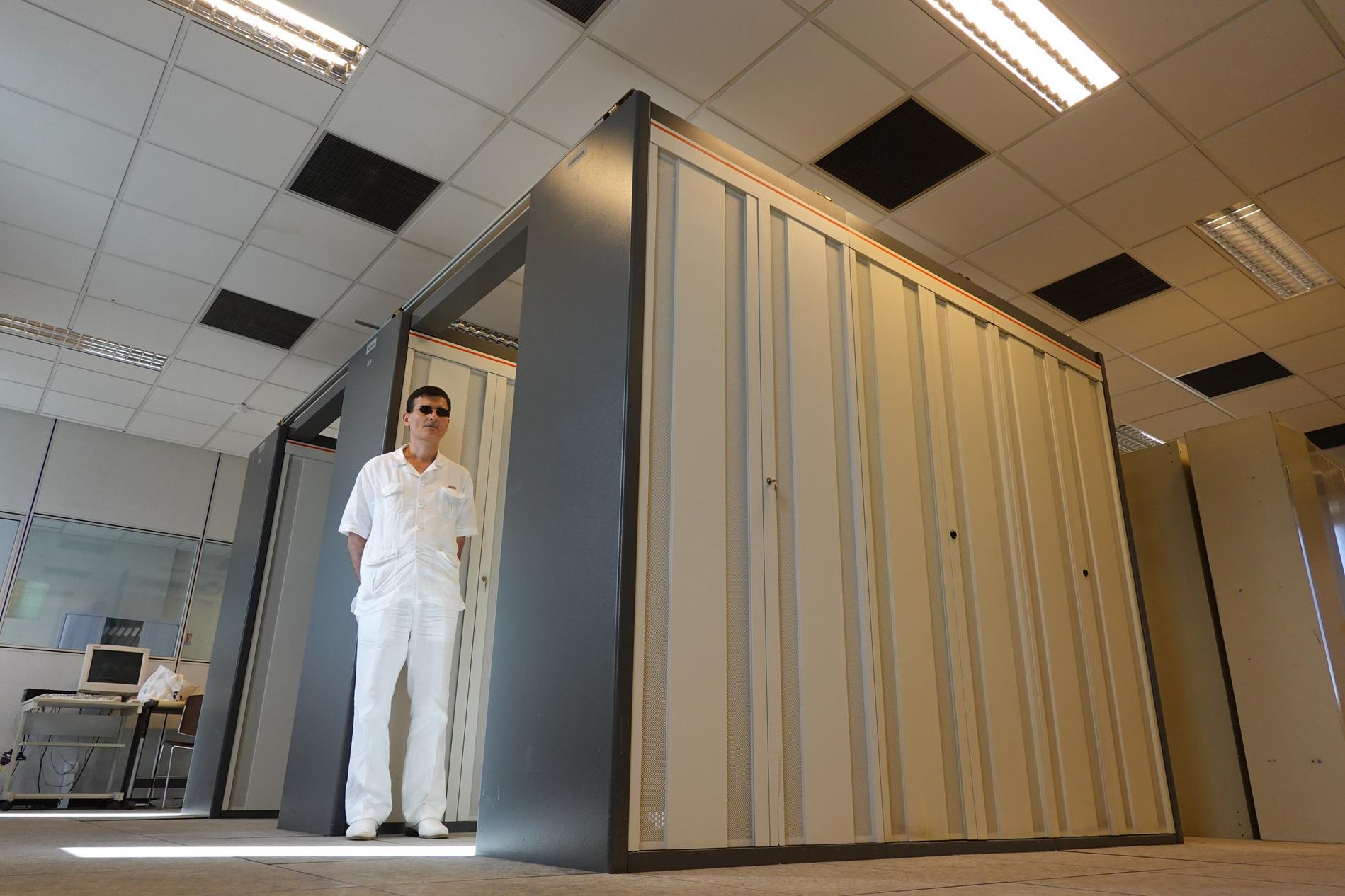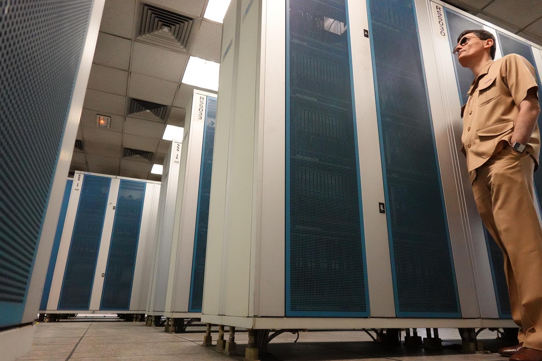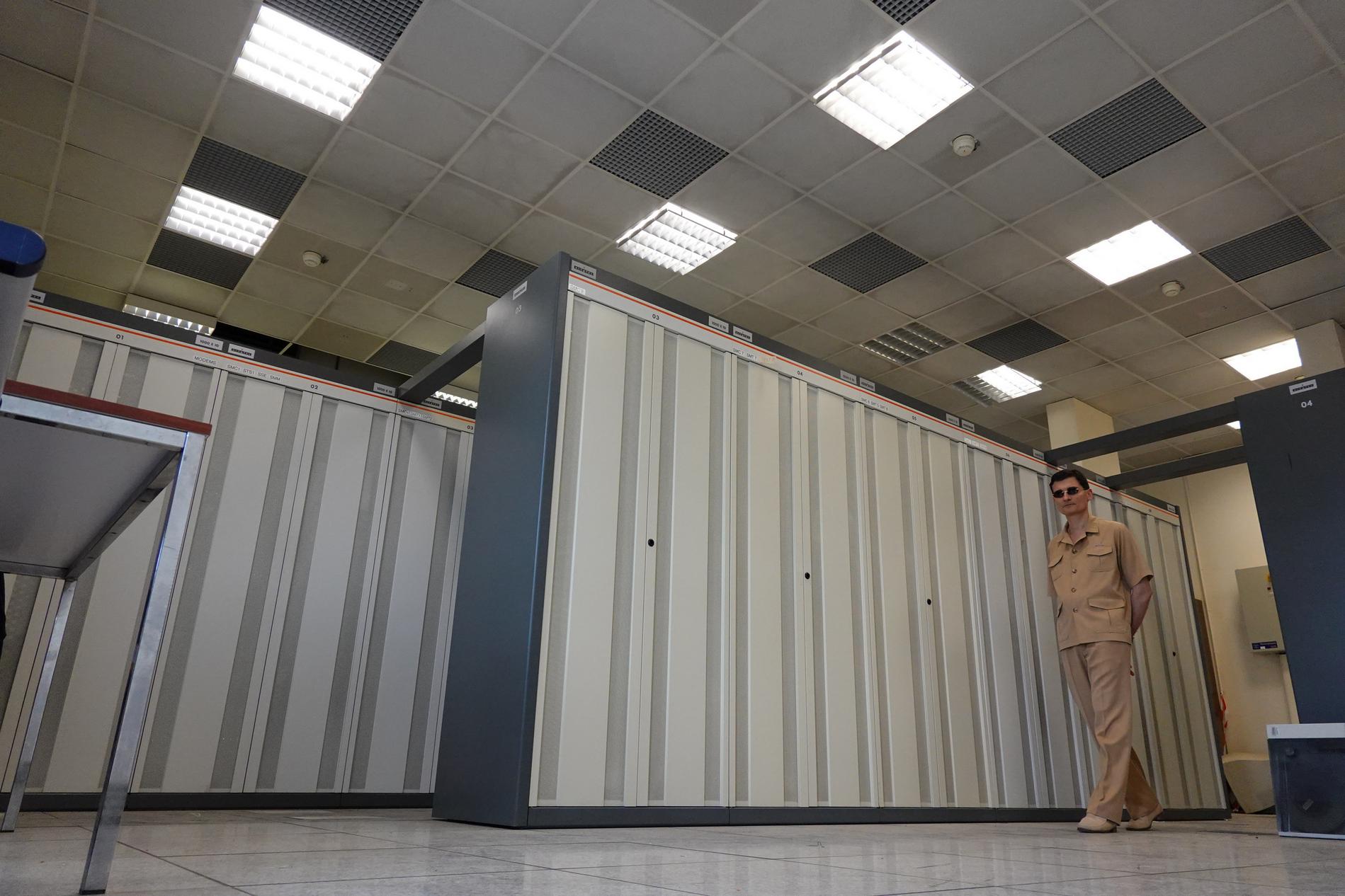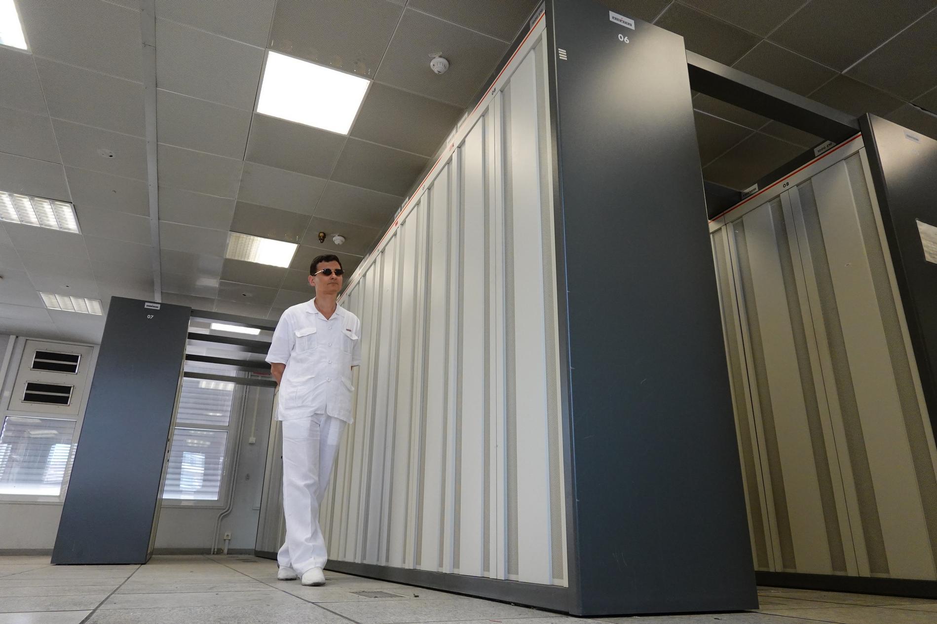 Ci-dessus : vue comparative AXE 10 - Calculateur A (APZ212-20) / humain de taille moyenne. Commutateur CHARLEBOURG 4 ET2 (CB34).