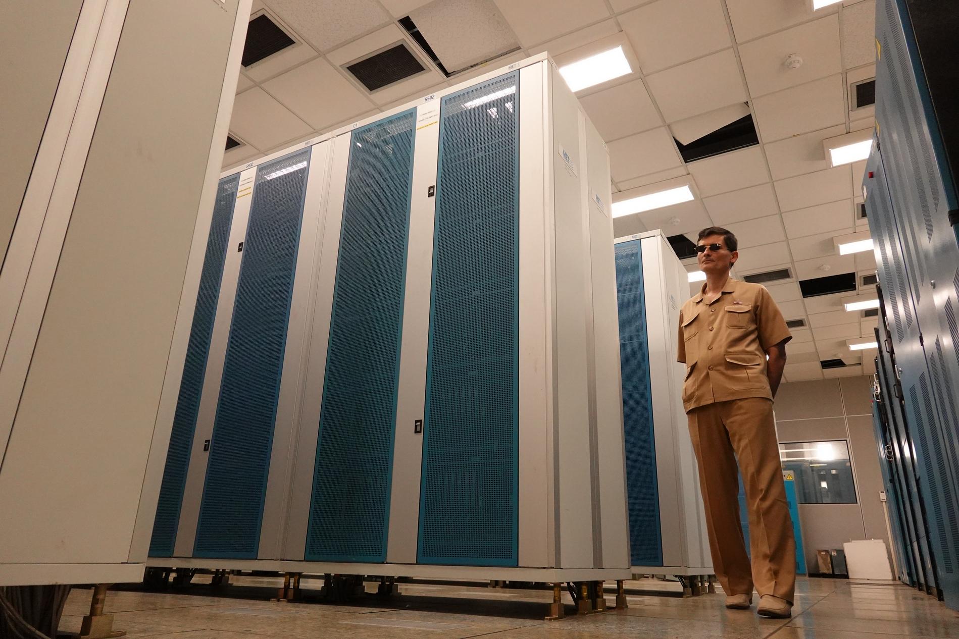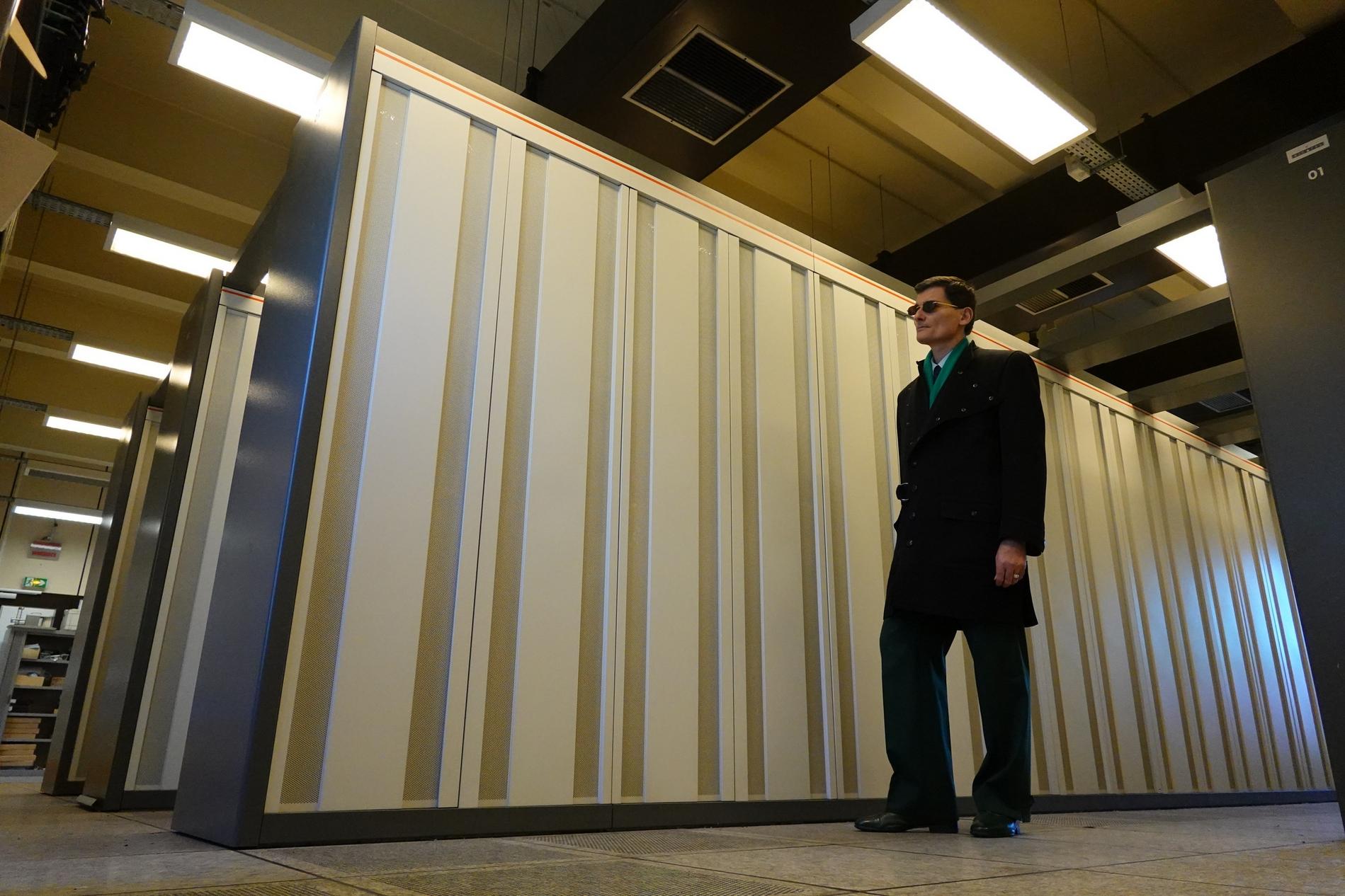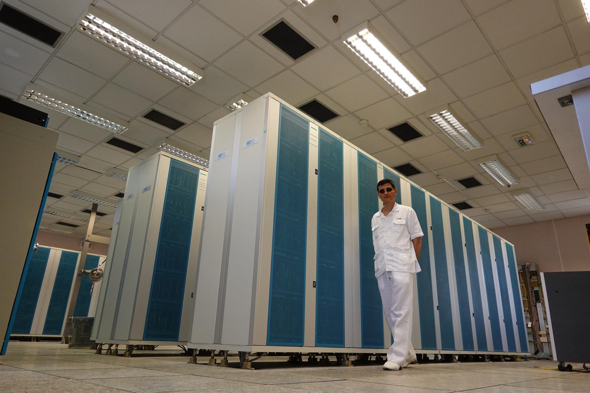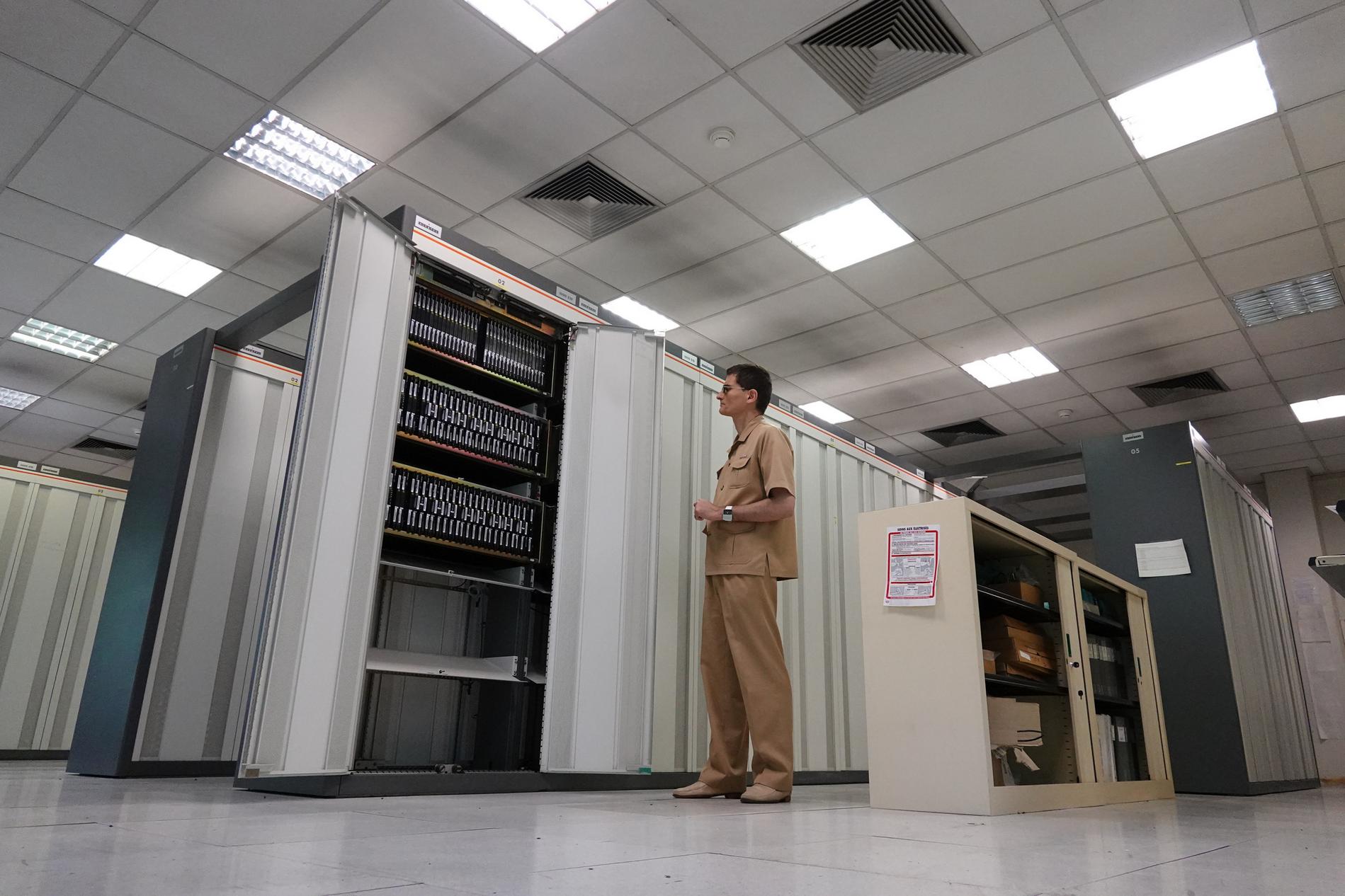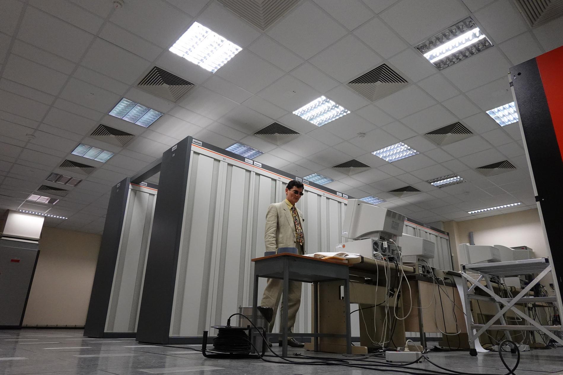 Ci-dessus : vue comparative AXE 10 - Calculateur A (APZ212-20) / humain de taille moyenne. Commutateur CHARLEBOURG 4 ET2 (CB34).