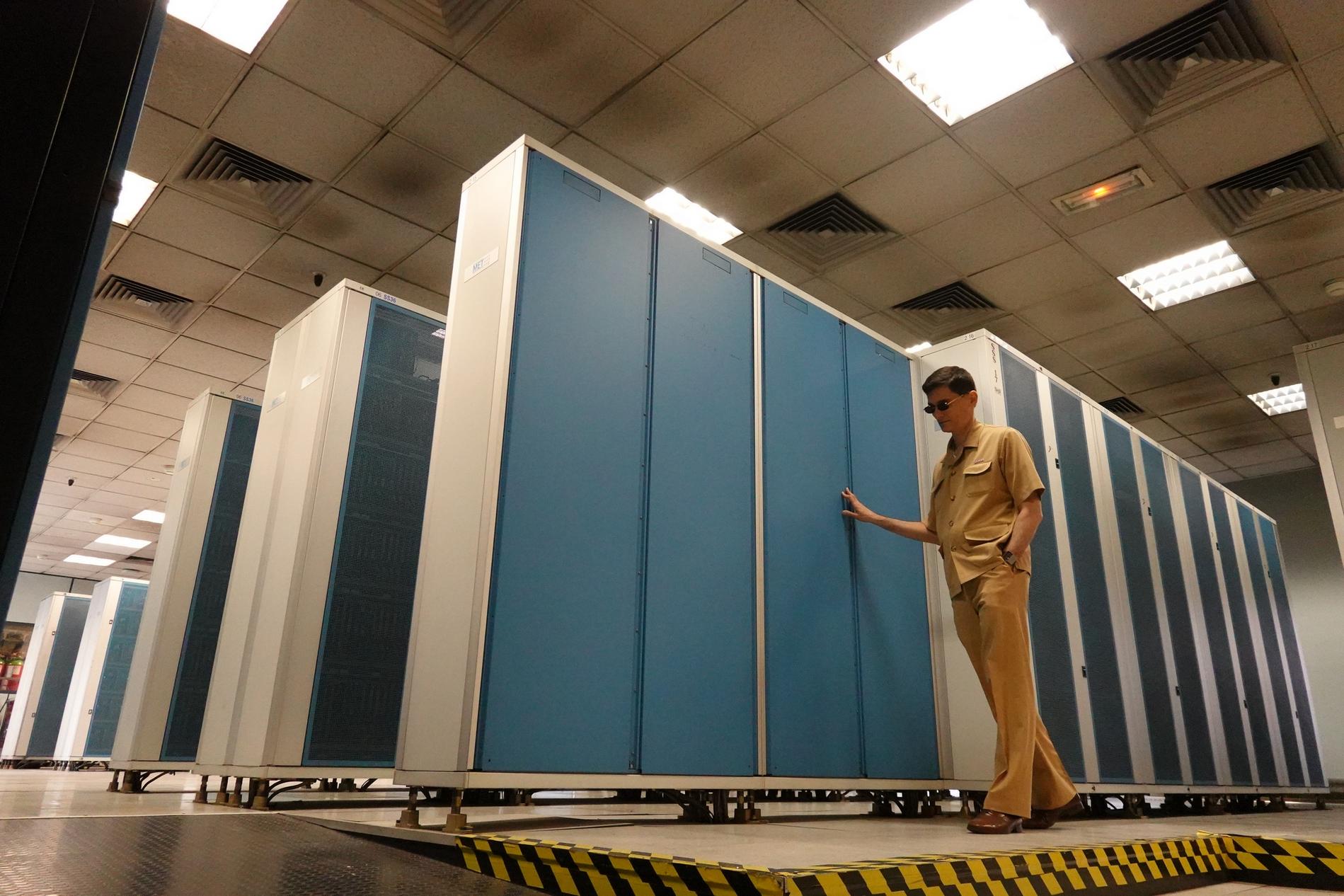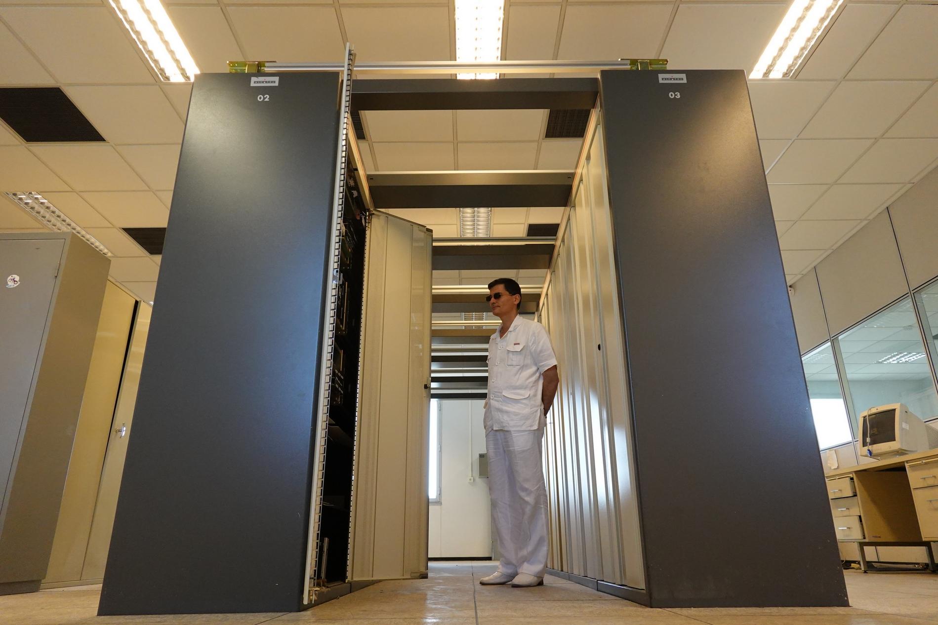 Ci-dessus : Commutateur temporel AXE10 sis au Centre Téléphonique Péreire, à Levallois-Perret (92).