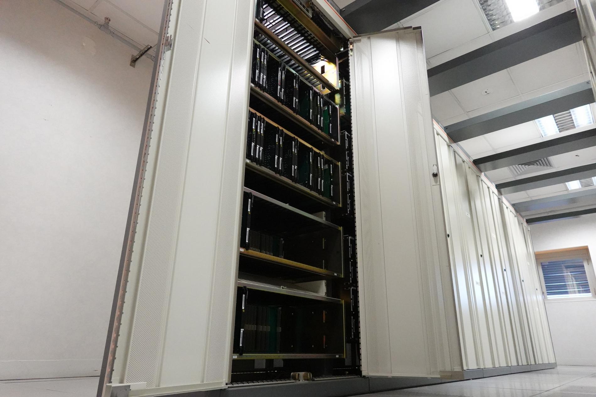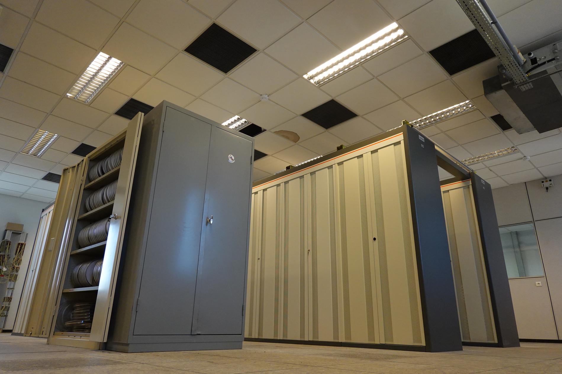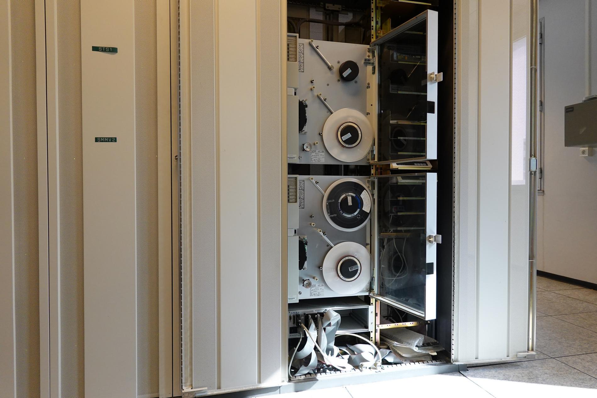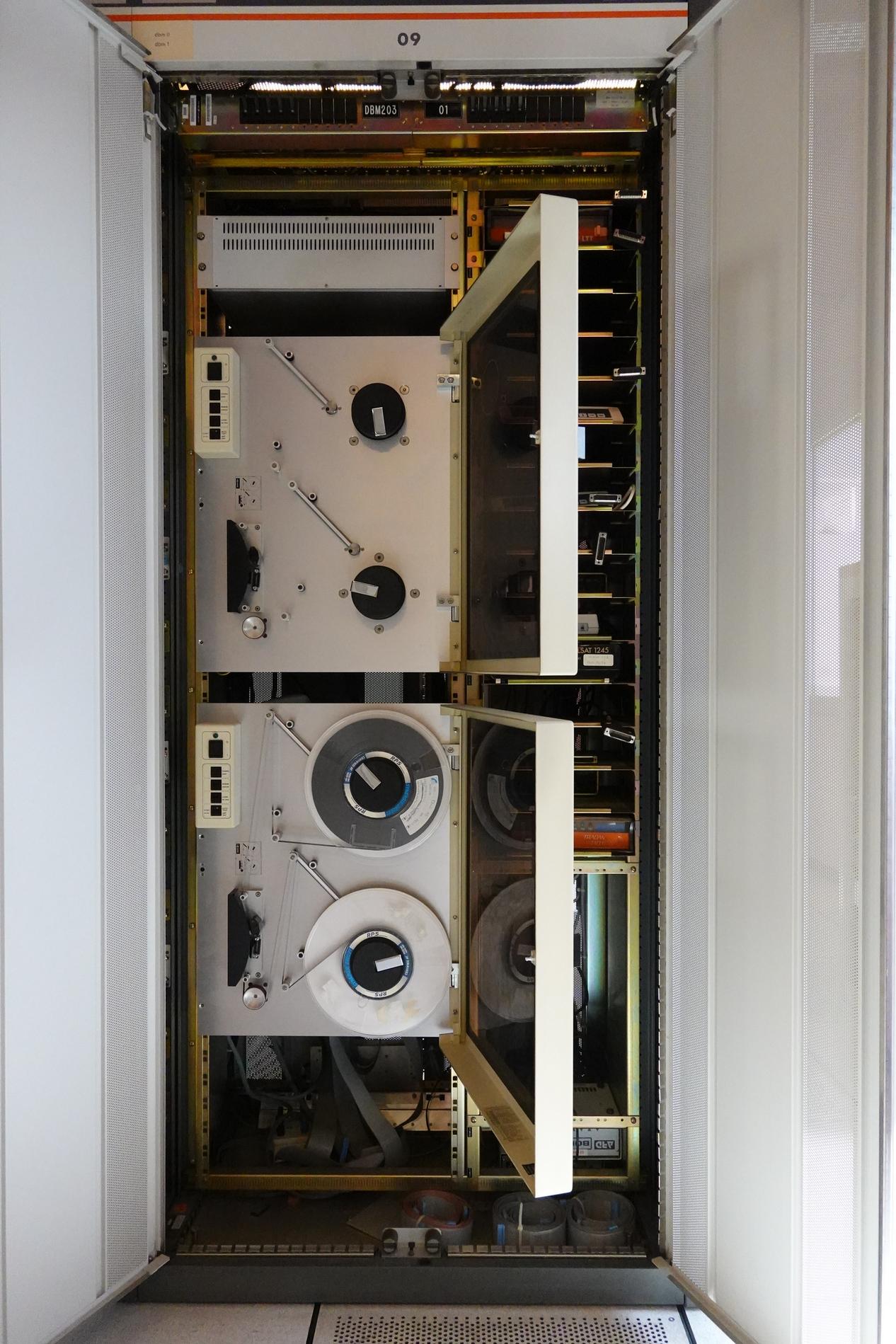 La sauvegarde externe de sécurité peut être effectuée par des dérouleurs à bandes magnétiques, puis ultérieurement par des dérouleurs à cassettes (supprimés depuis 2000, remplacés par des liaisons entrée-sortie informatiques).