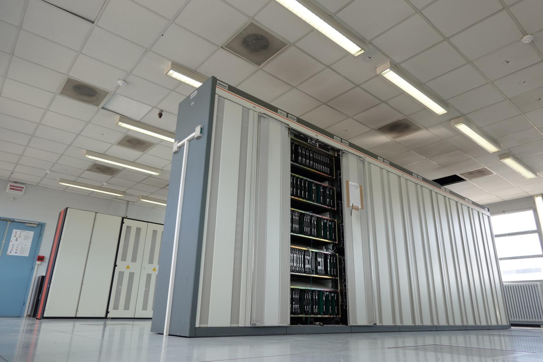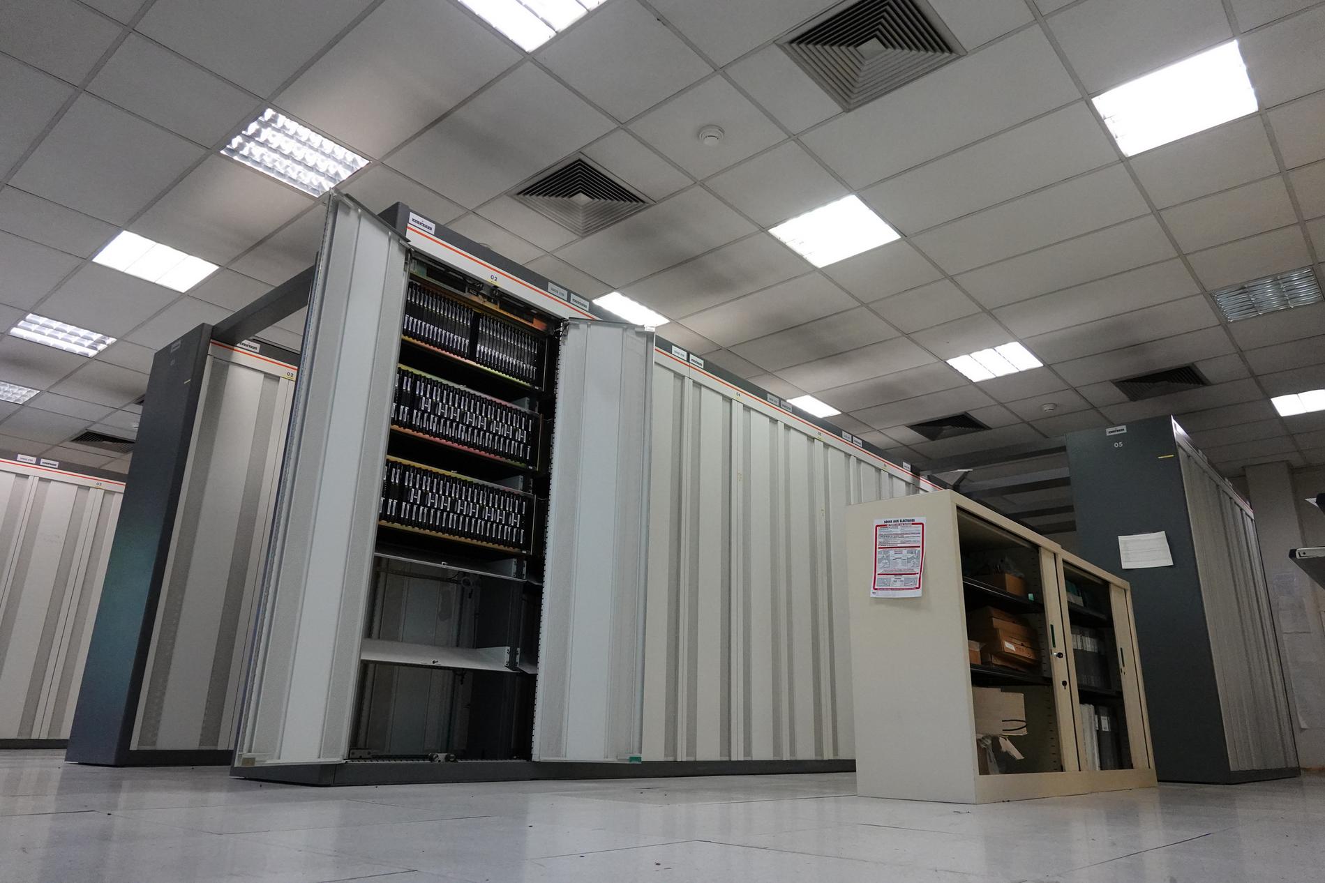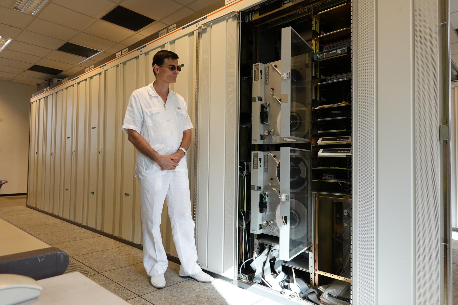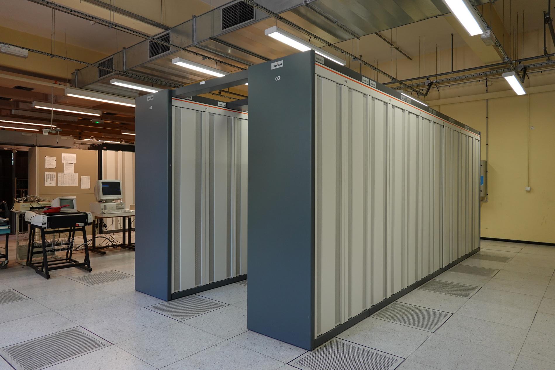 La sauvegarde externe de sécurité peut être effectuée par des dérouleurs à bandes magnétiques, puis ultérieurement par des dérouleurs à cassettes (supprimés depuis 2000, remplacés par des liaisons entrée-sortie informatiques).