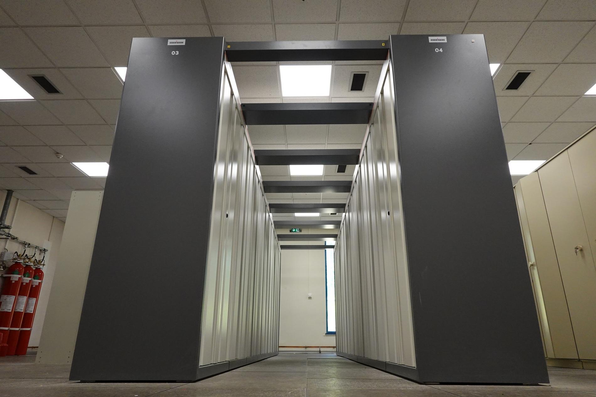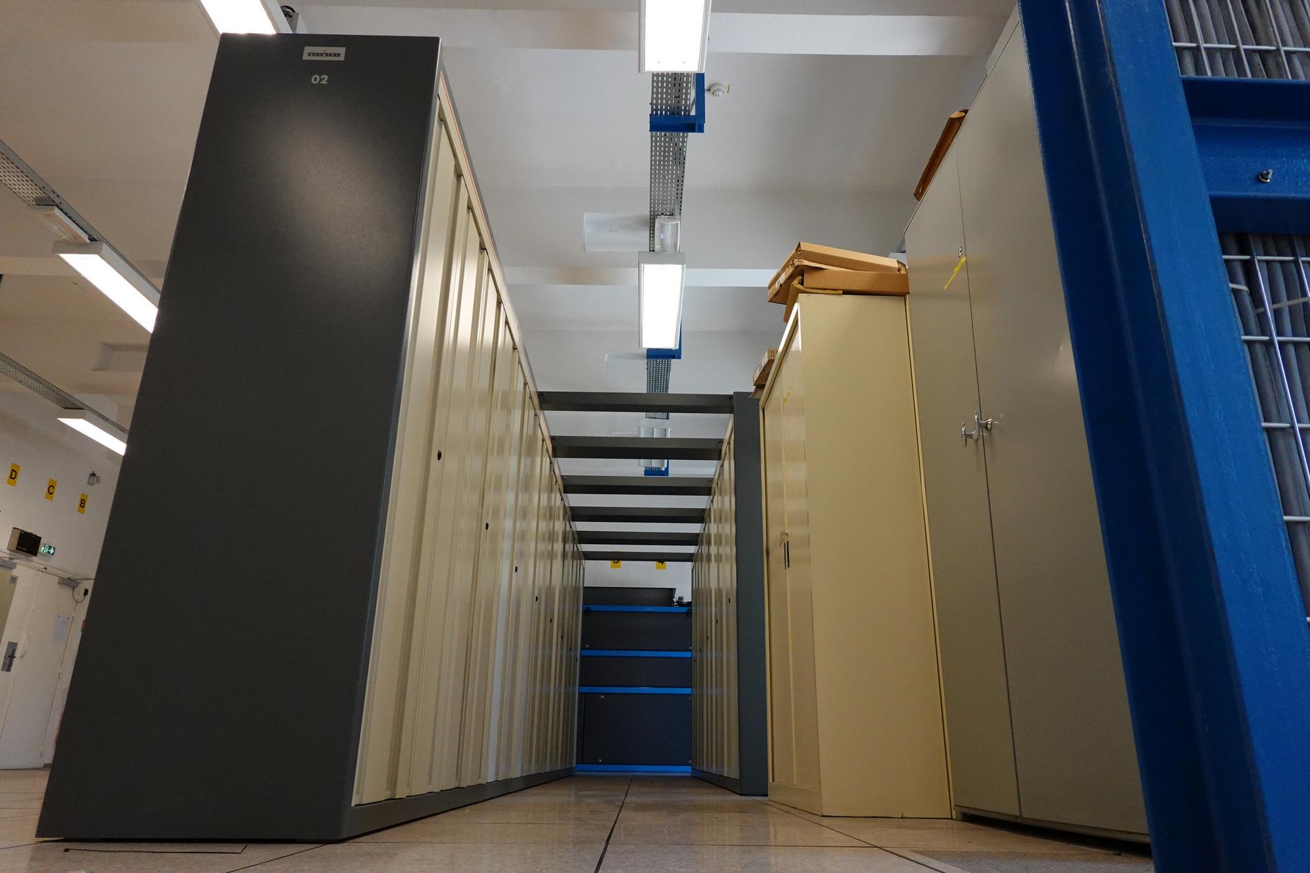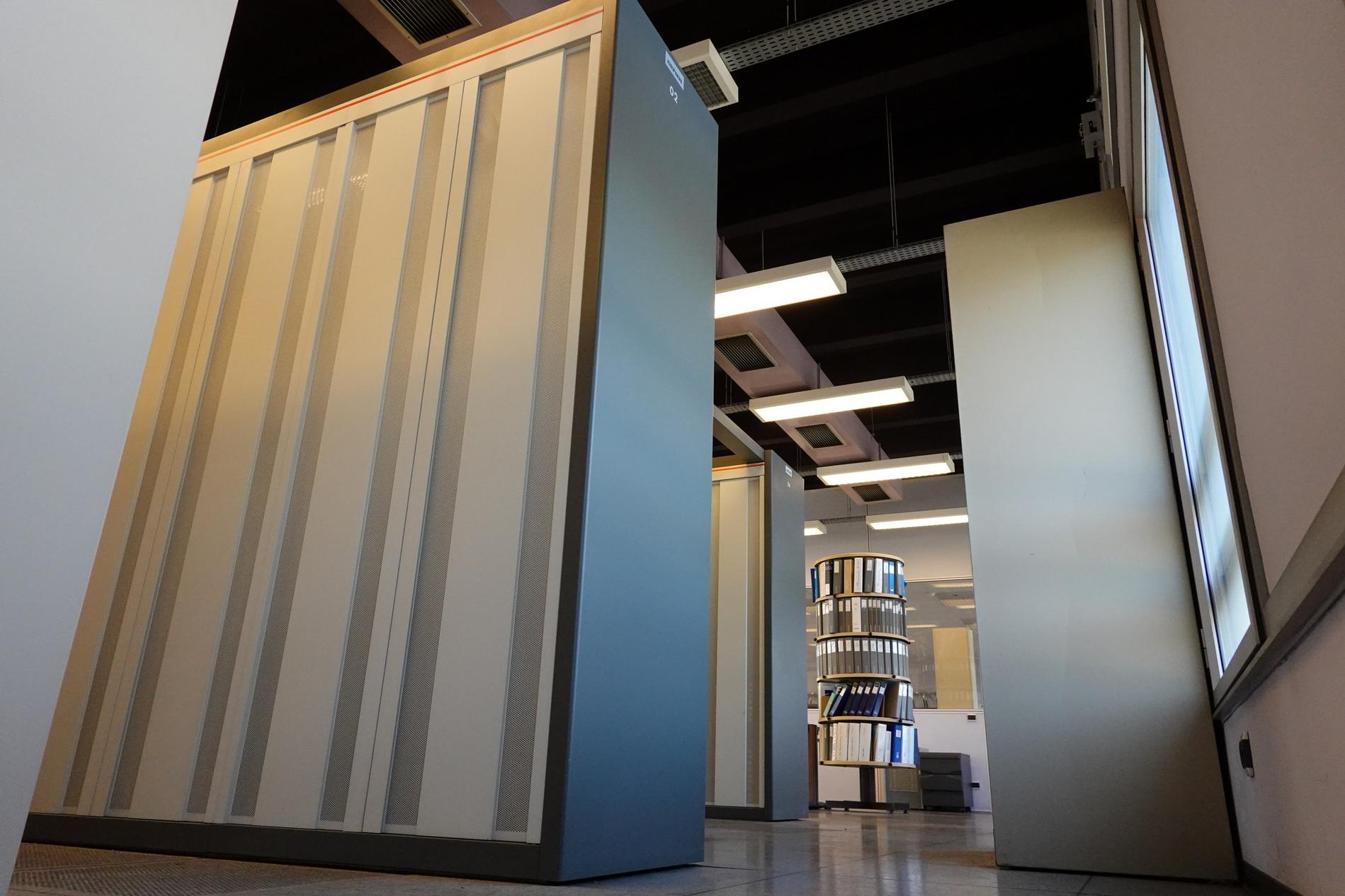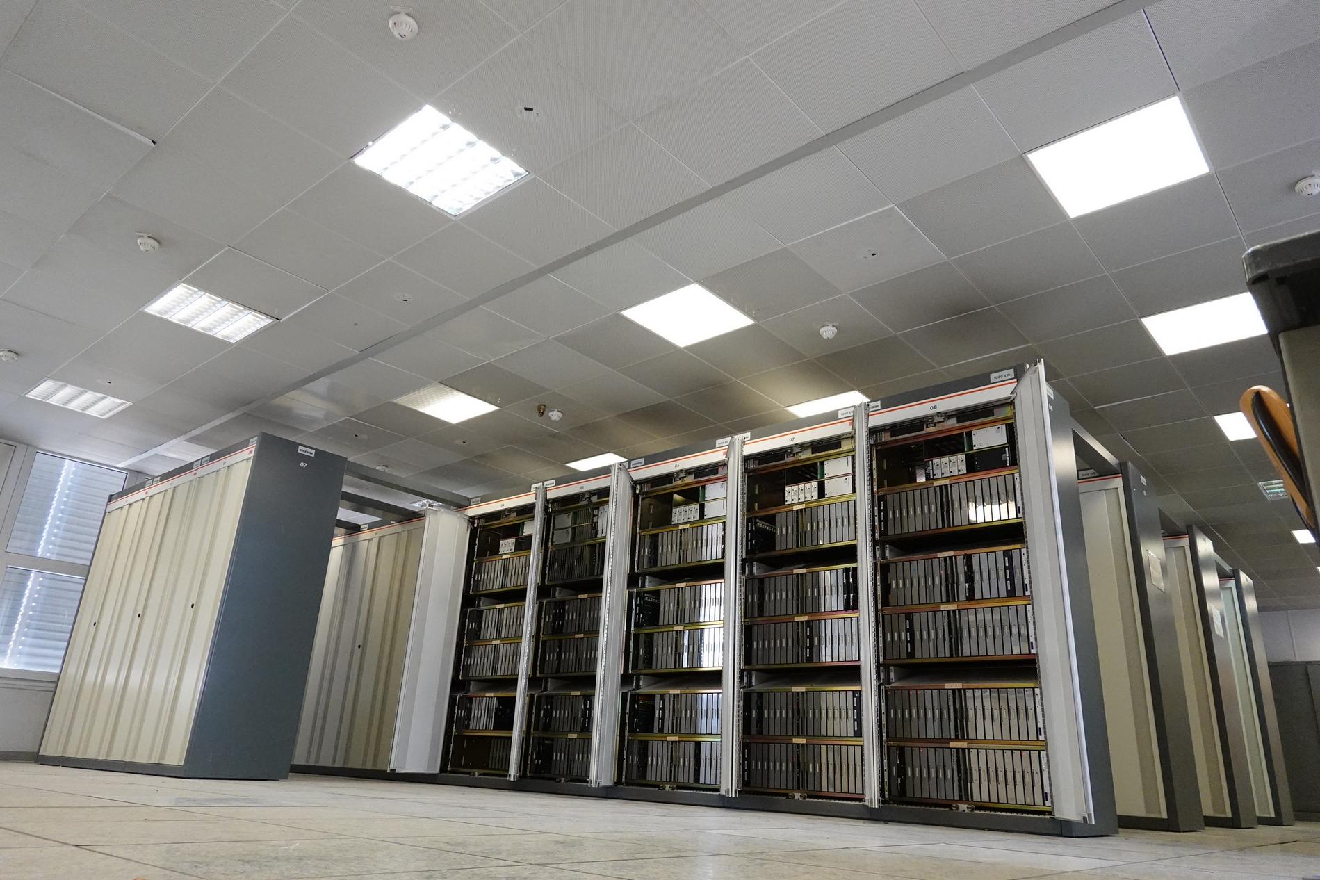 La sauvegarde externe de sécurité peut être effectuée par des dérouleurs à bandes magnétiques, puis ultérieurement par des dérouleurs à cassettes (supprimés depuis 2000, remplacés par des liaisons entrée-sortie informatiques).