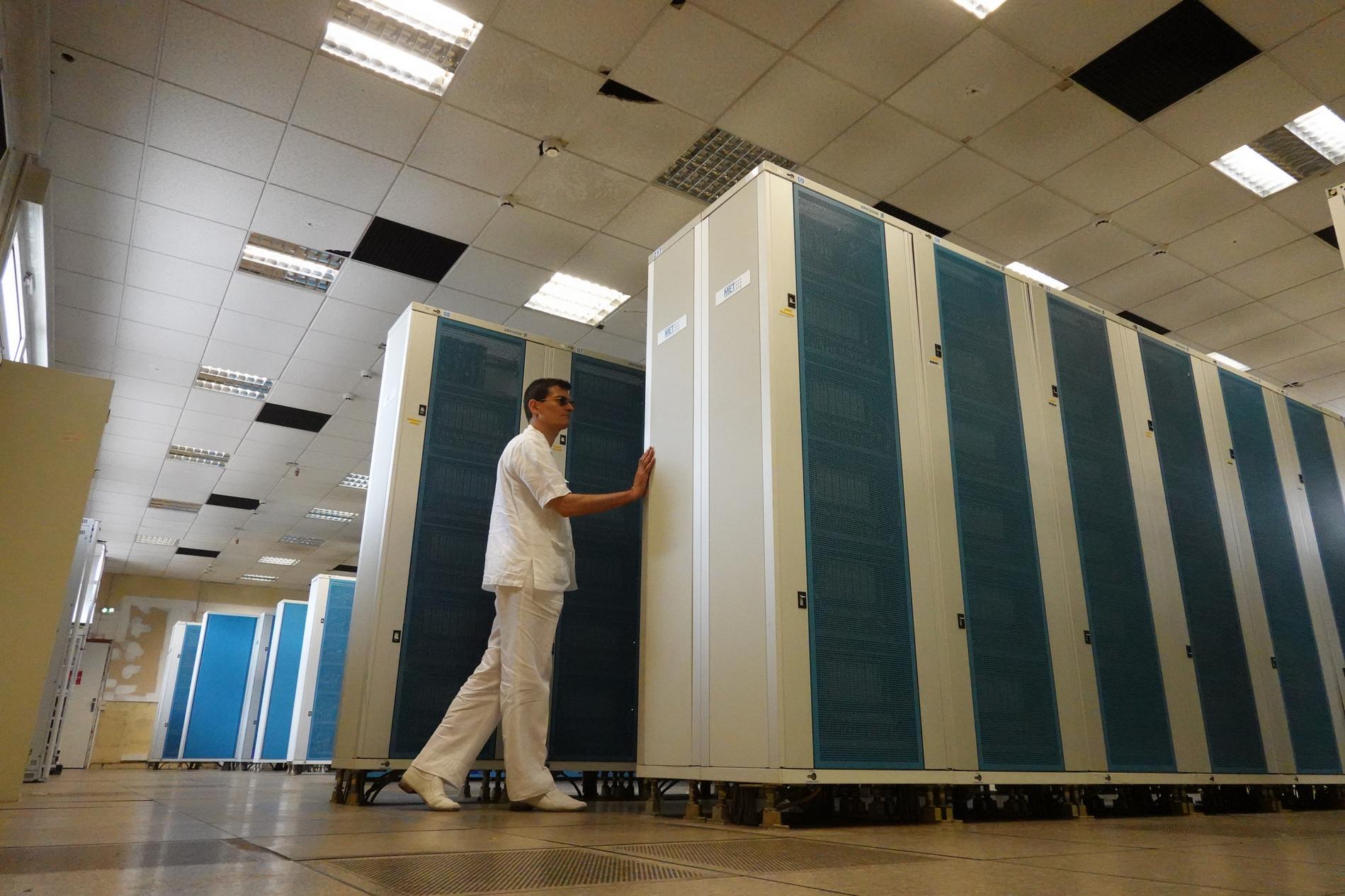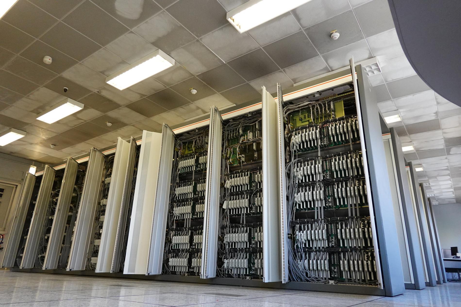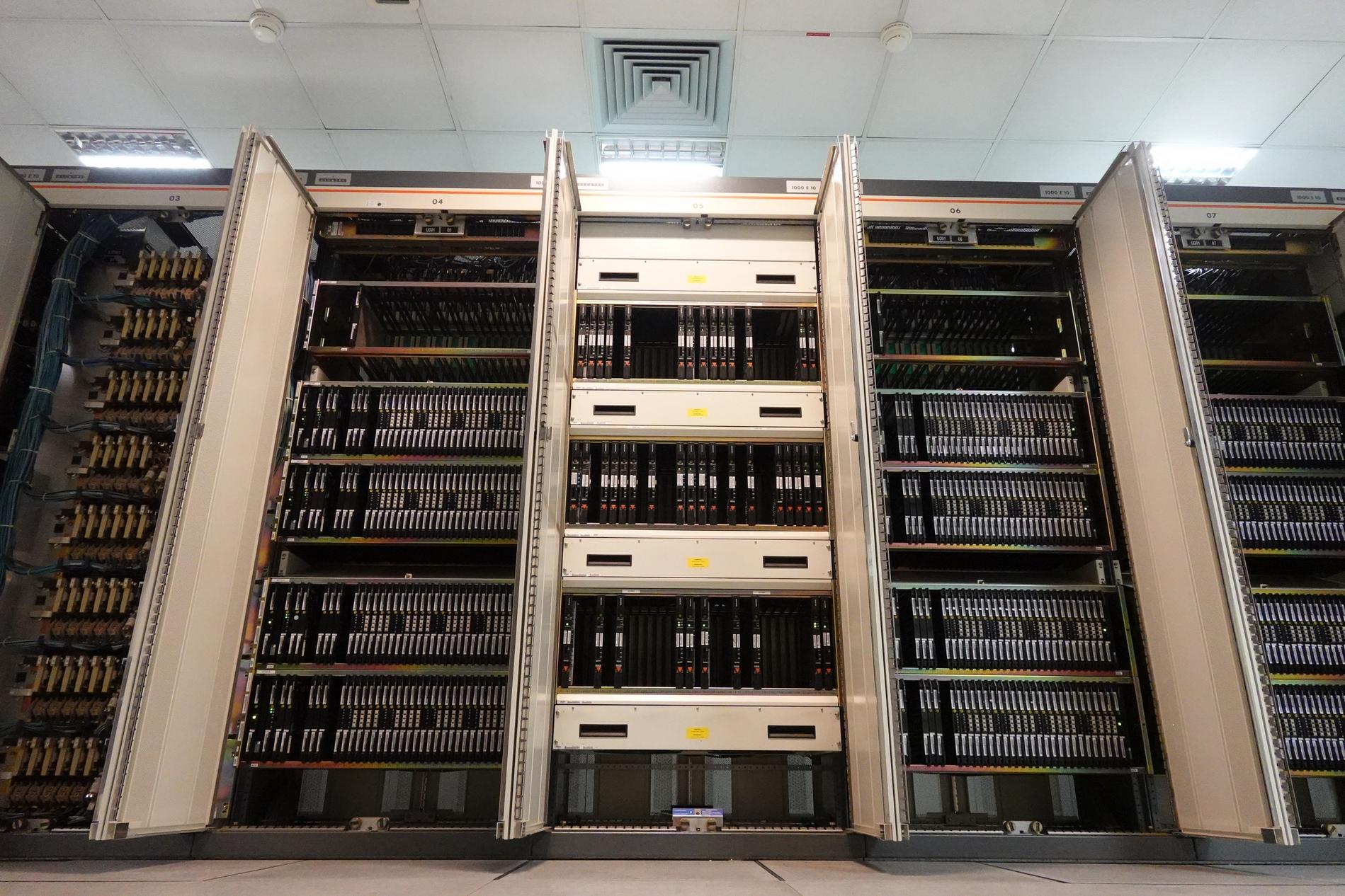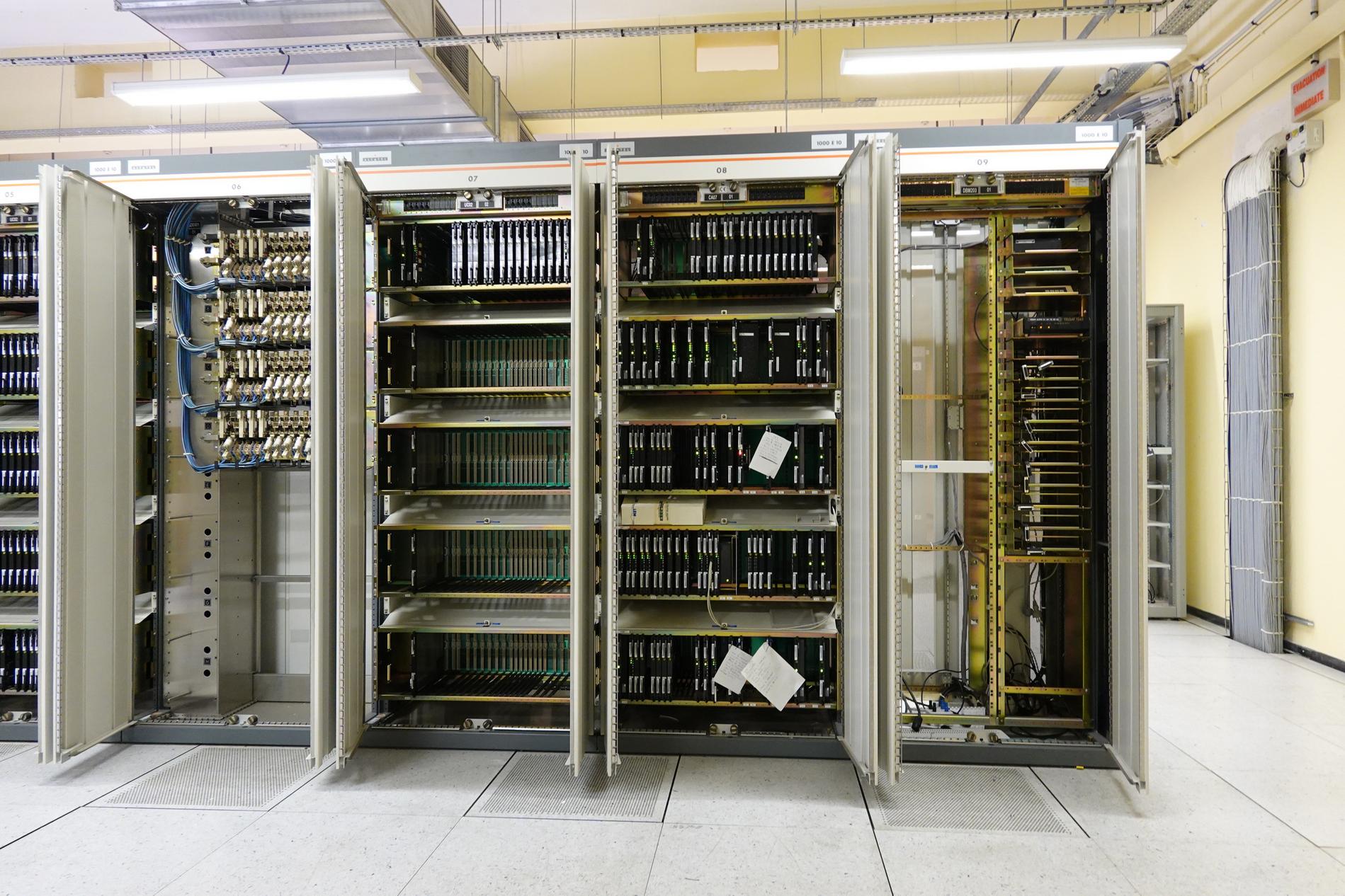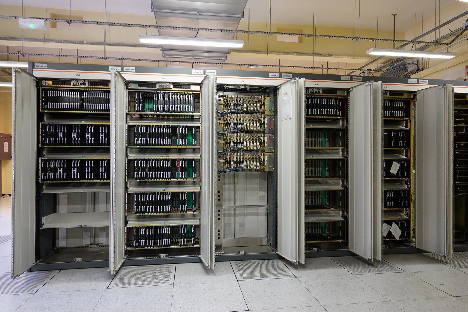 Ci-dessus : Commutateur temporel AXE10 sis au Centre Téléphonique Brest Algésiras, à Brest (29).