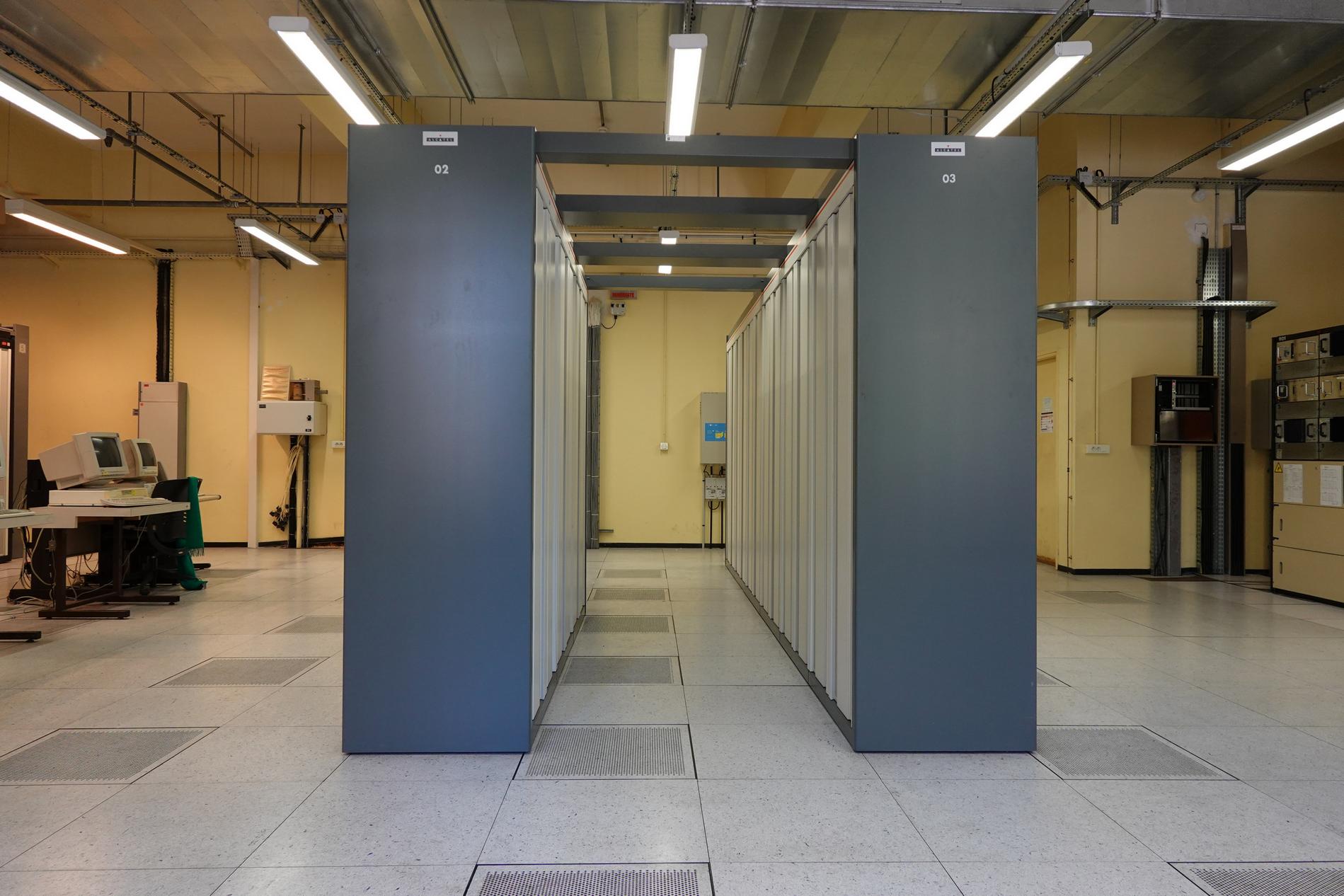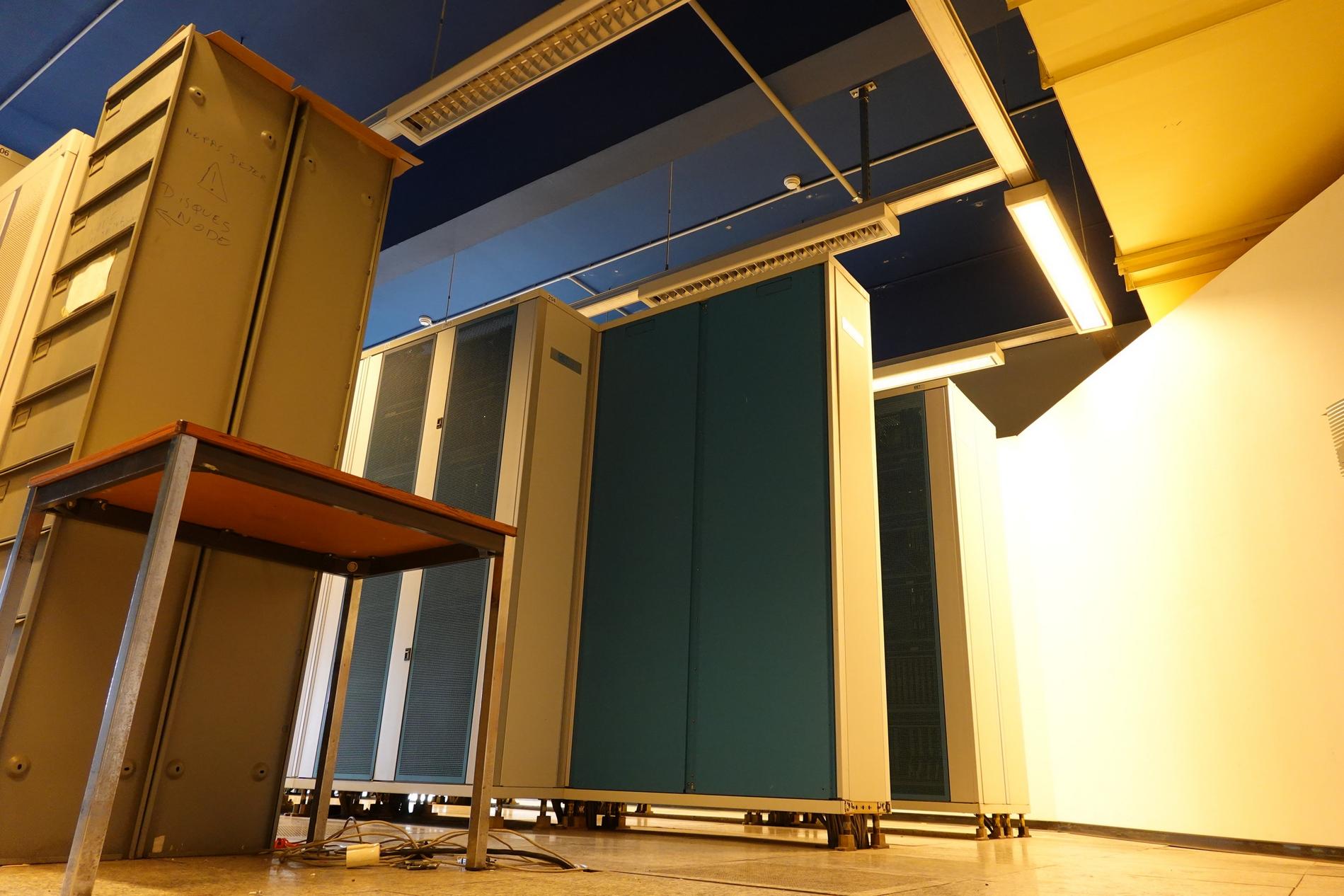 Ci-dessus : vue en enfilade d'un des deux Dérouleurs de Bandes Magnétiques (MTG1), puis d'un des deux Calculateurs Centralisés APZ212-20 (CP-A) du Commutateur Paris - NORD 6 AT1 (AD17).