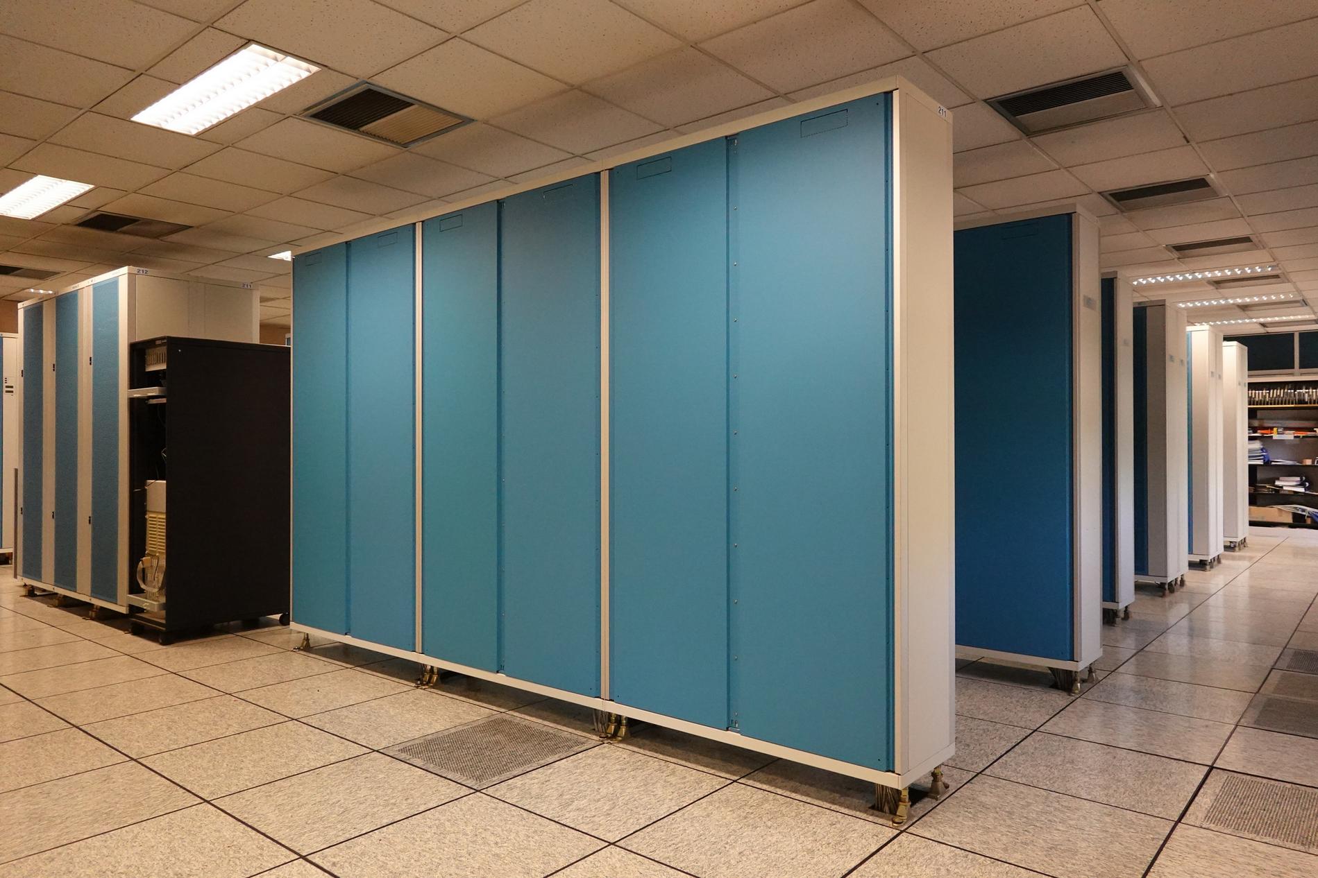 Ci-dessus : vue à gauche d'un Calculateur Centralisé d'AXE 10 de l'unité A (CPA), et à droite d'un Calculateur Centralisé de l'unité B (CPB). TREMBLAY-EN-FRANCE 1 AT1 (BC85).