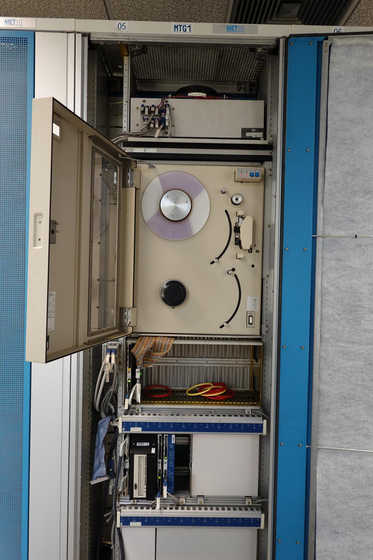 Ci-dessus : Dérouleur de Bandes Magnétiques (DBM) de marque Pertec, utilisé dans les Commutateurs E10B3 au début des années 1990.