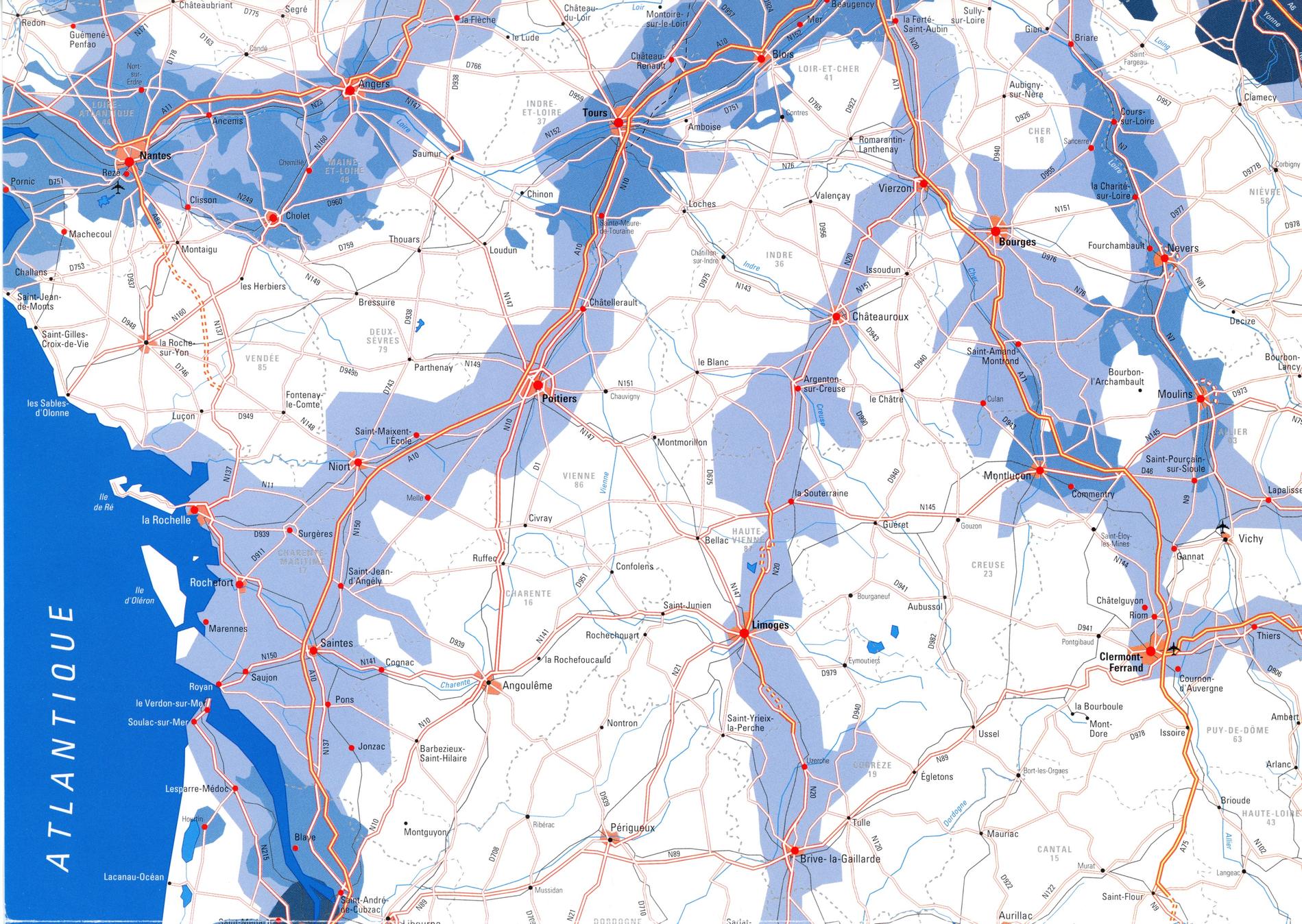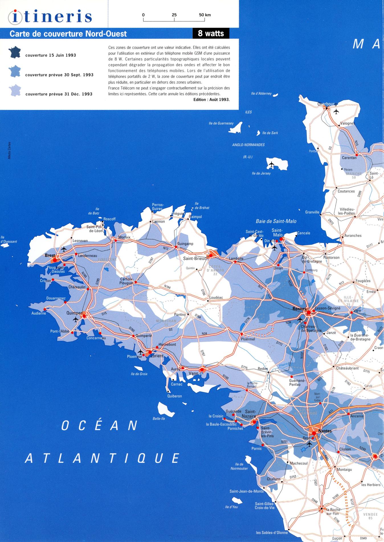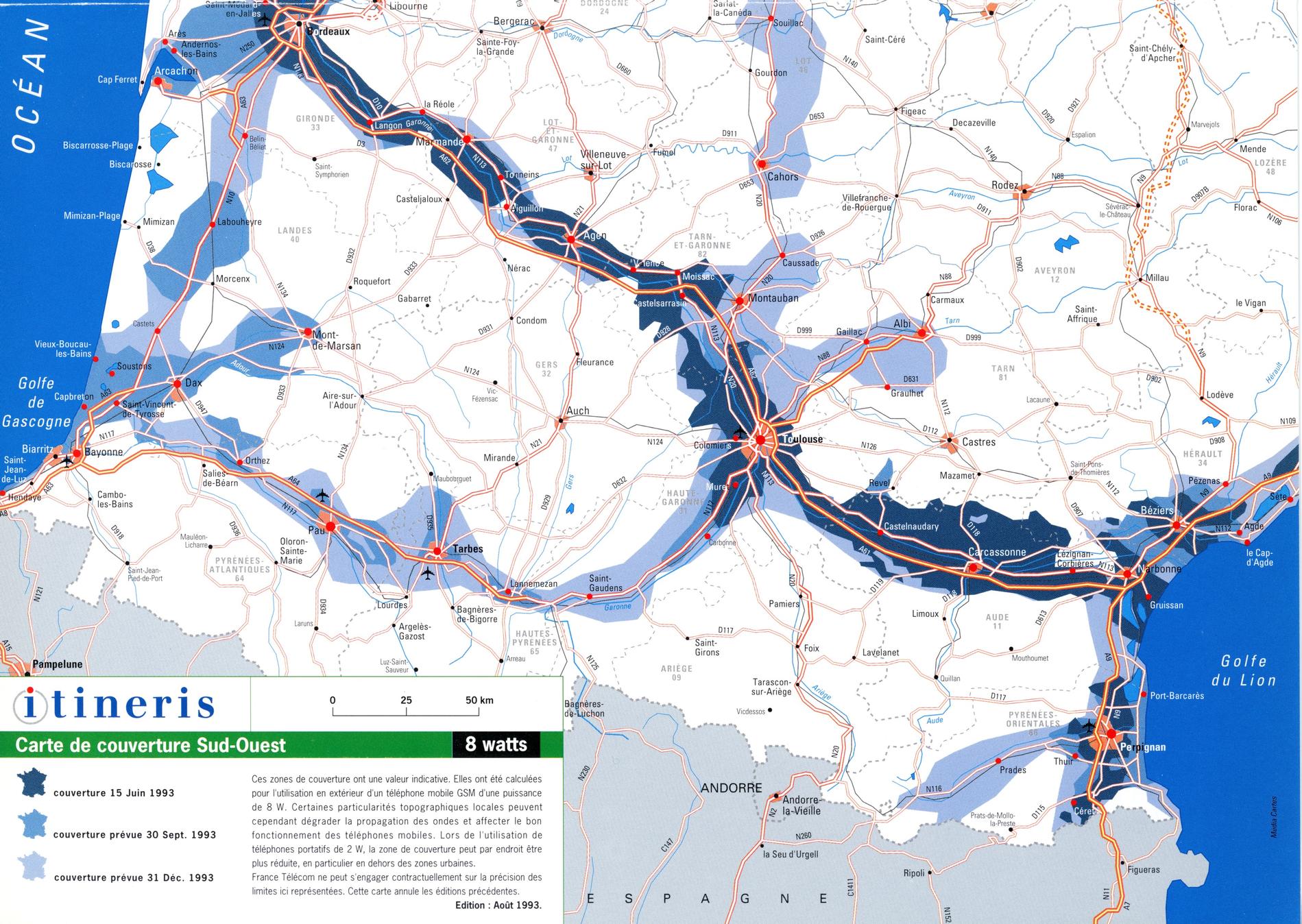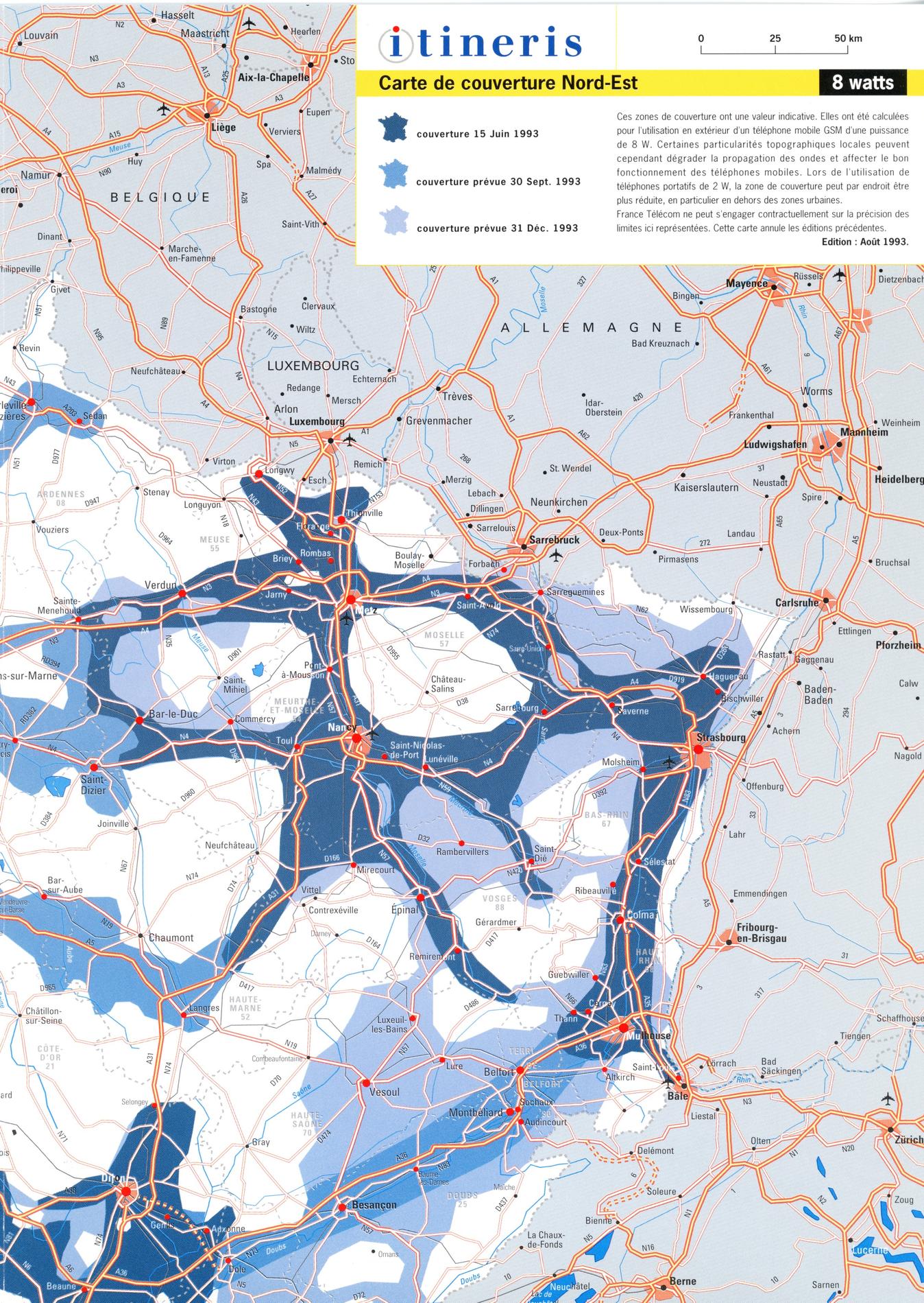 Ci-dessus : Carte de couverture GSM prévisionnelle publiée en Juillet 1992.