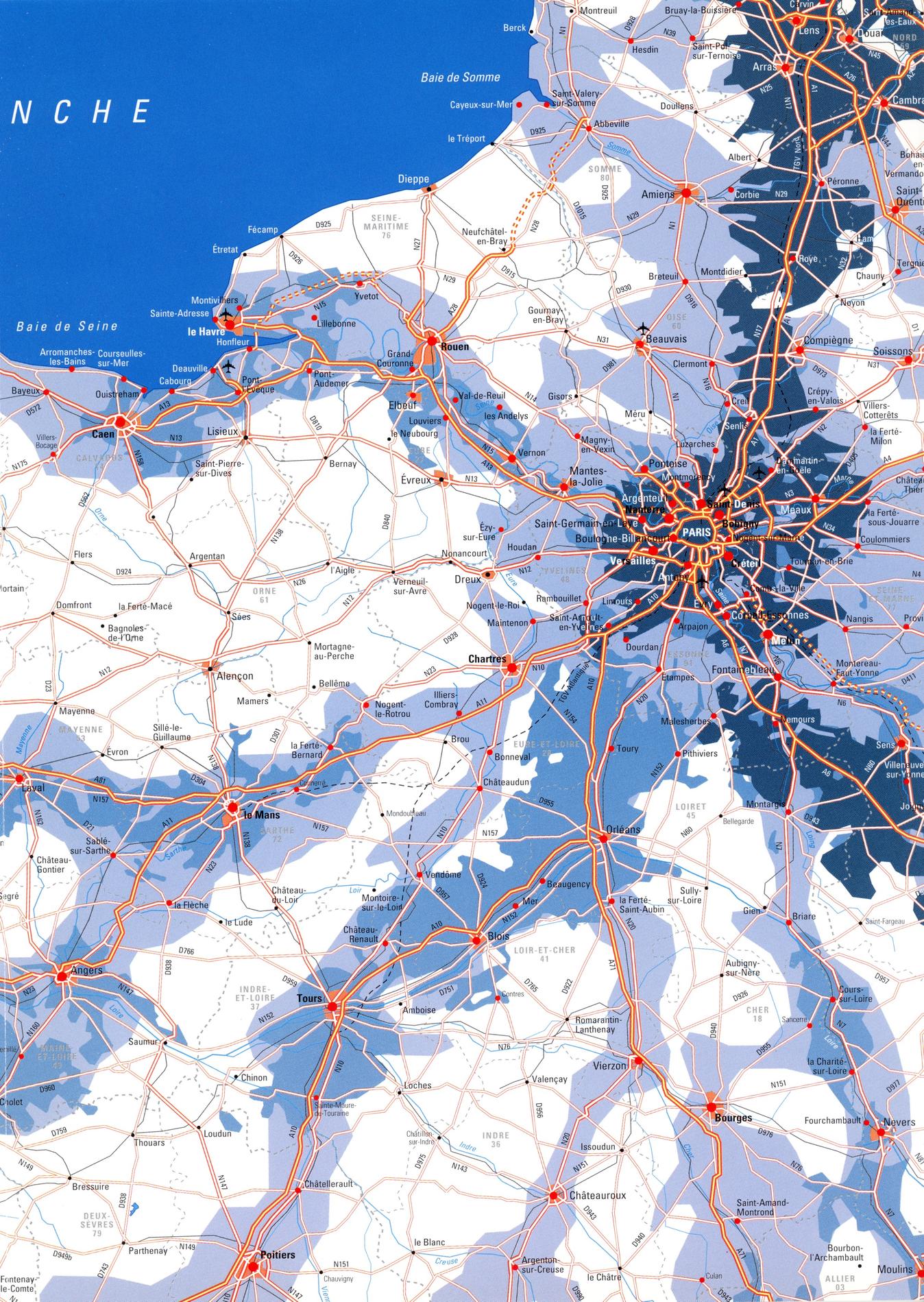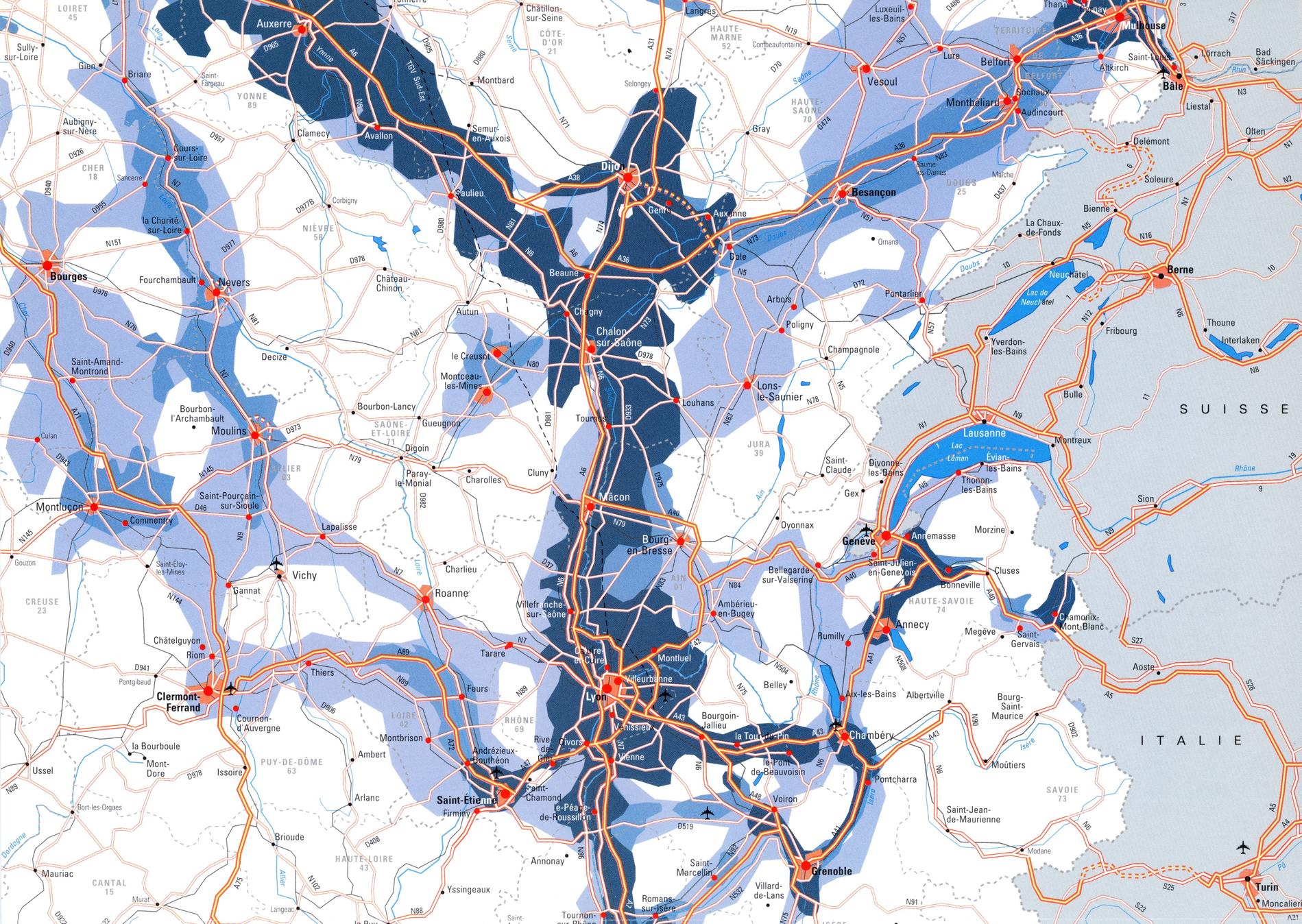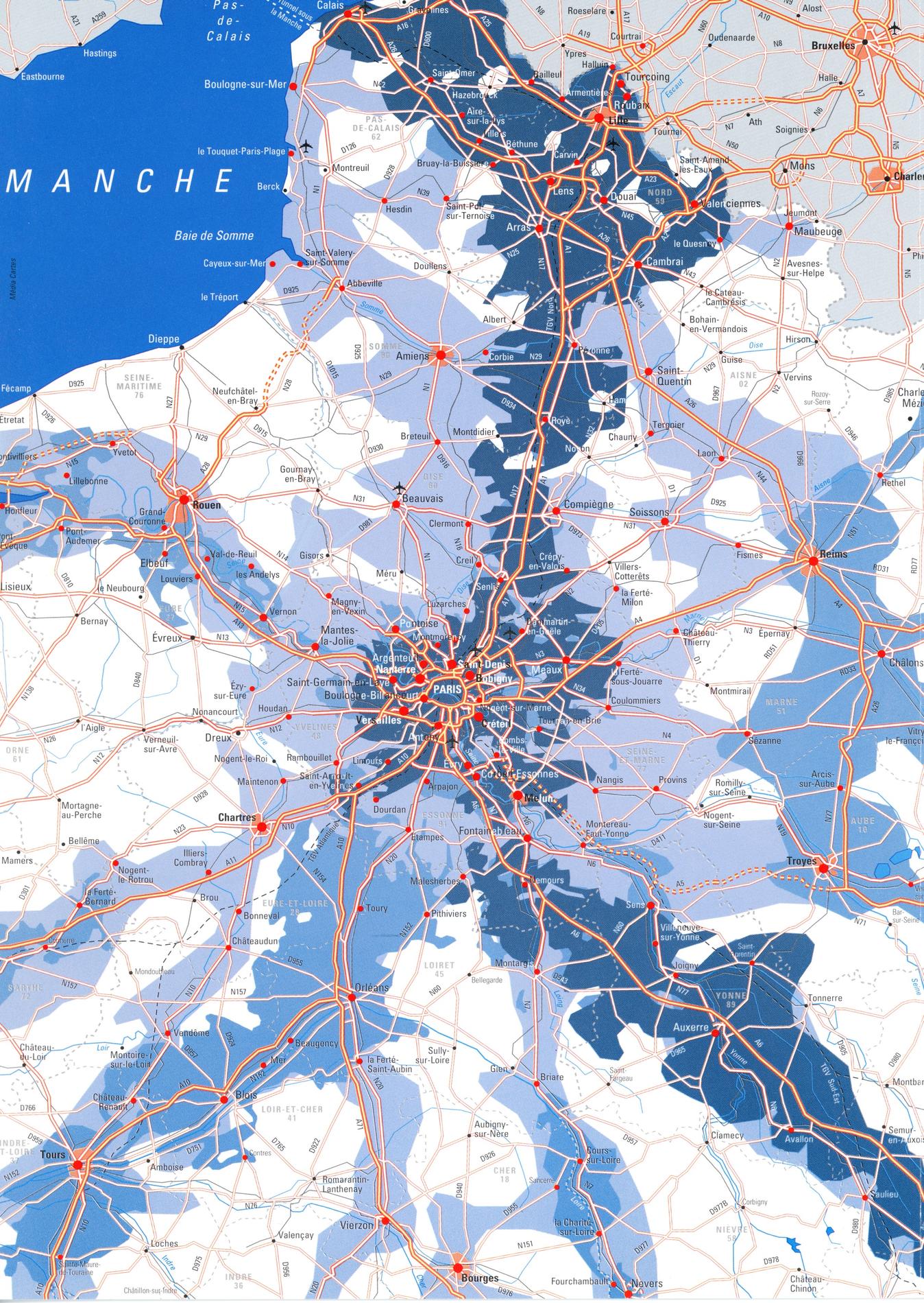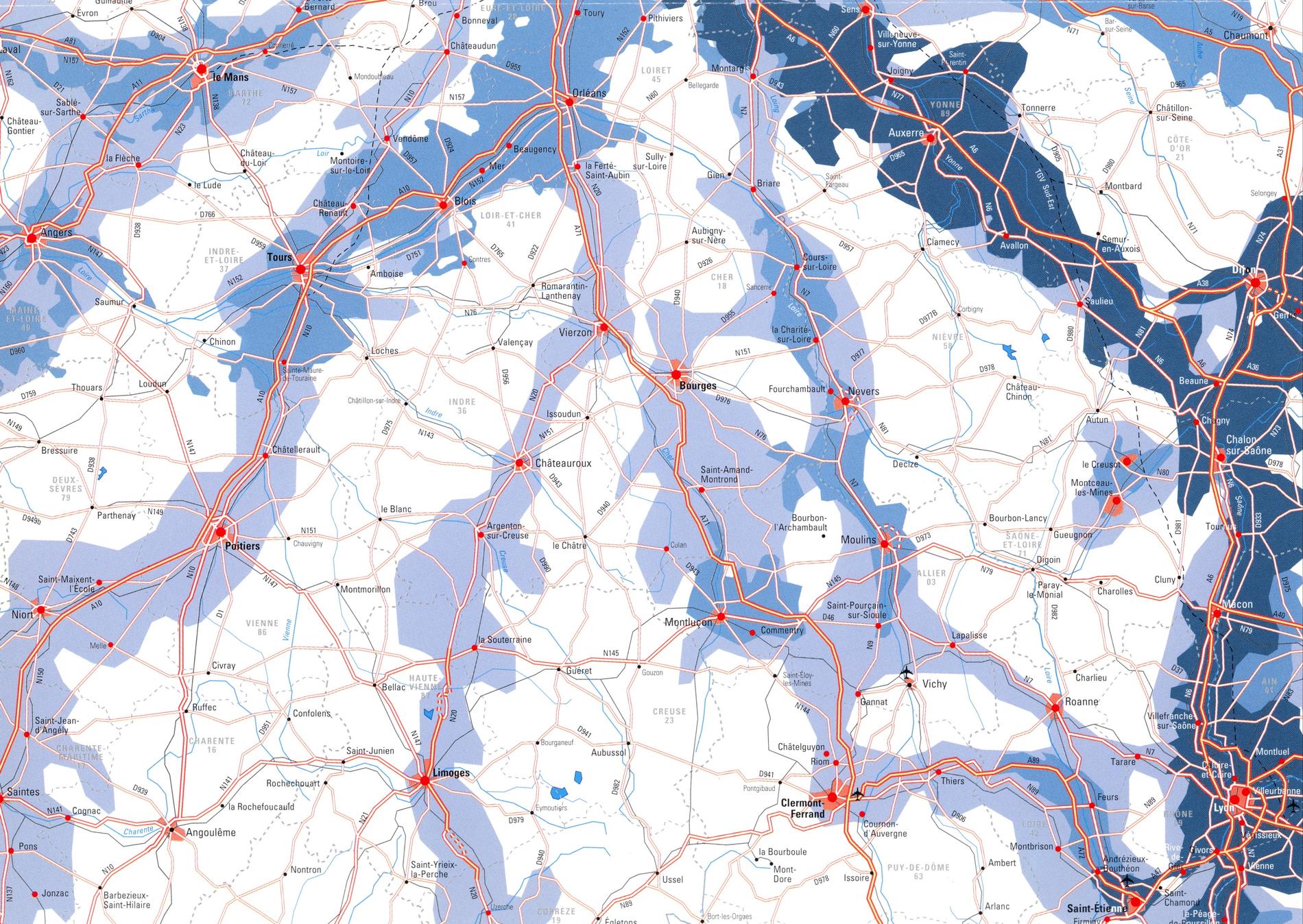 Ci-dessus : Carte de couverture GSM prévisionnelle publiée en Juillet 1992.