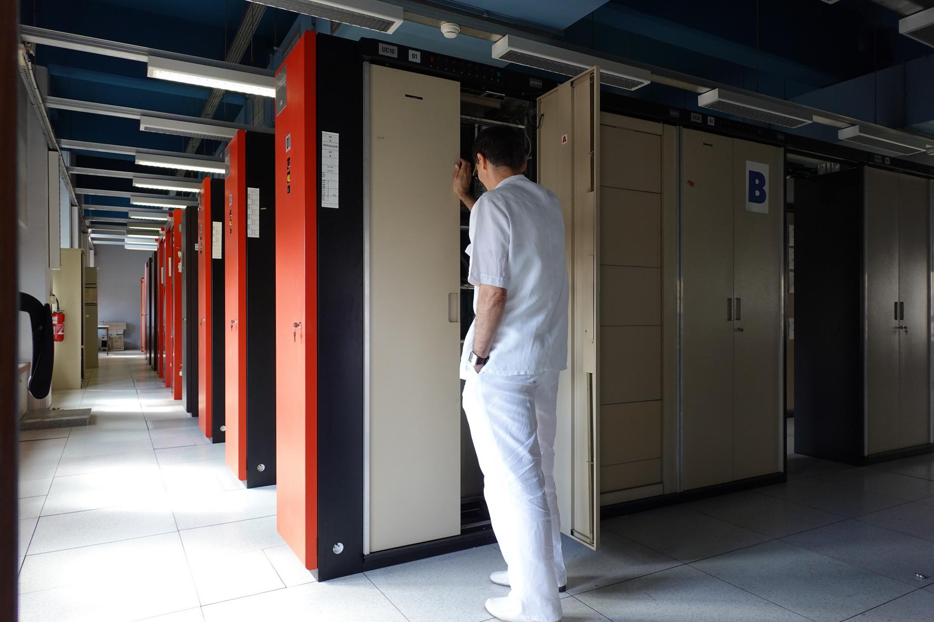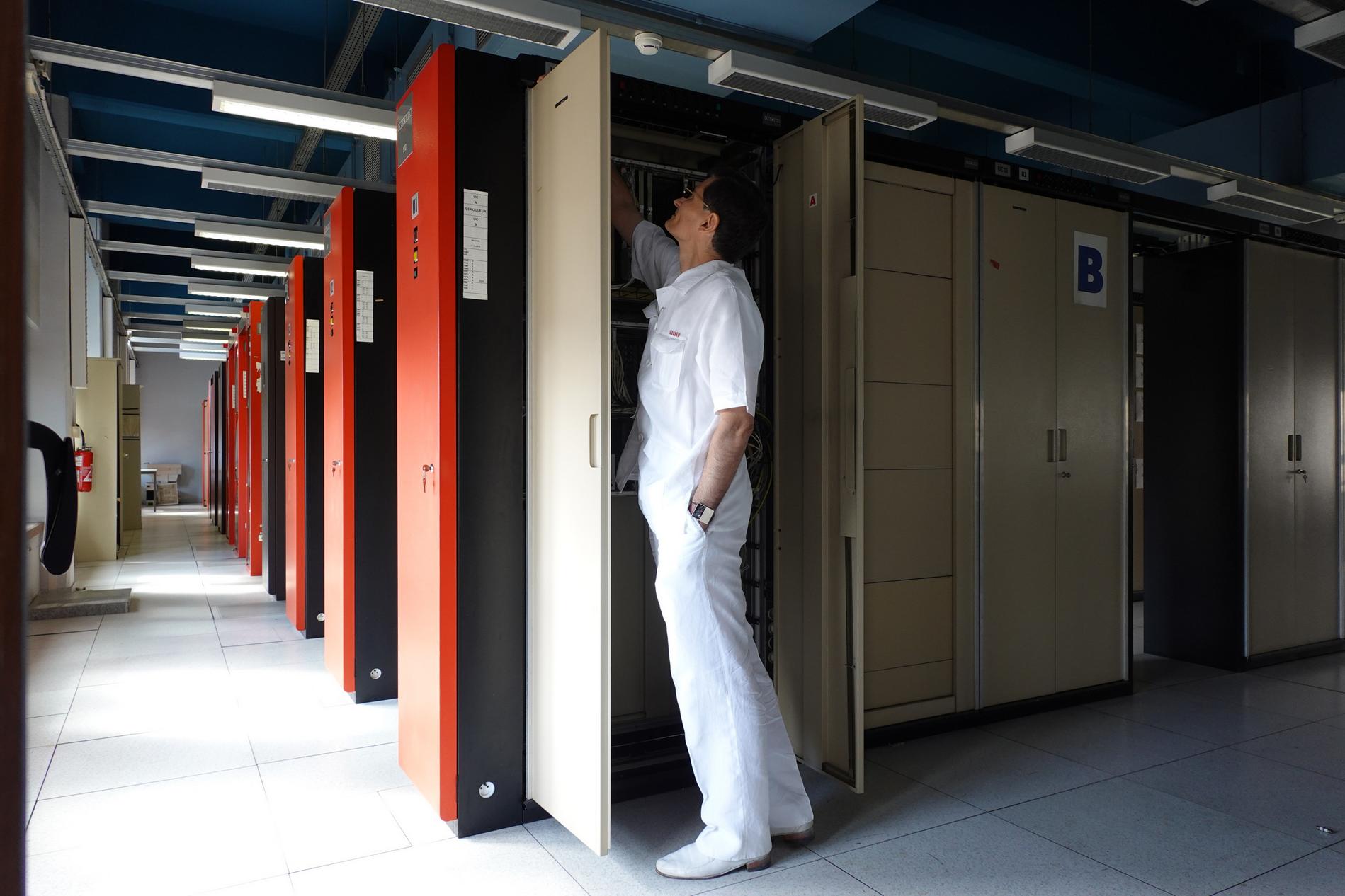 Ci-dessus : inspection du Commutateur parisien MT25 Masséna 3 ET2 (AC83), 1er commutateur qui porta le premier appel téléphonique GSM passé en France et dans le monde le 1er juillet 1991 à 15H00.