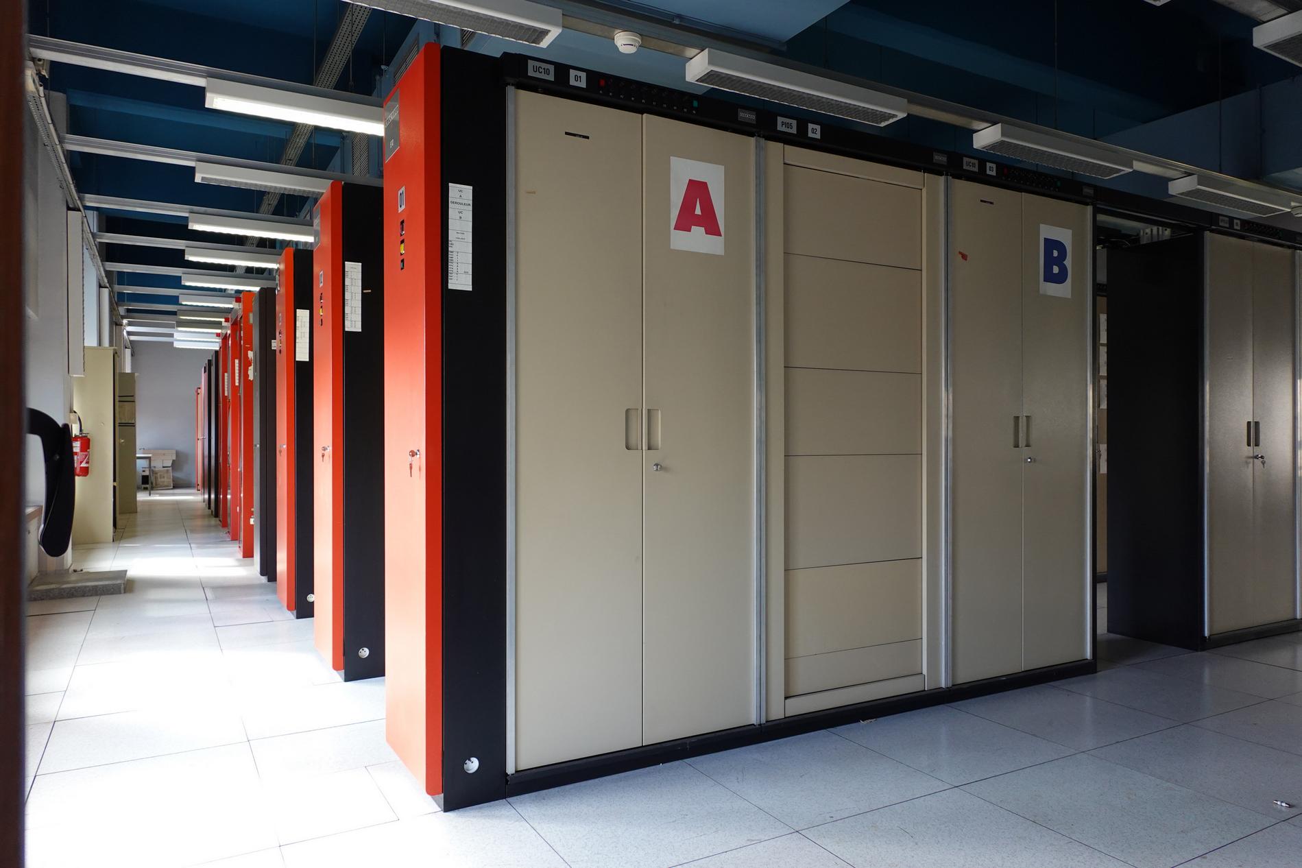 Ci-dessus : vue de 4 baies BSC Motorola GSM désormais d'un âge vénérable, supérieur à 20 ans, qui servent (encore aujourd'hui) à traiter les communications en norme GSM 2G de l'opérateur Orange. Celles-ci, encore en service à Paris au centre téléphonique Beaujon.
