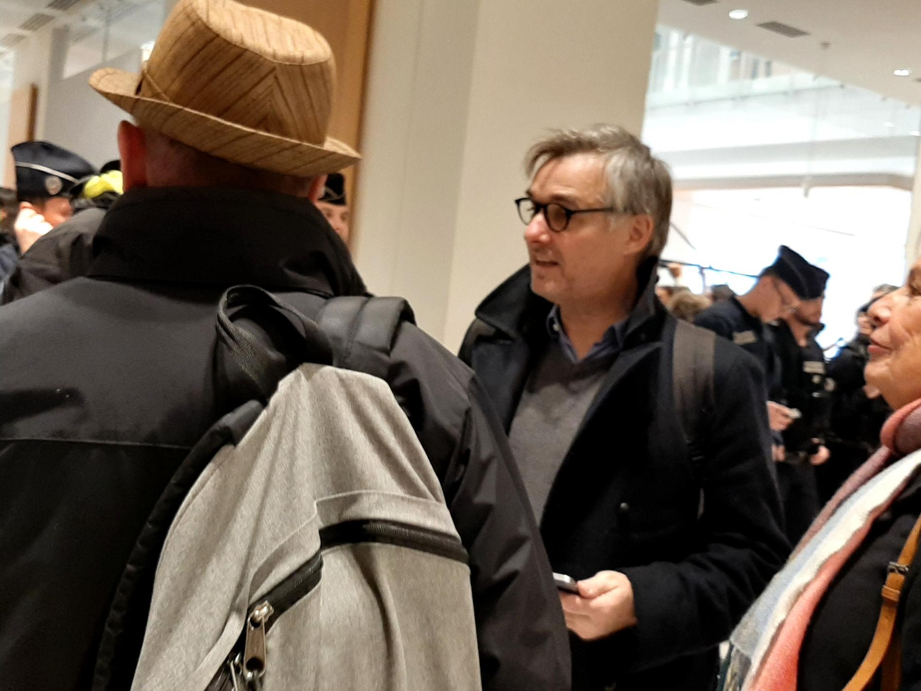 Ci-dessus : l'interview donnée par Raphaël un des deux fils de la Victime, à la caméra de SUD, après l'examen de la situation de son père. D'une clarté qui tranche avec les fariboles habituelles des Prévenus dans ce Tribunal... (© SUD- PTT - 27 juin 2019)