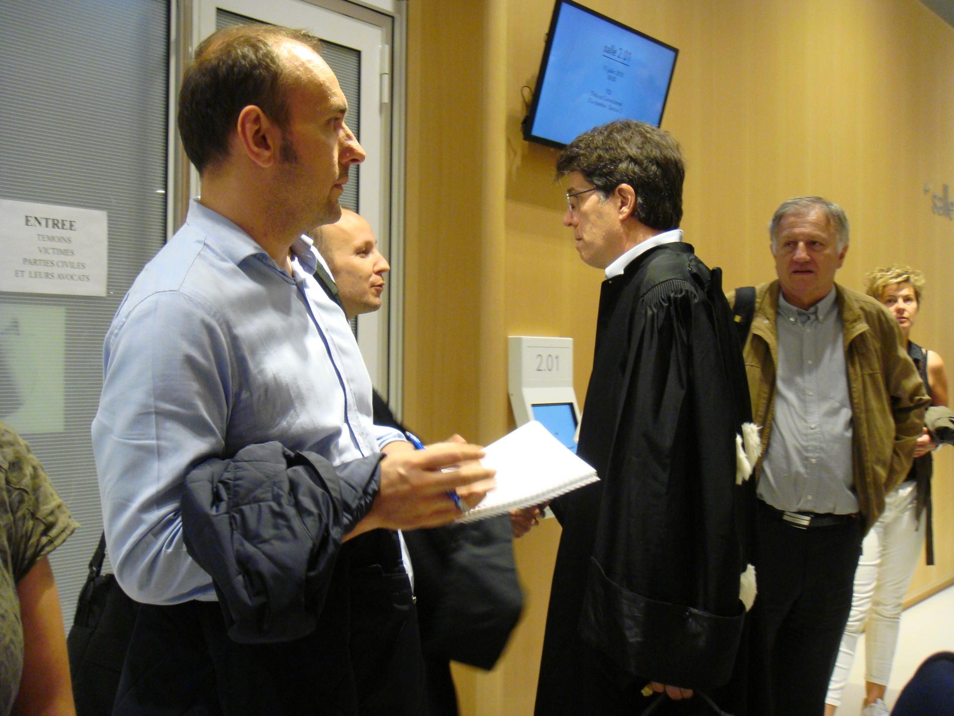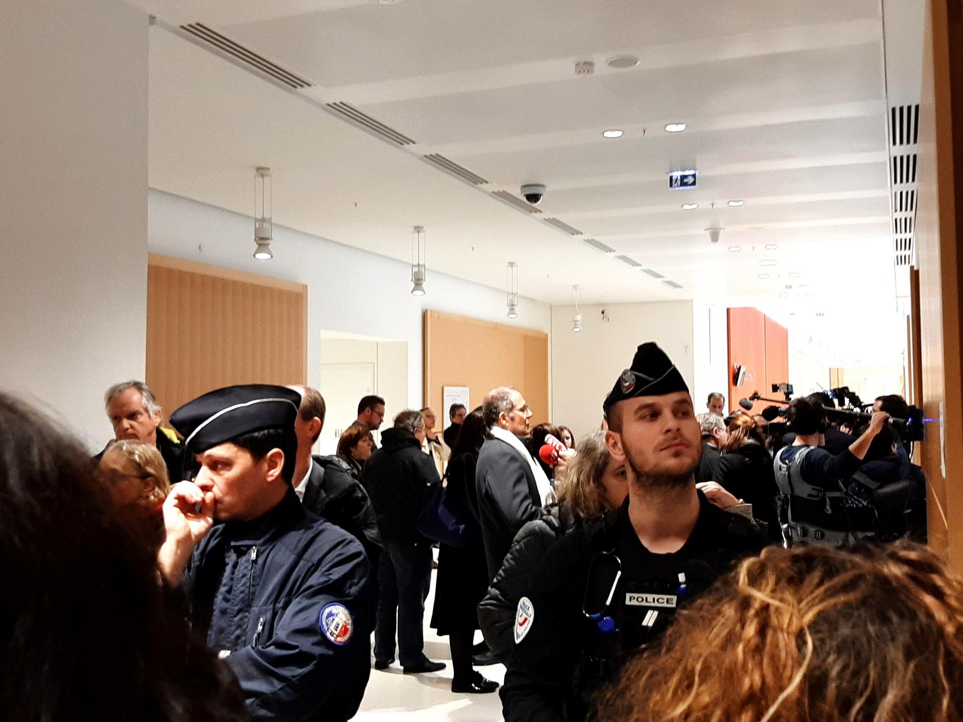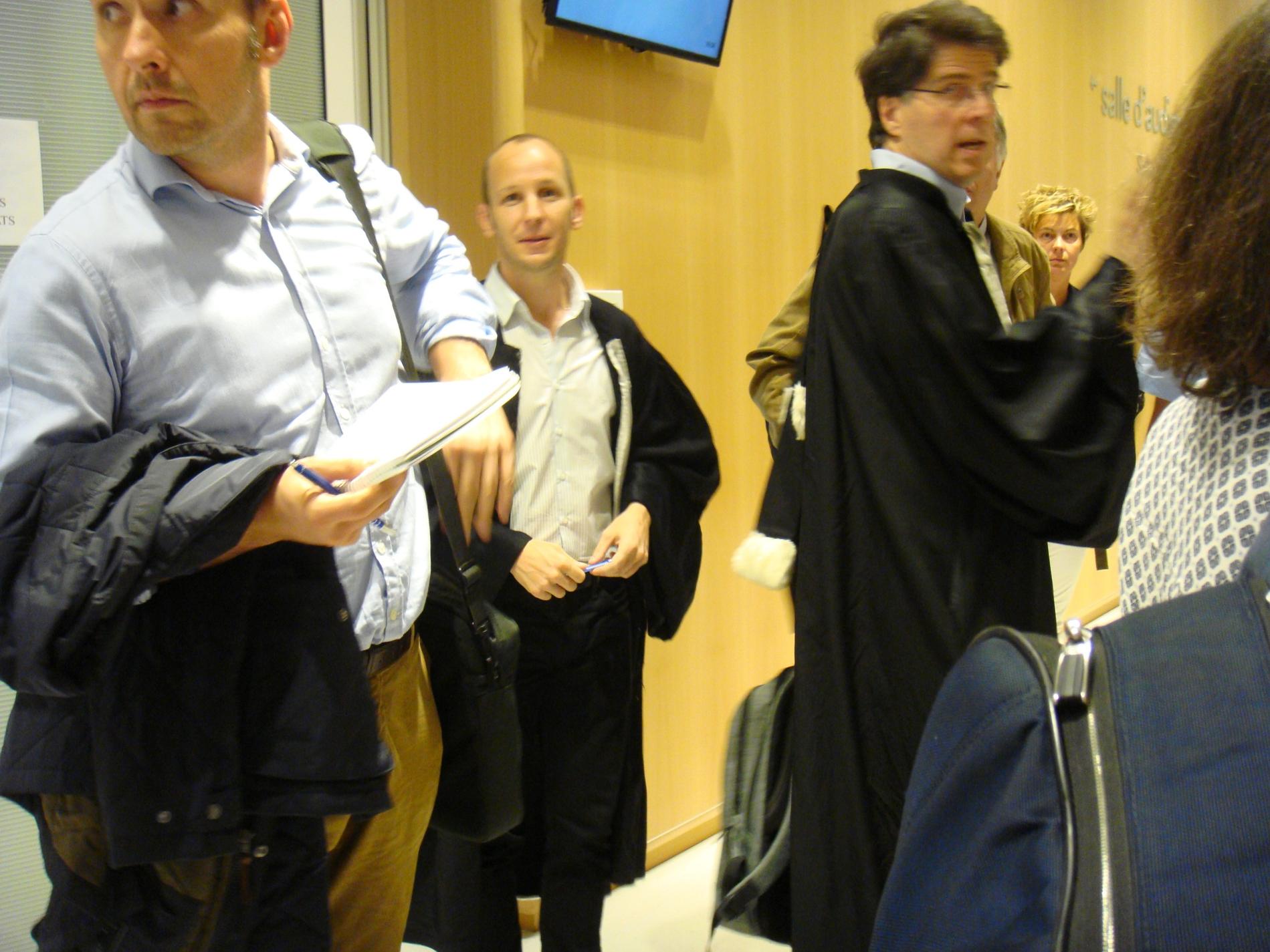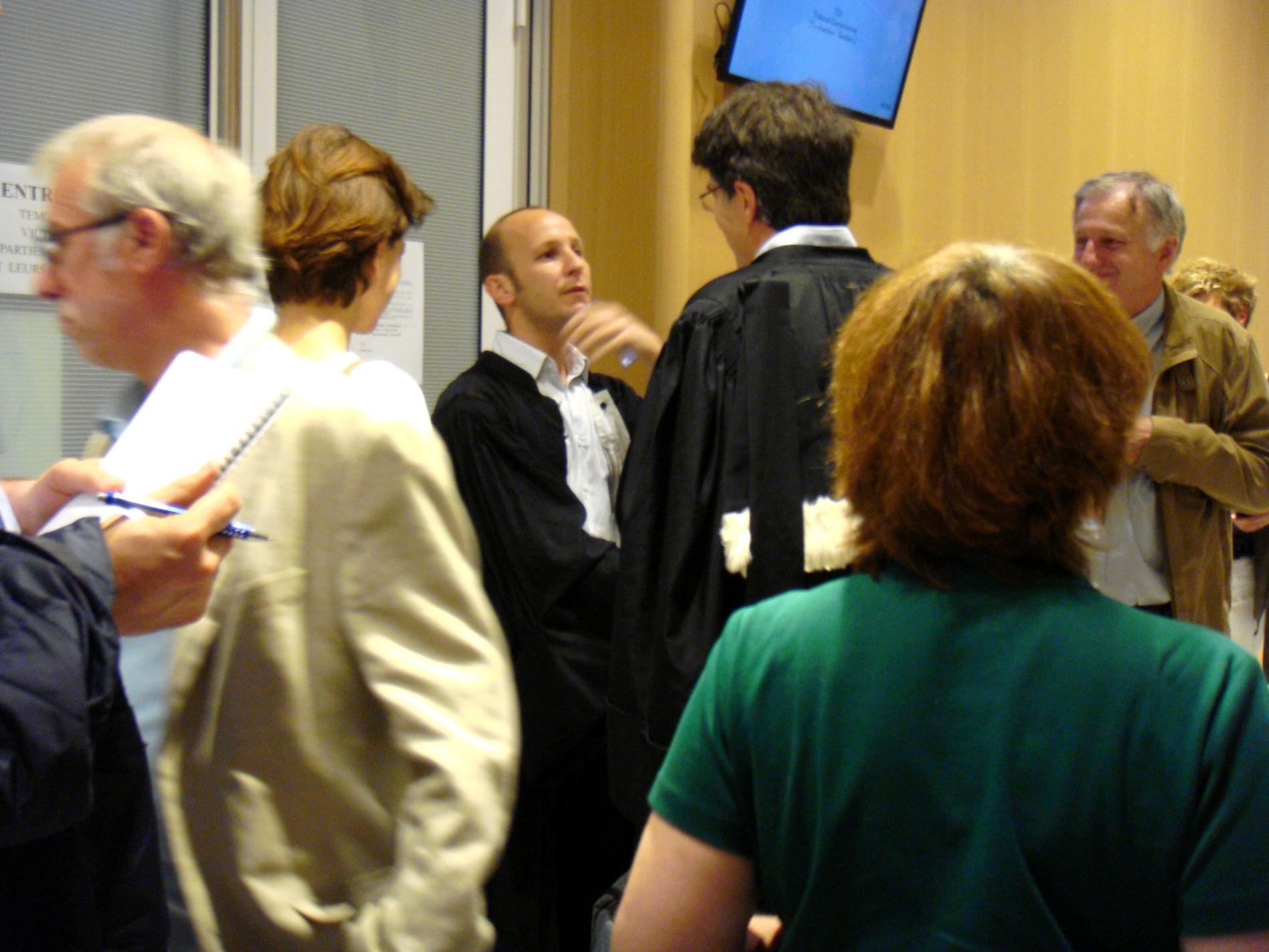 Ci-dessus : à la sortie de la salle d'audience 2.01, après le prononcement du verdict - vers 11H25.