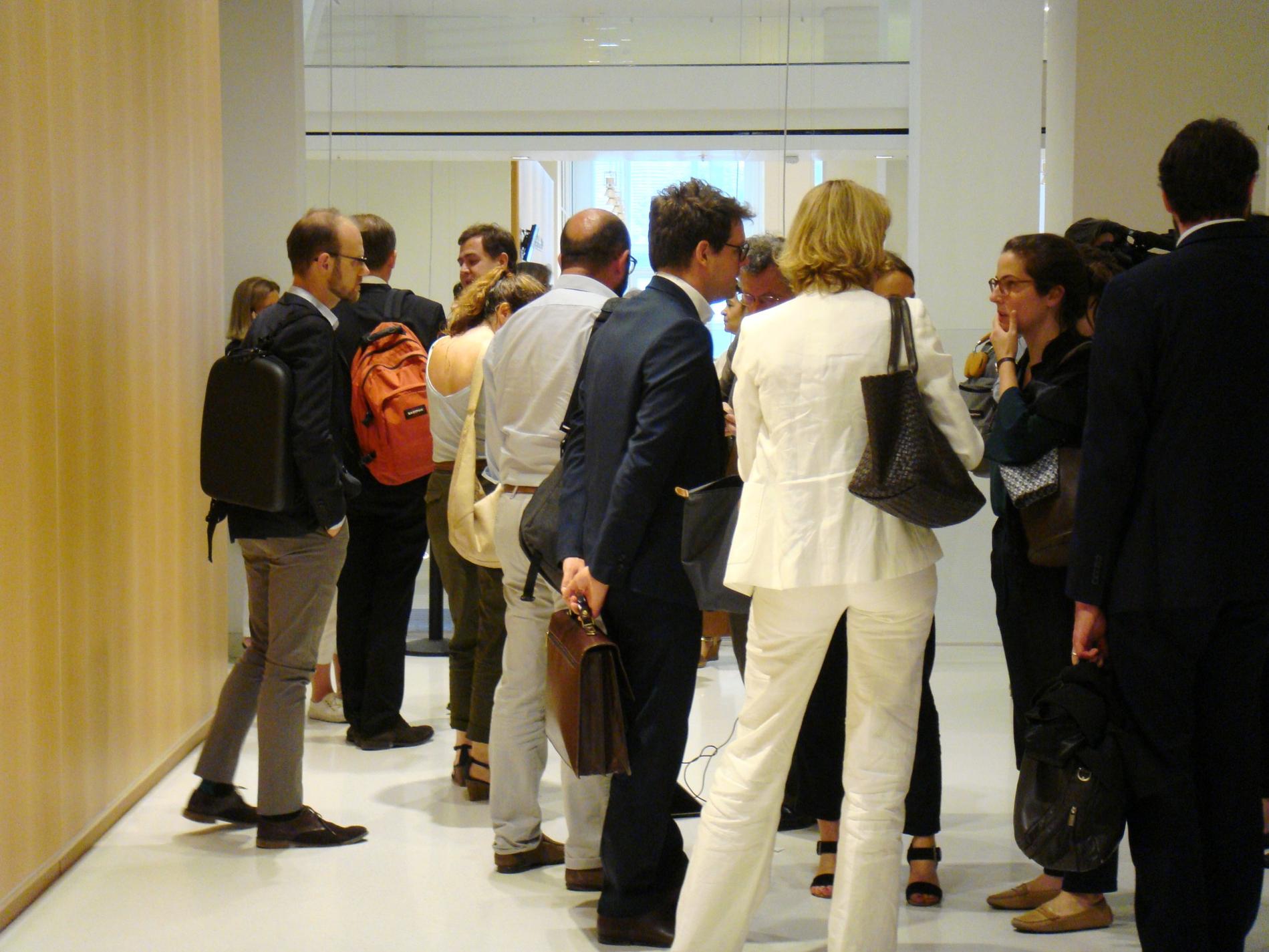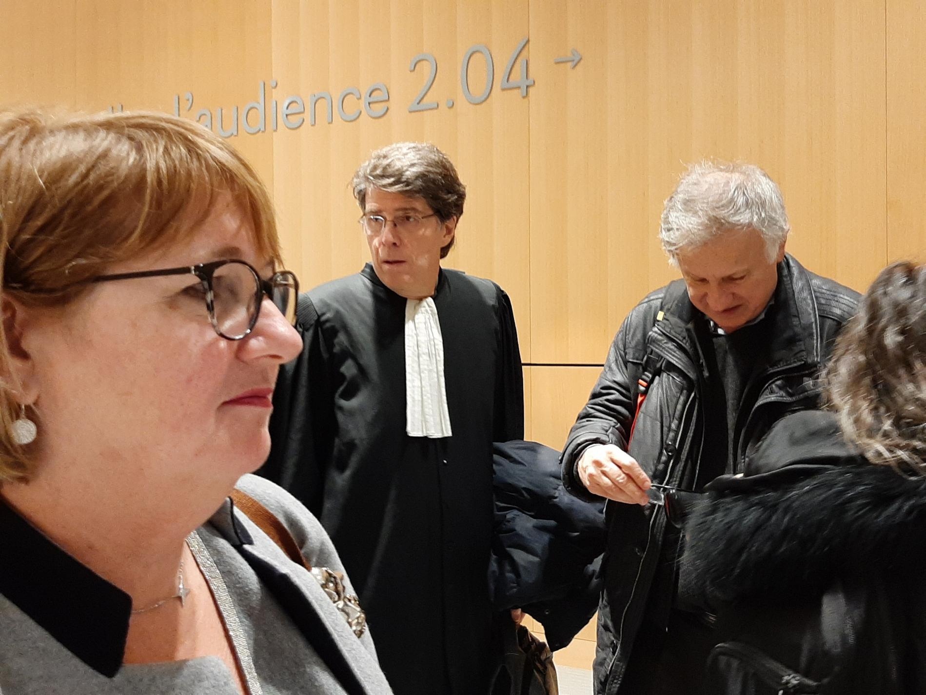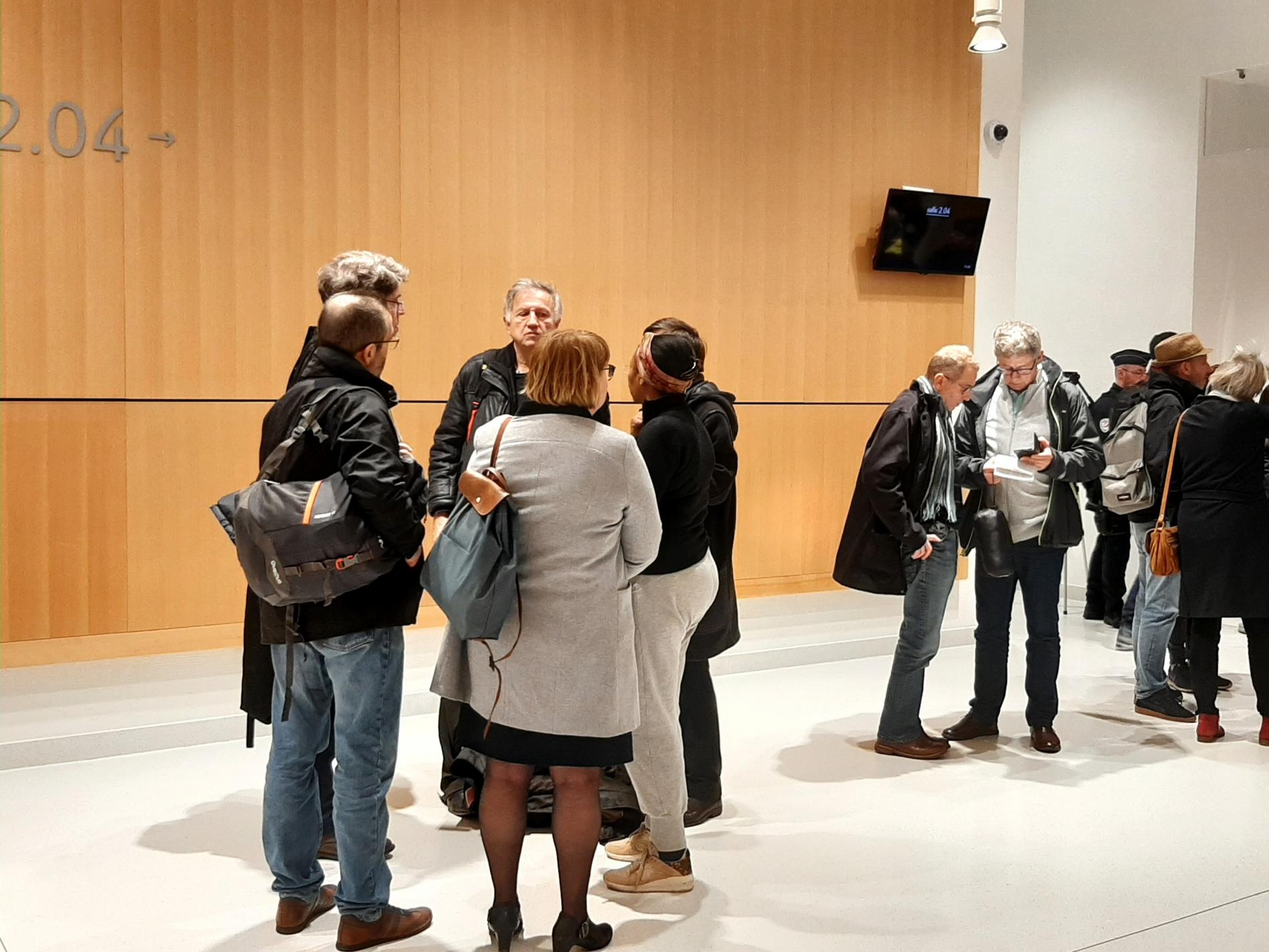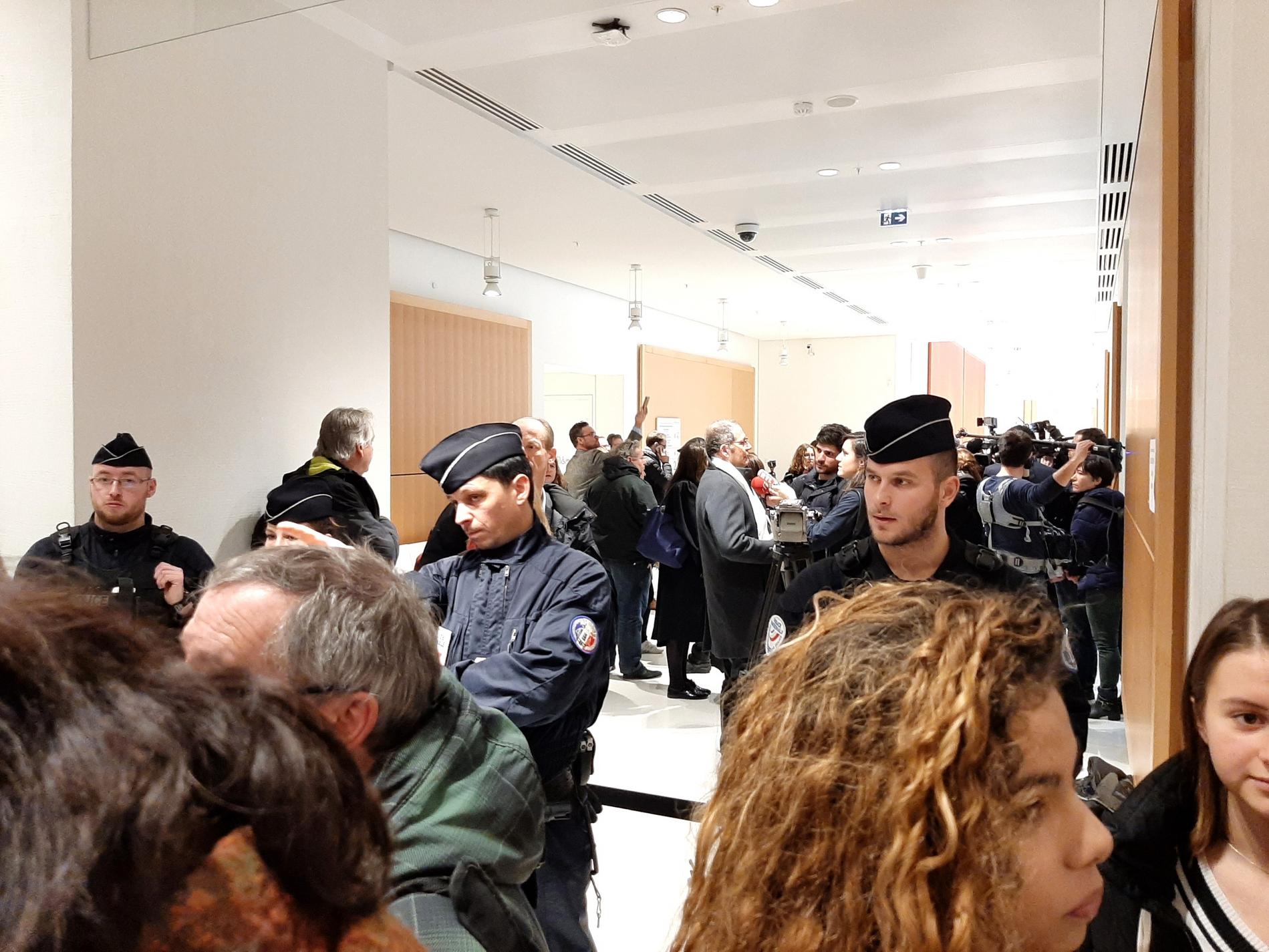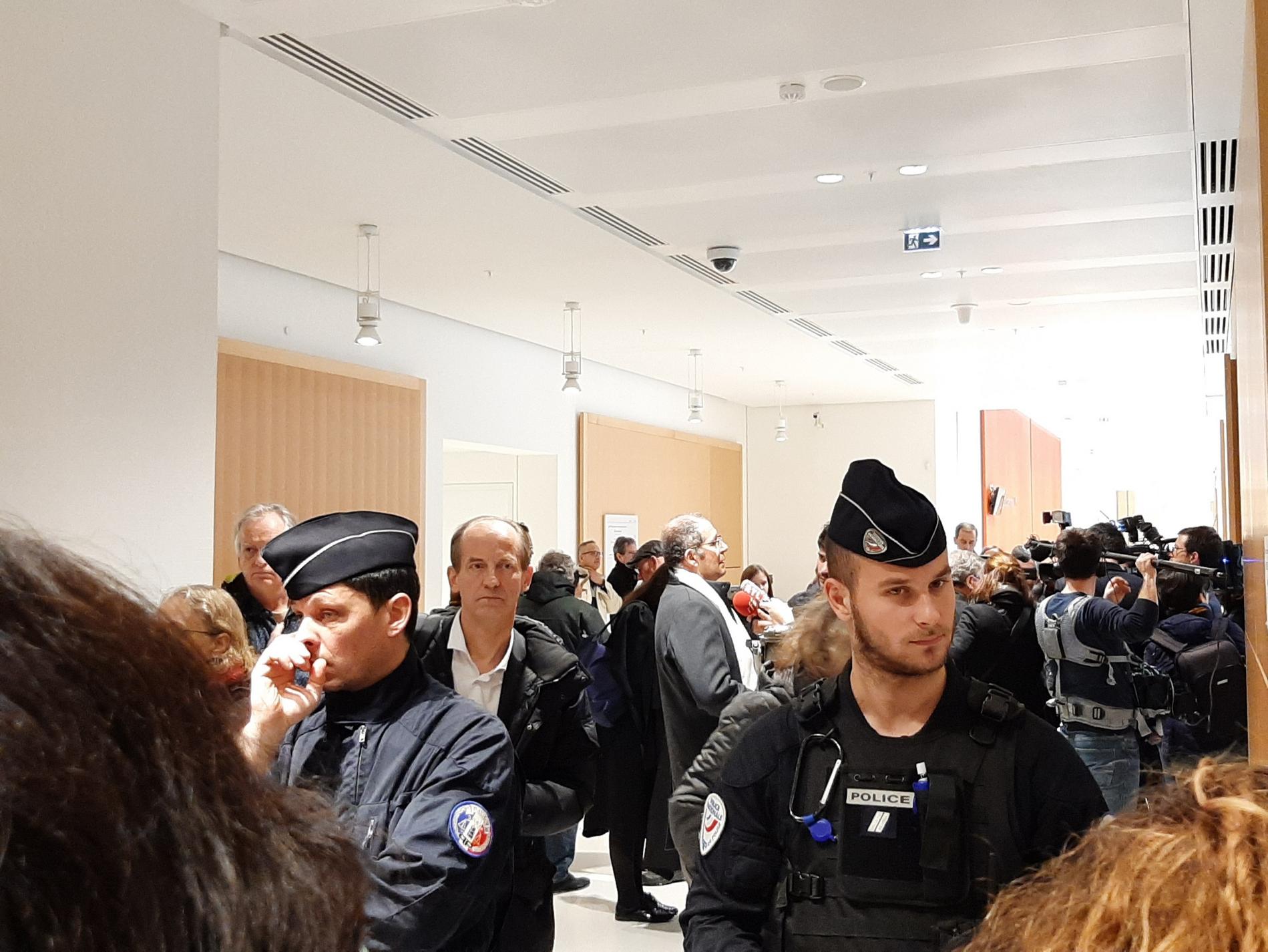 Ci-dessus : à la sortie de la salle d'audience 2.01, après le prononcement du verdict - vers 11H25.