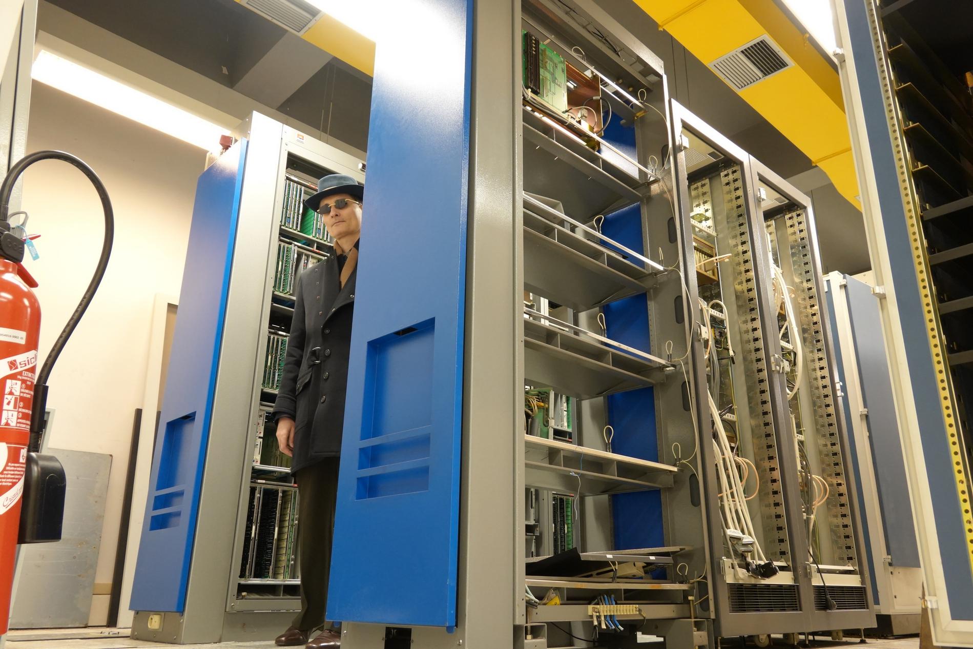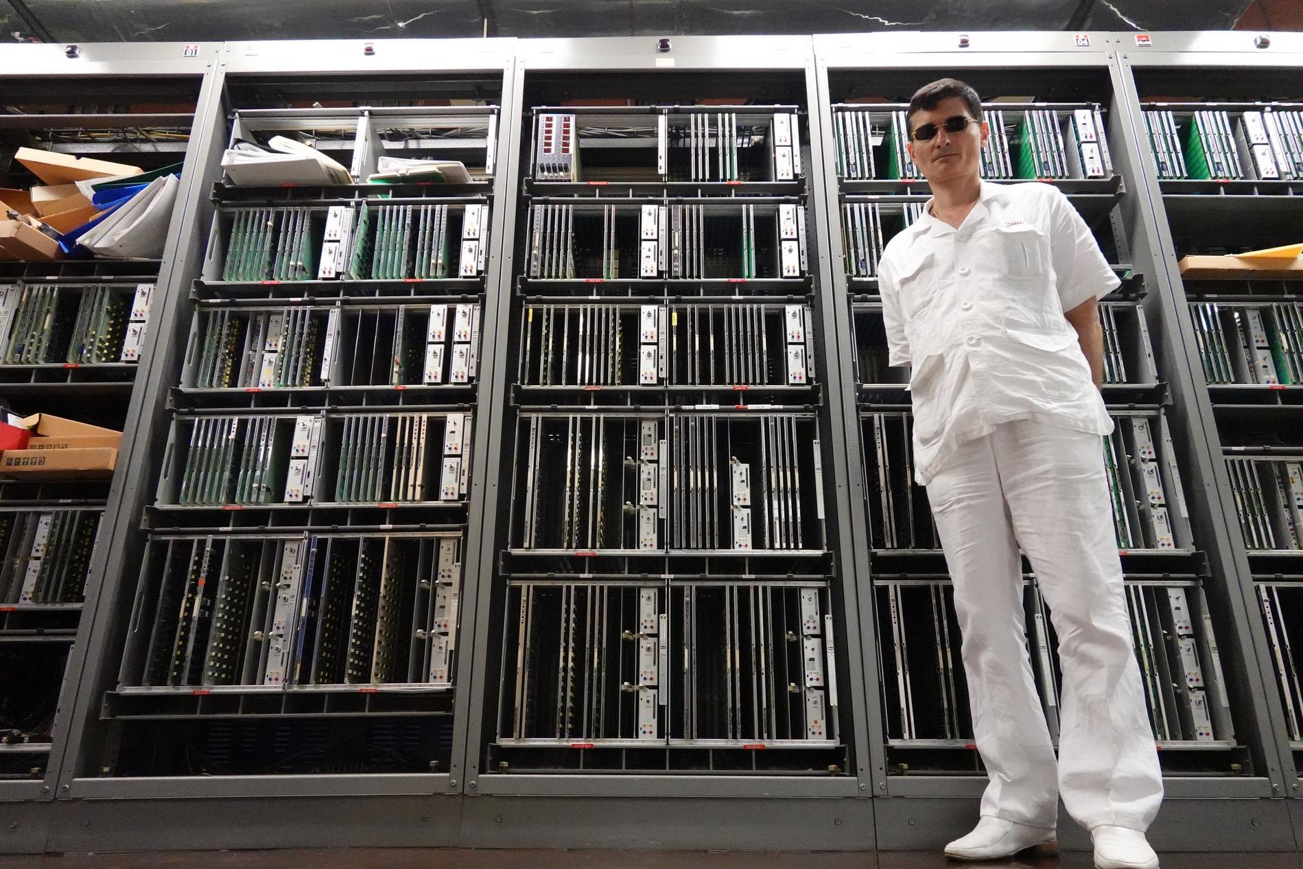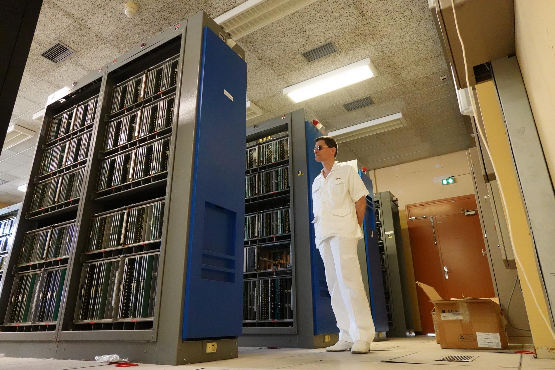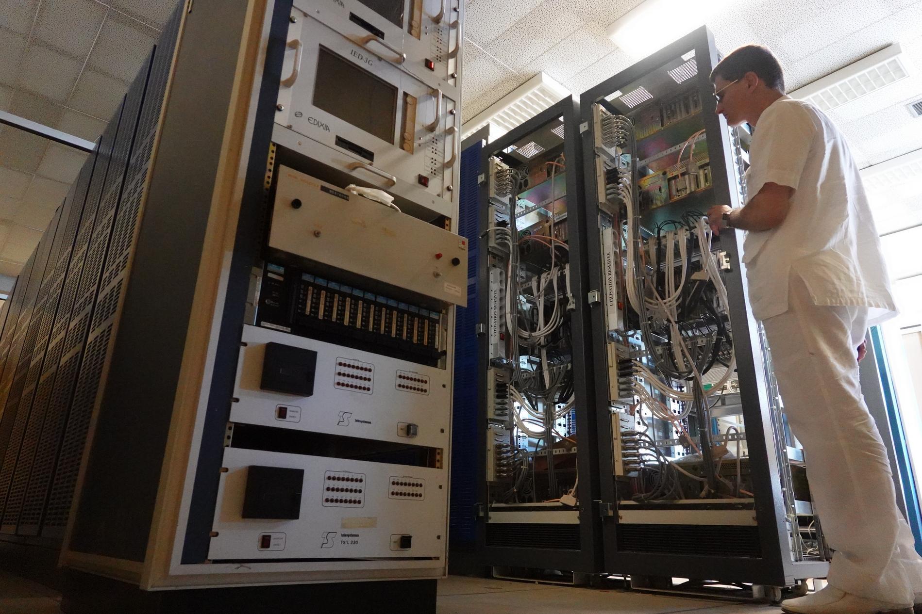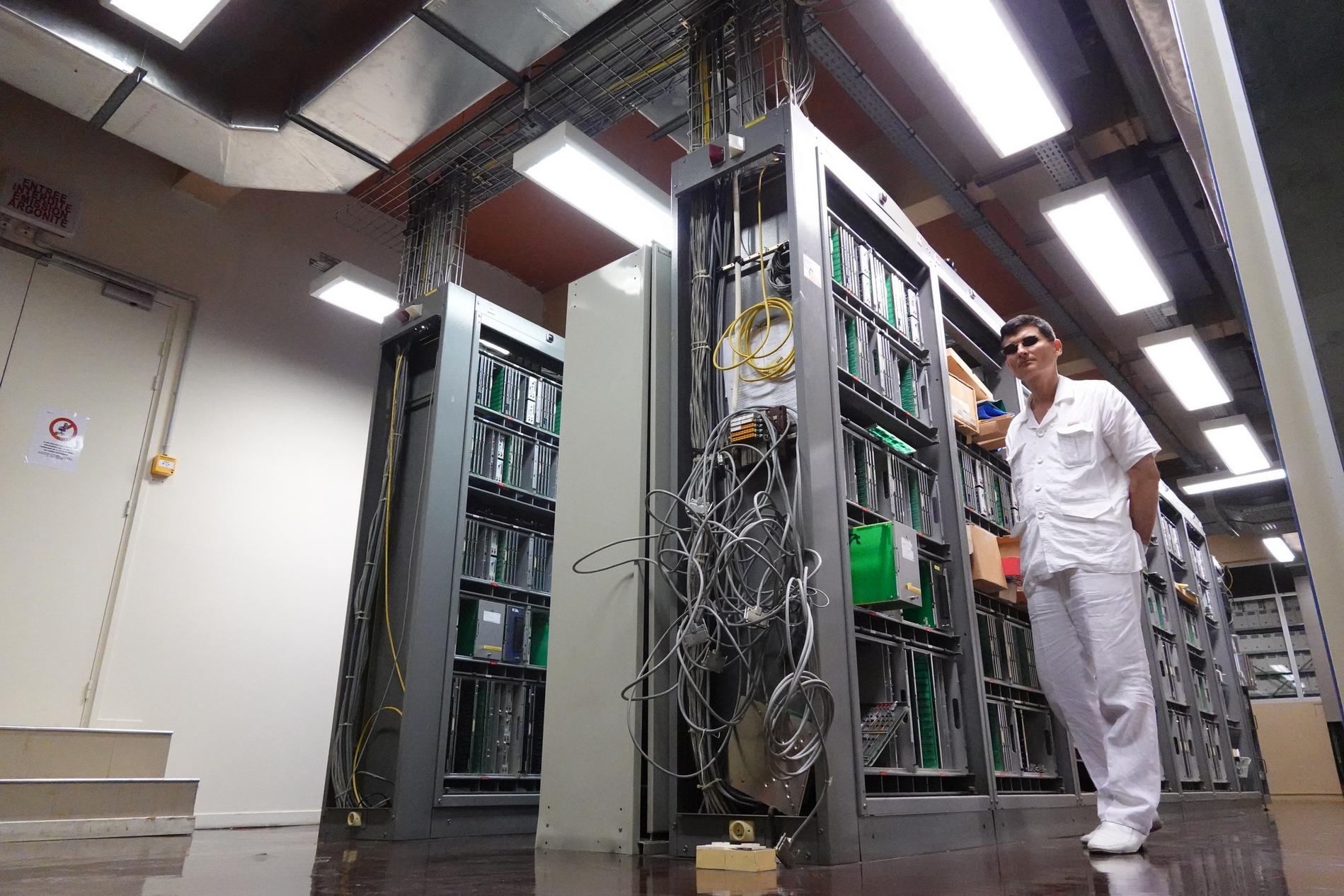 Ci-dessus : technicien de commutation changeant une carte dans un des E10.5 PAVI du centre Paris-Tuileries.