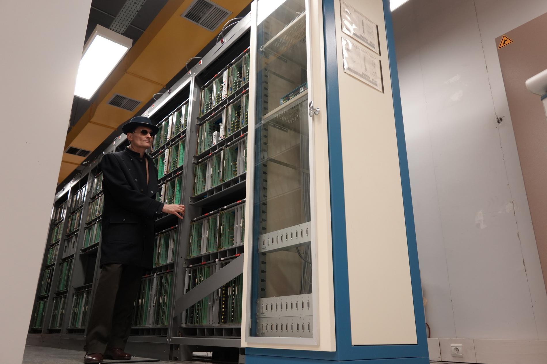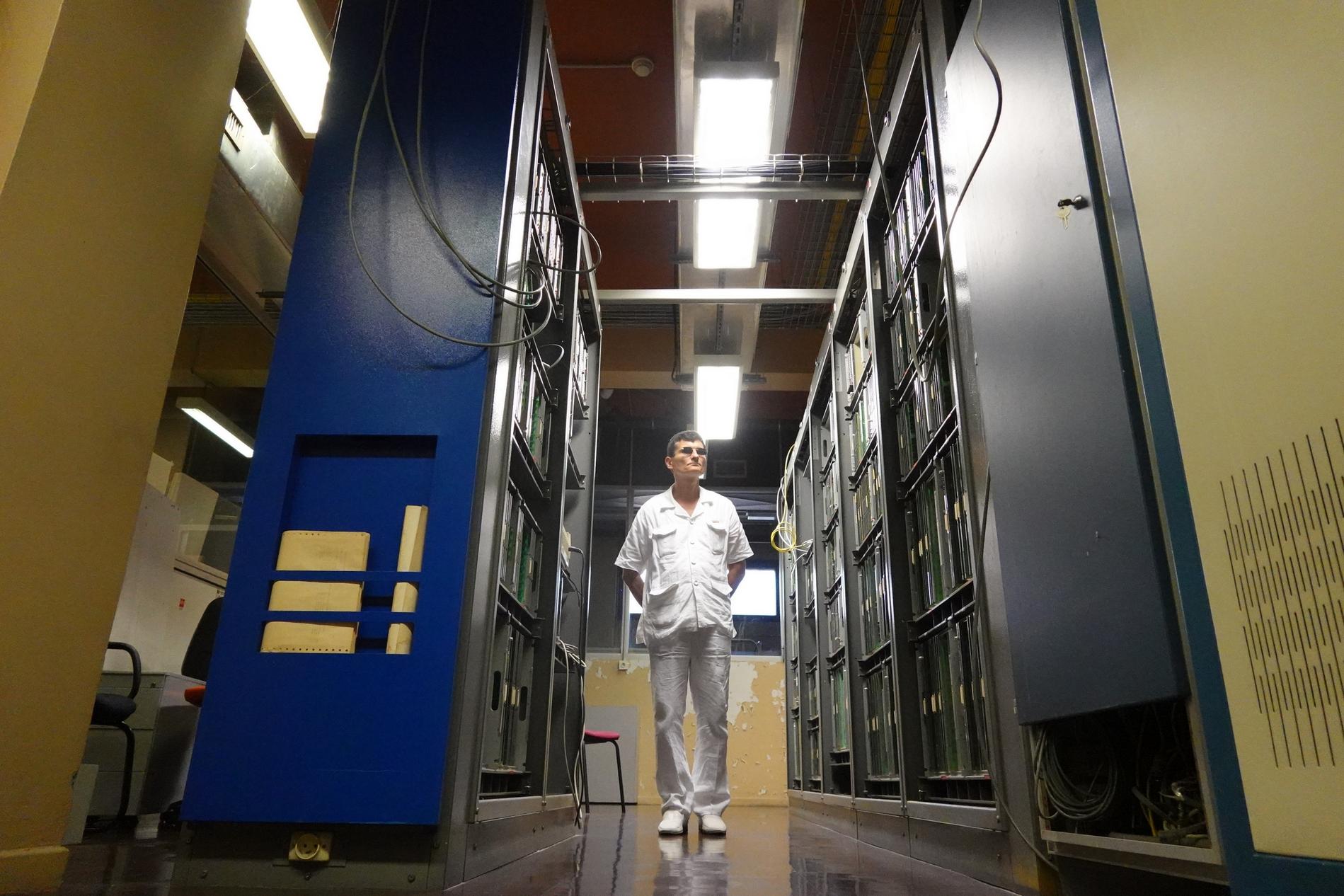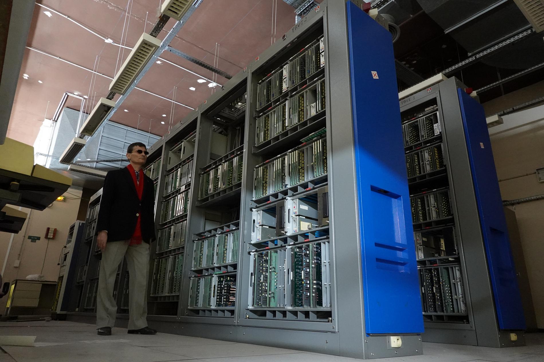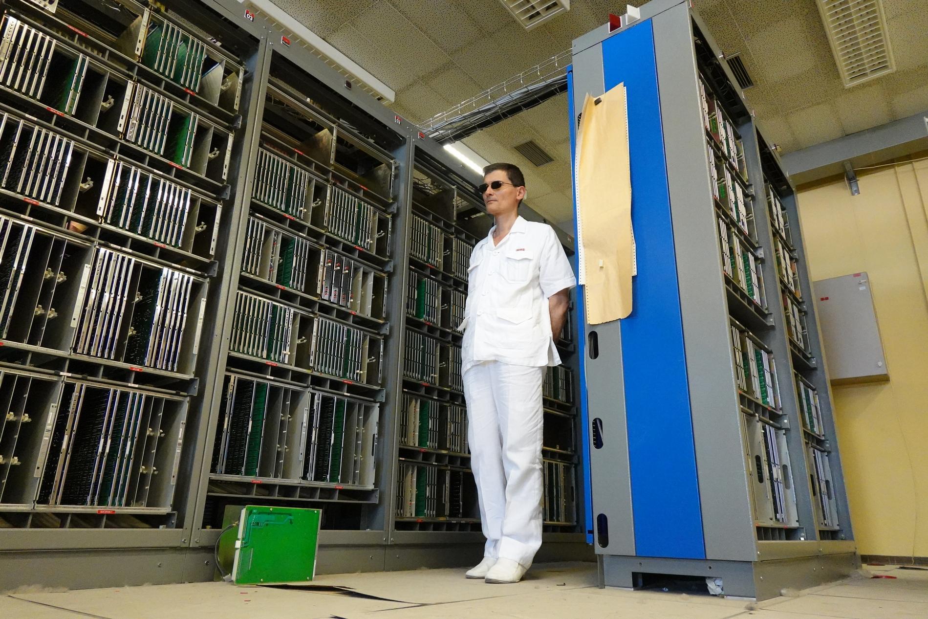 Ci-dessus : technicien de commutation changeant une carte dans un des E10.5 PAVI du centre Paris-Tuileries.