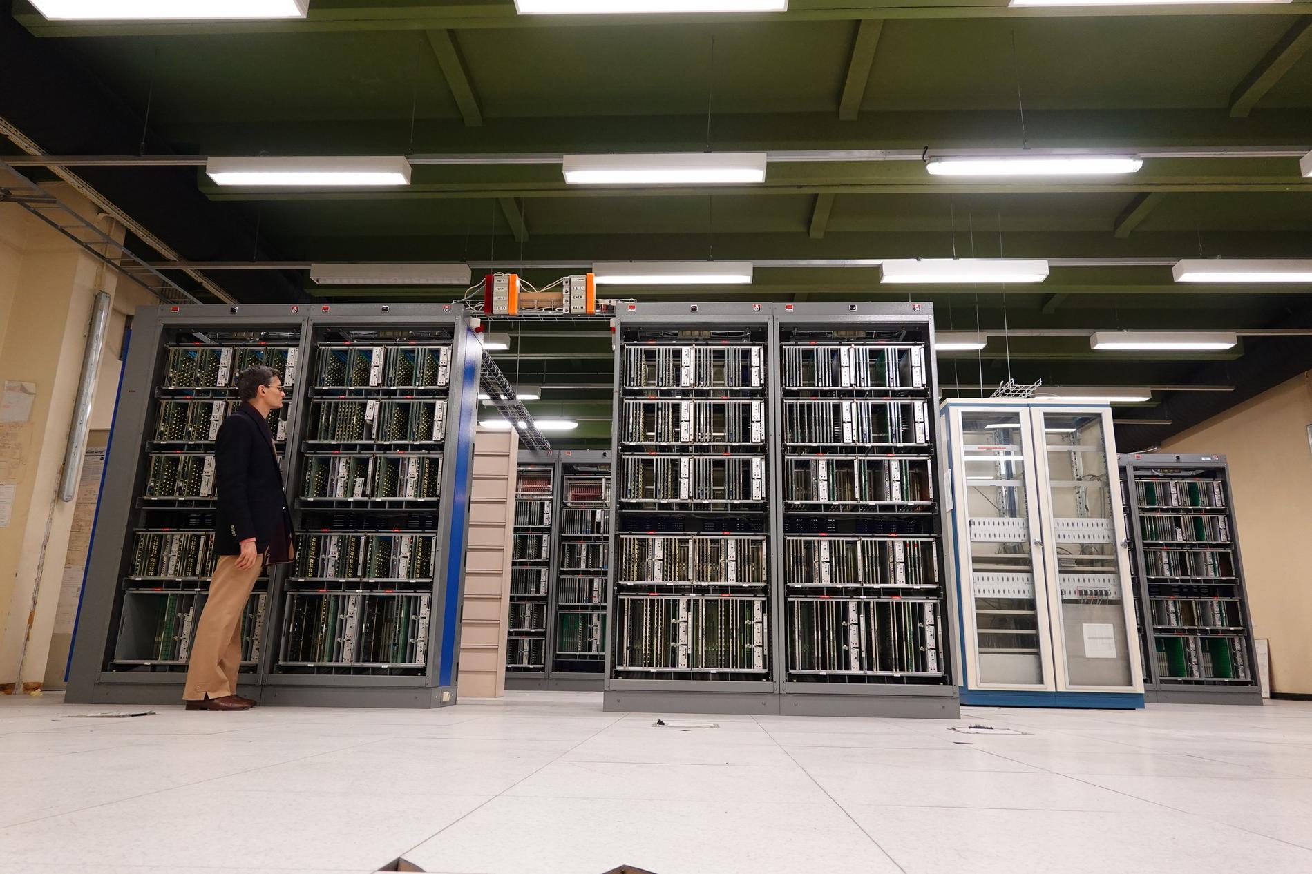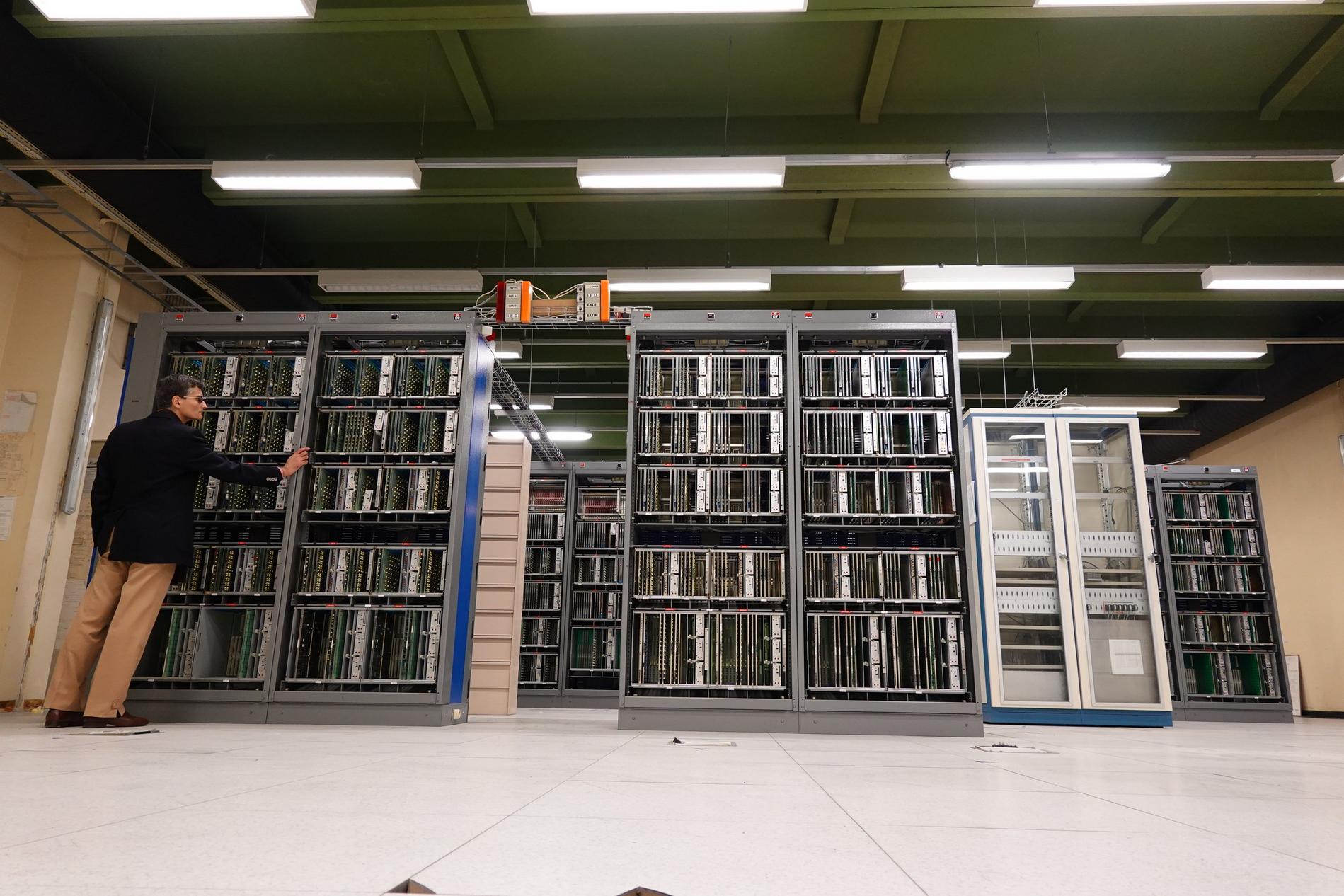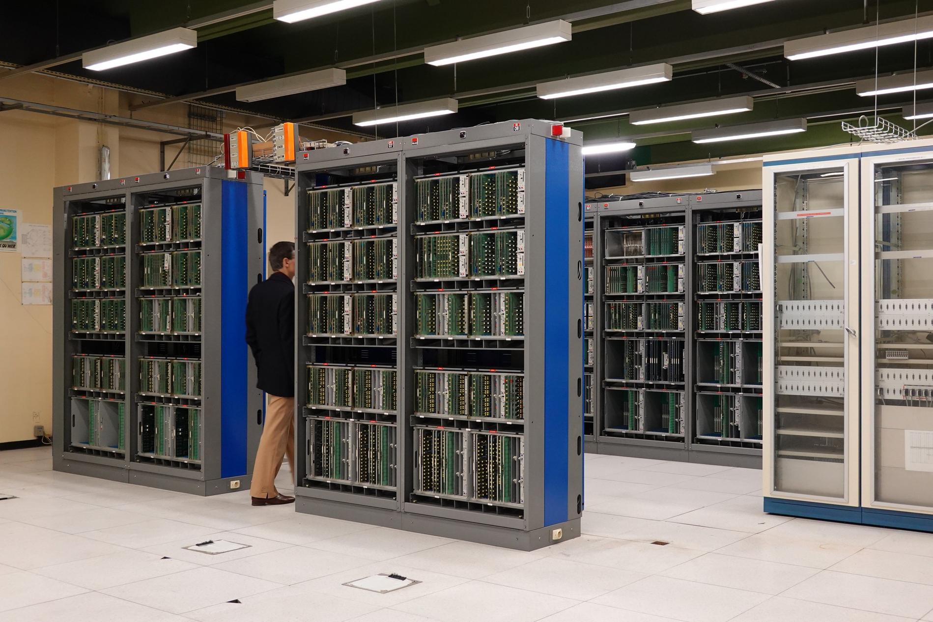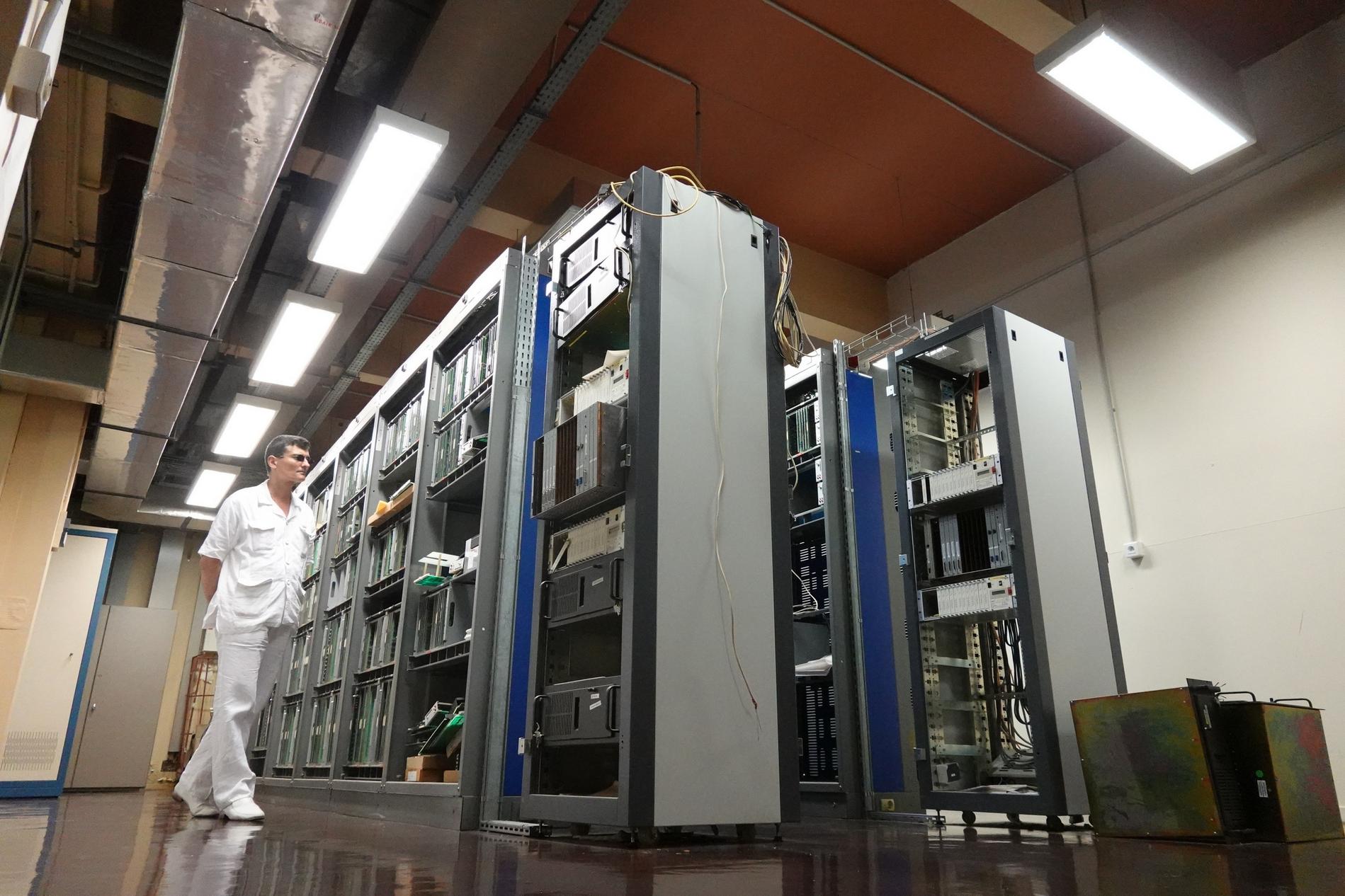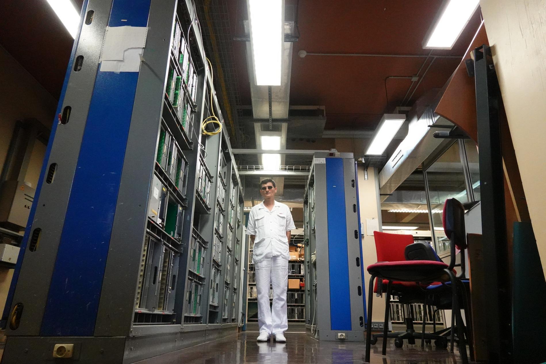 Ci-dessus : technicien de commutation changeant une carte dans un des E10.5 PAVI du centre Paris-Tuileries.