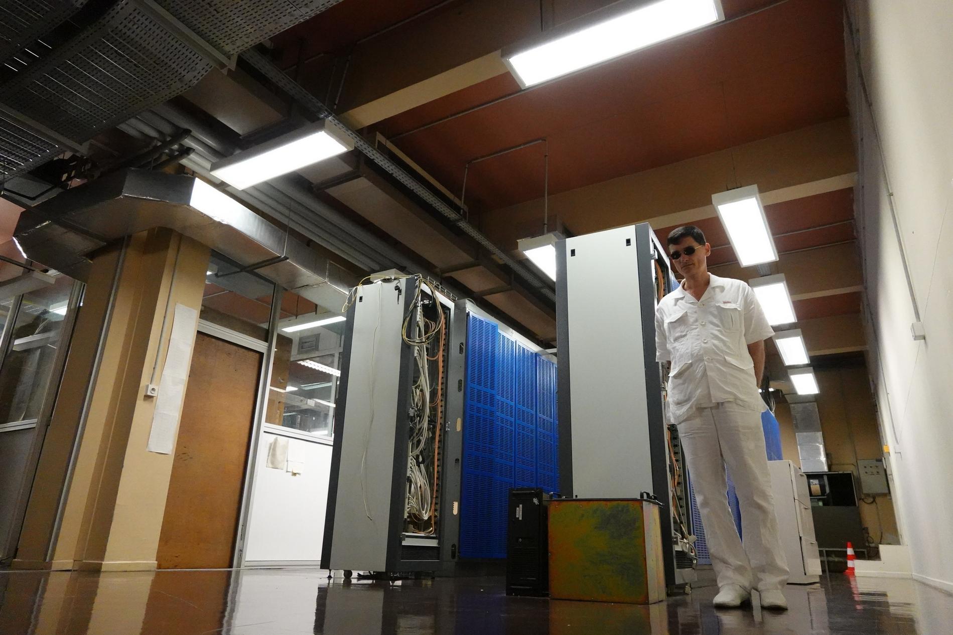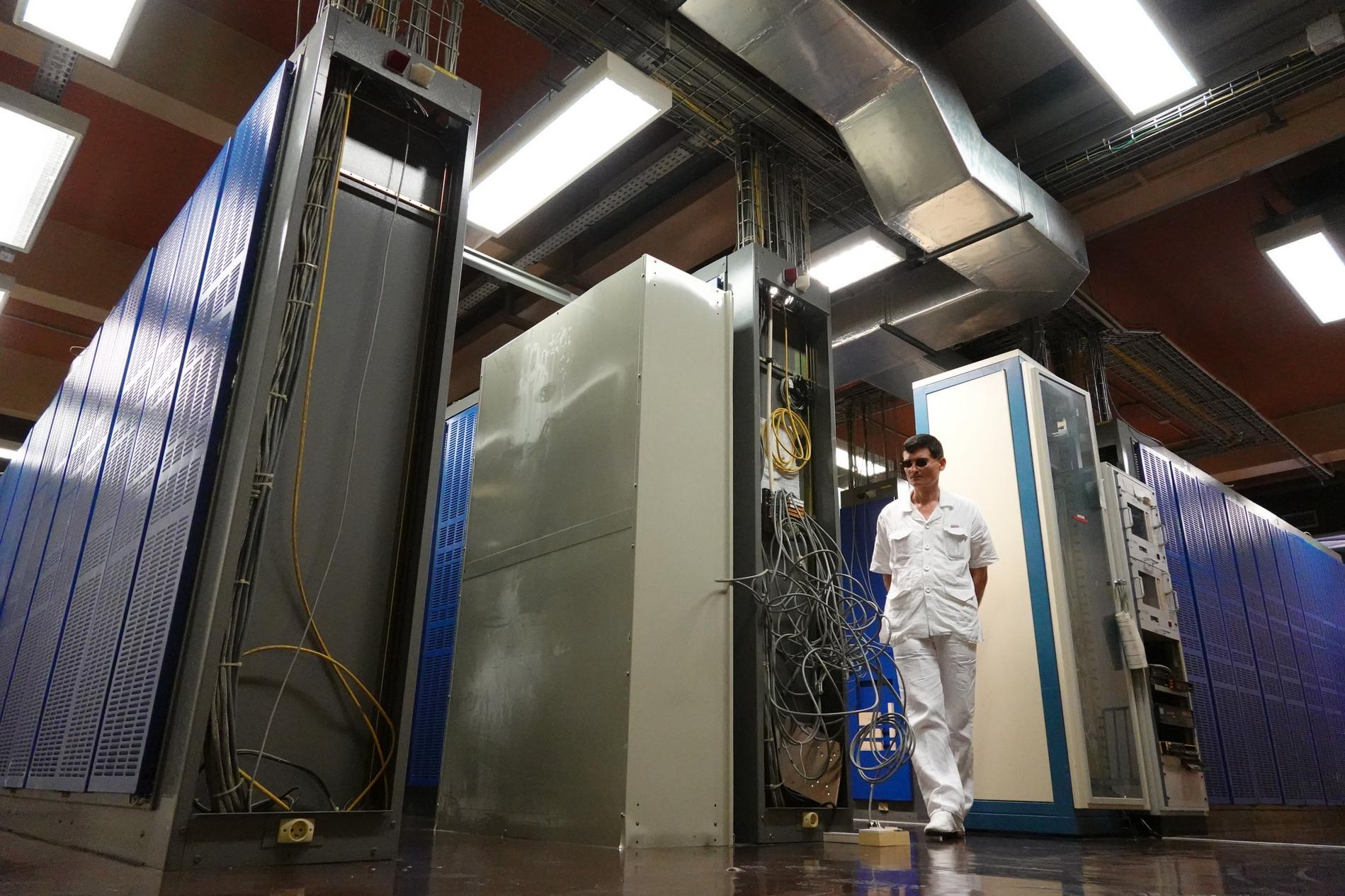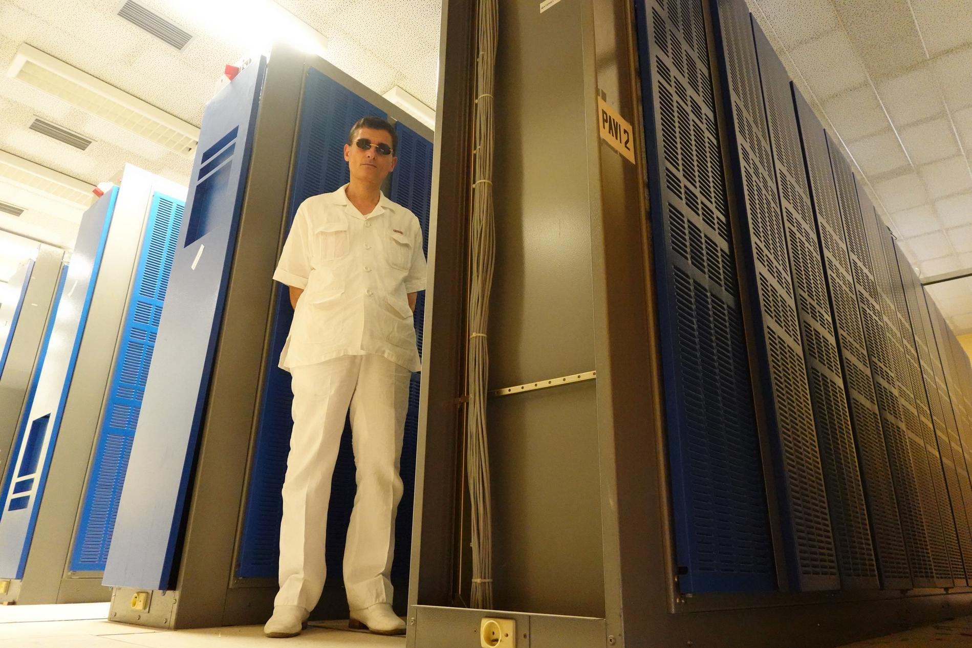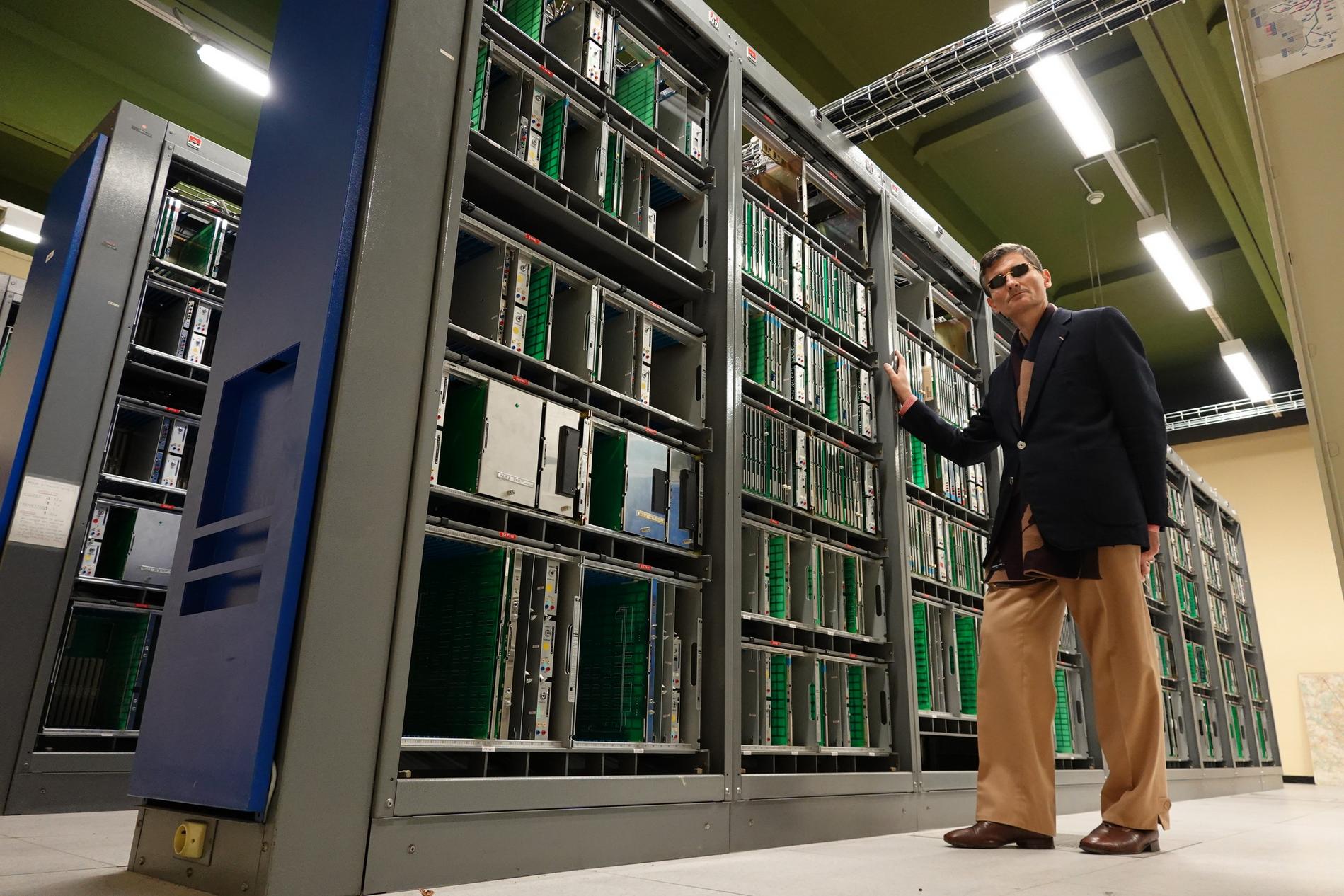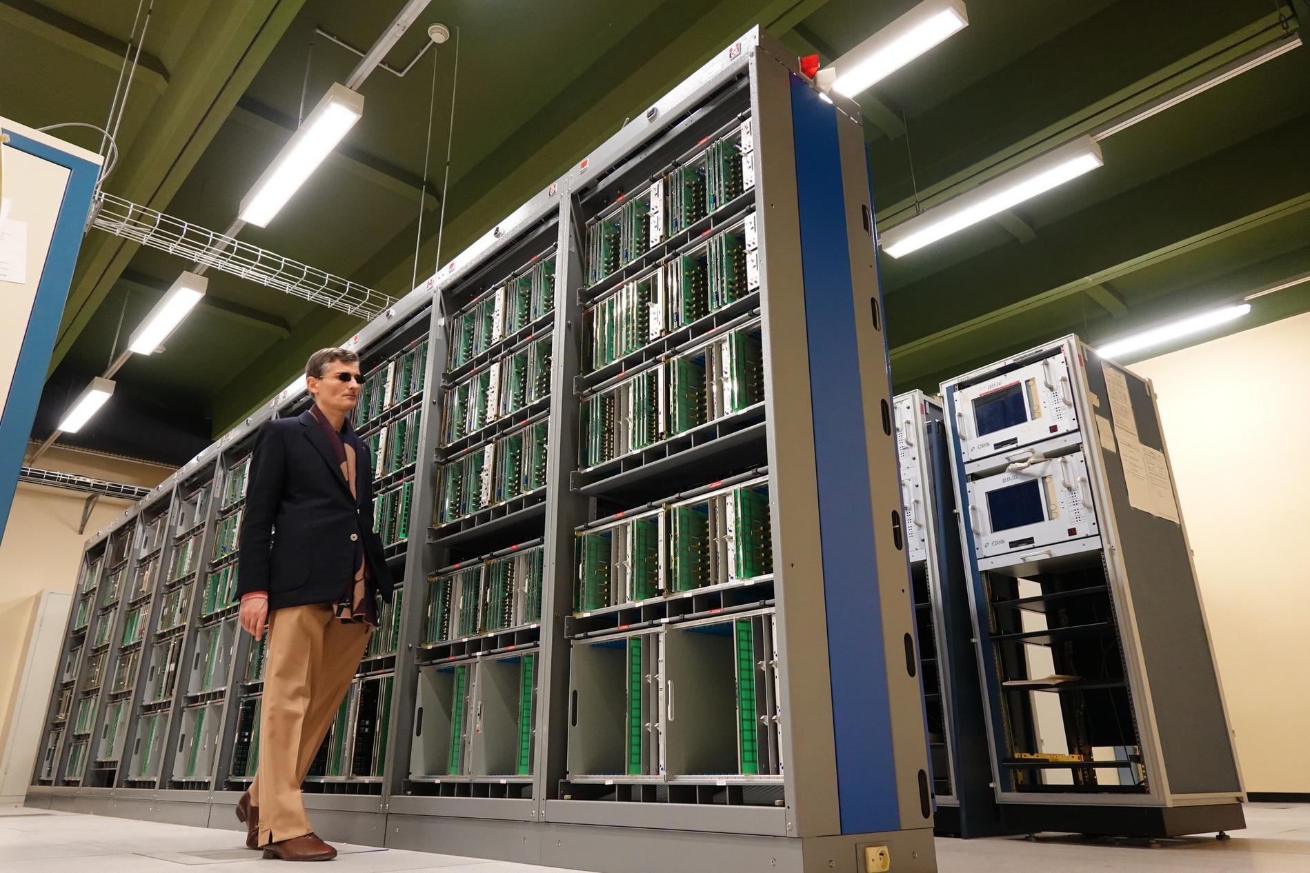 Ci-dessus : technicien de commutation changeant une carte dans un des E10.5 PAVI du centre Paris-Tuileries.