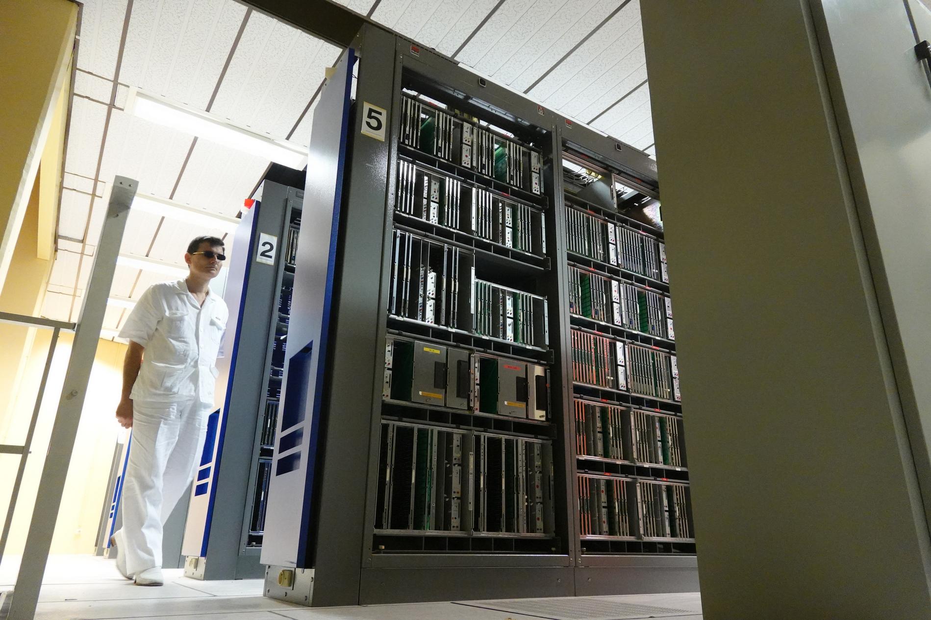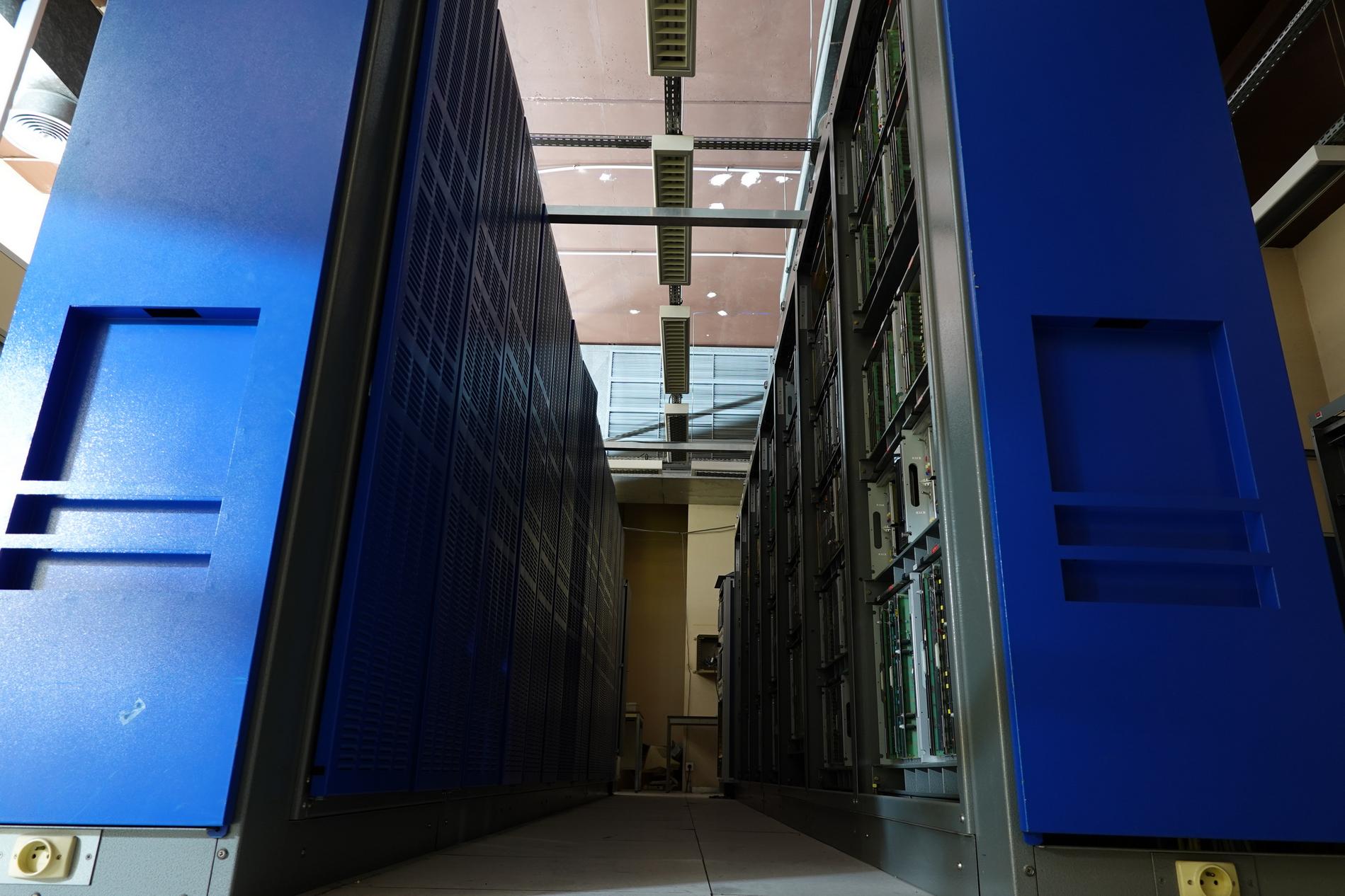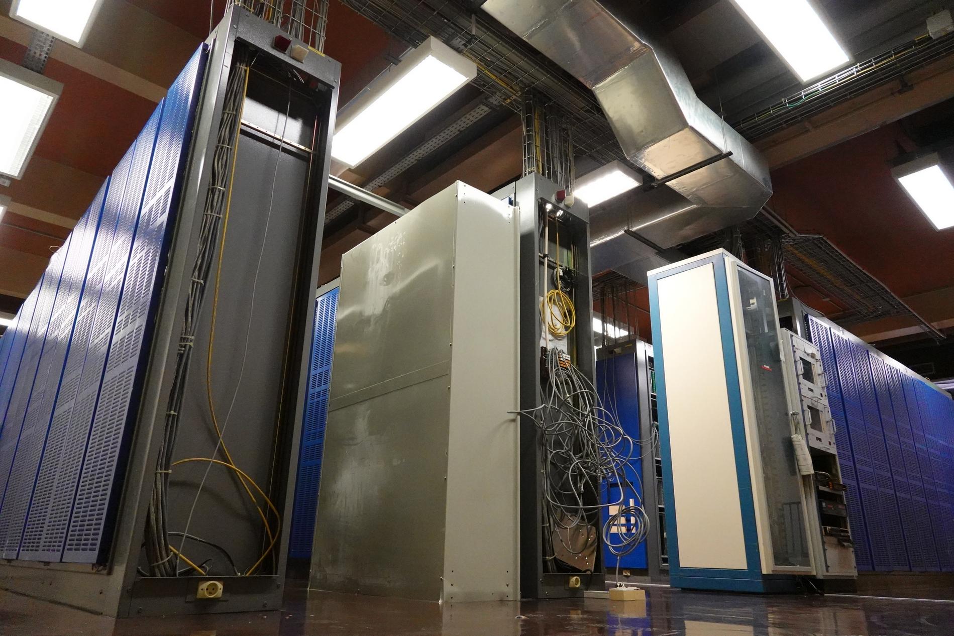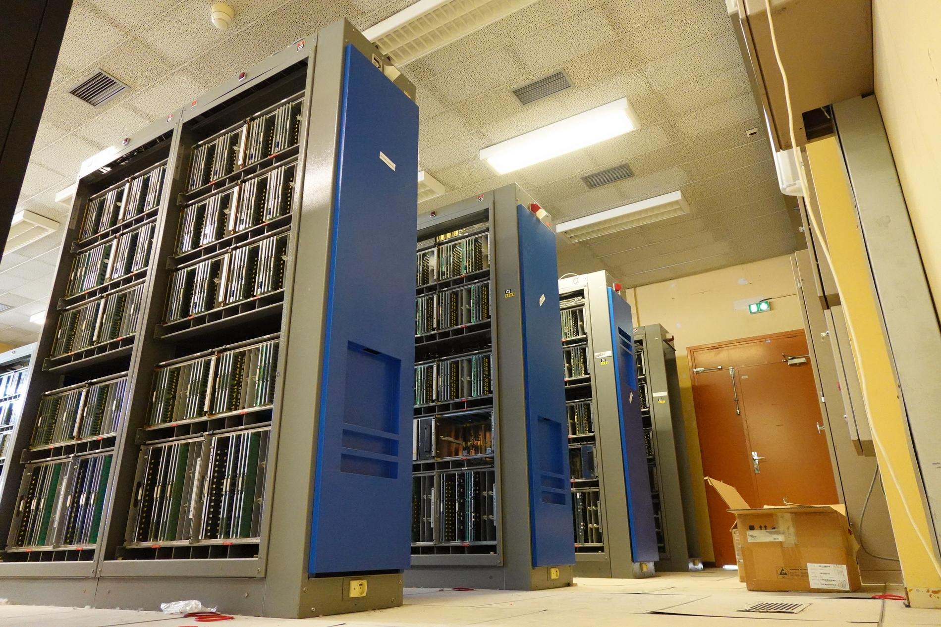 Ci-dessus : auprès des Commutateurs E10.5 de Boulogne-Billancourt. Nota : sur ce site, les Disques Durs sont situés dans la baie la plus à droite, vers le bas (il s'agit des deux blocs avec façade en acier nu)